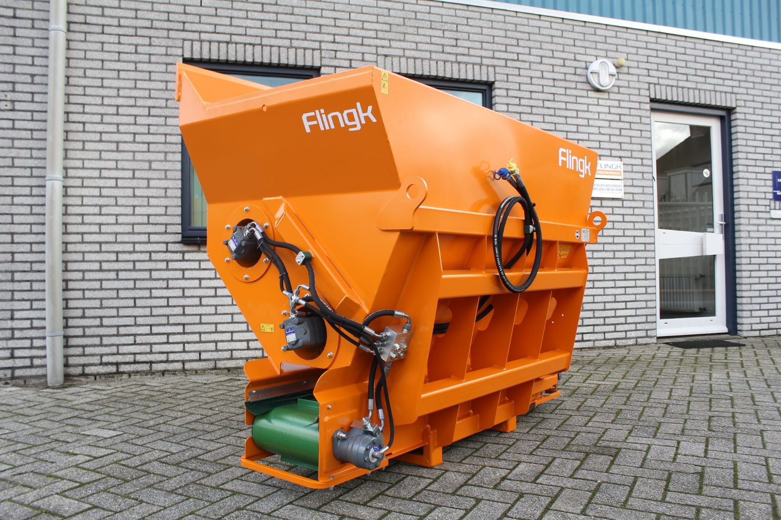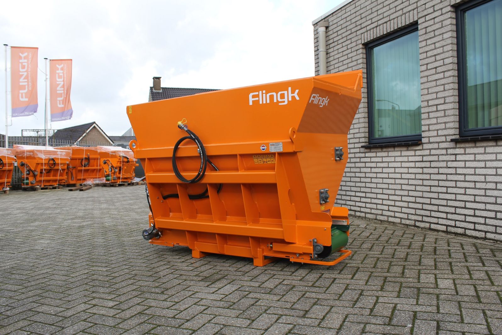 De Flingk KSS is leverbaar met een inhoud vanaf 750 liter. In het grootste model past maar liefst 4500 liter. De breedtes lopen uiteen van 130 centimeter tot 300 centimeter. Daarnaast kan de KSS-instrooier op verschillende machines worden gemonteerd. Van een trekker tot een voorlader en van een verreiker tot een shovel: het is allemaal mogelijk. In bijna alle gevallen volstaat één dubbelwerkende hydraulische functie om met de machine te kunnen werken.