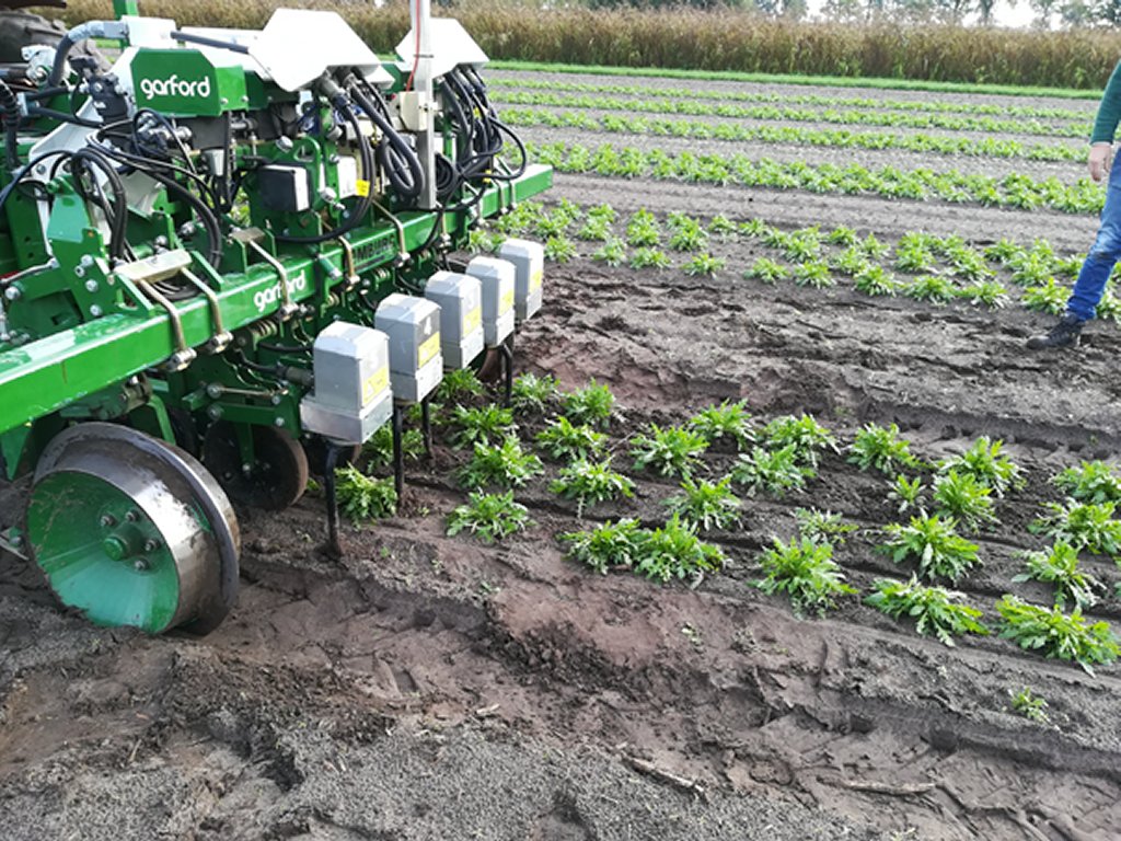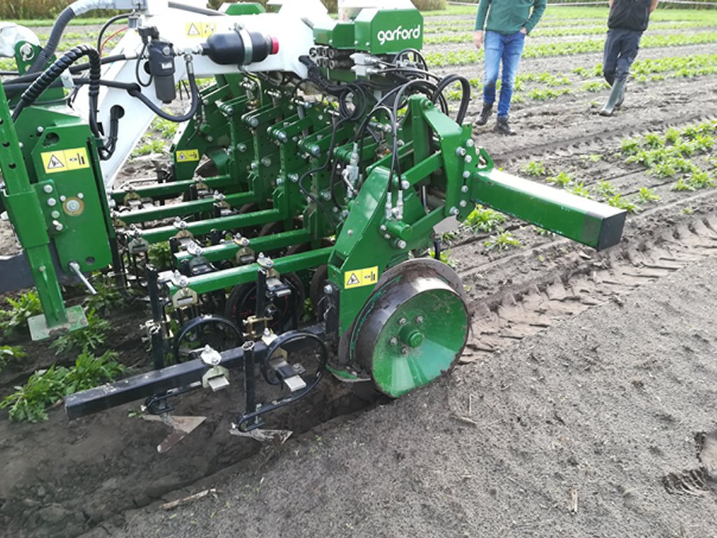 De elektronica van dit apparaat reageert snel en de roterende schoffels worden door vijf elektromoteren aangedreven. De Garford-schoffelmachine herkent individuele planten en ziet waar de rijen zijn. Met een side shift kan de schoffel corrigeren onder het werken en daardoor dus nog nauwkeuriger werken. Voor nu is de minimale afstand tussen de planten 15 cm. Er worden nieuwe machines ontwikkeld om te werken met kleinere plantafstanden.