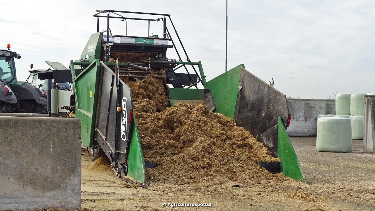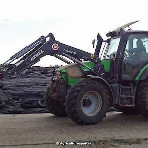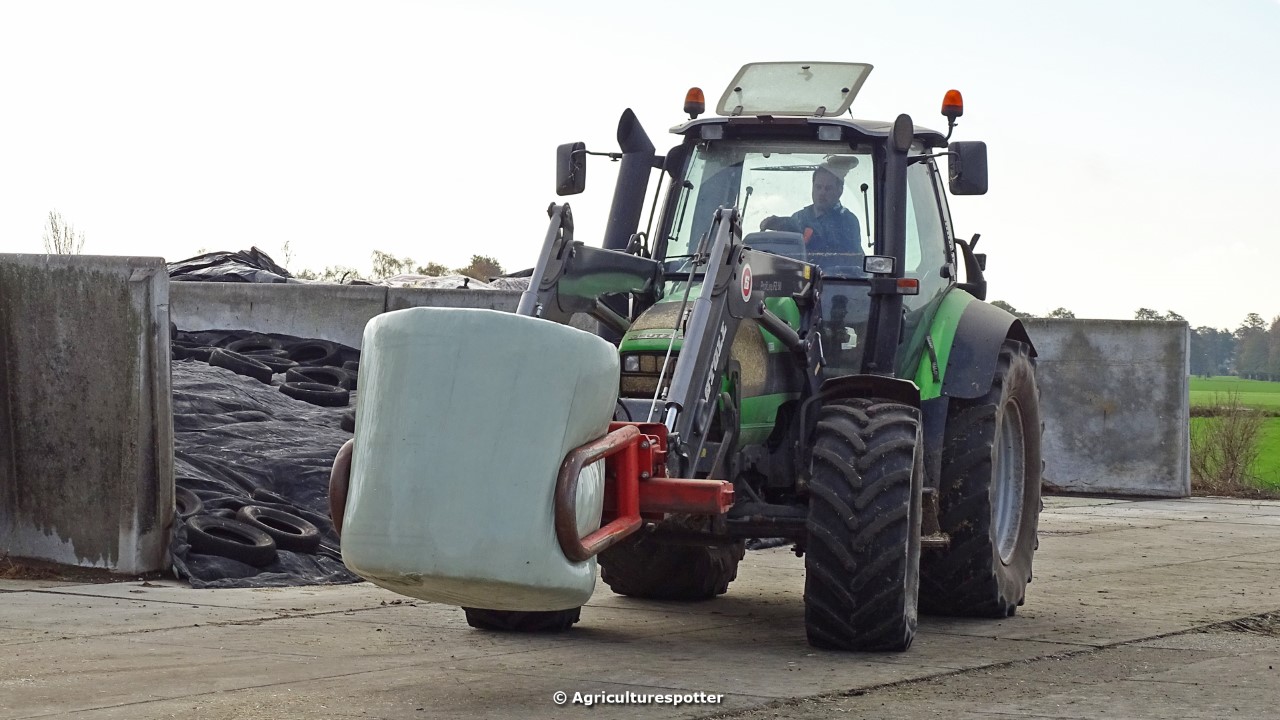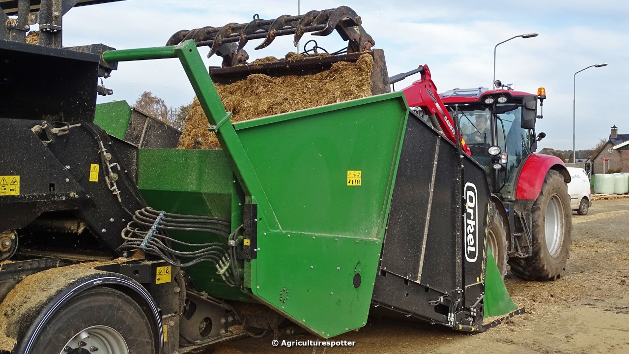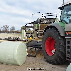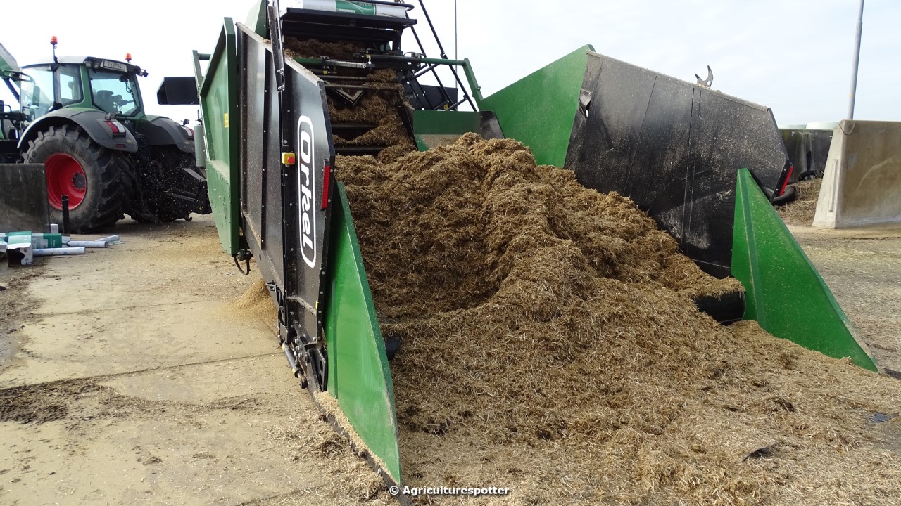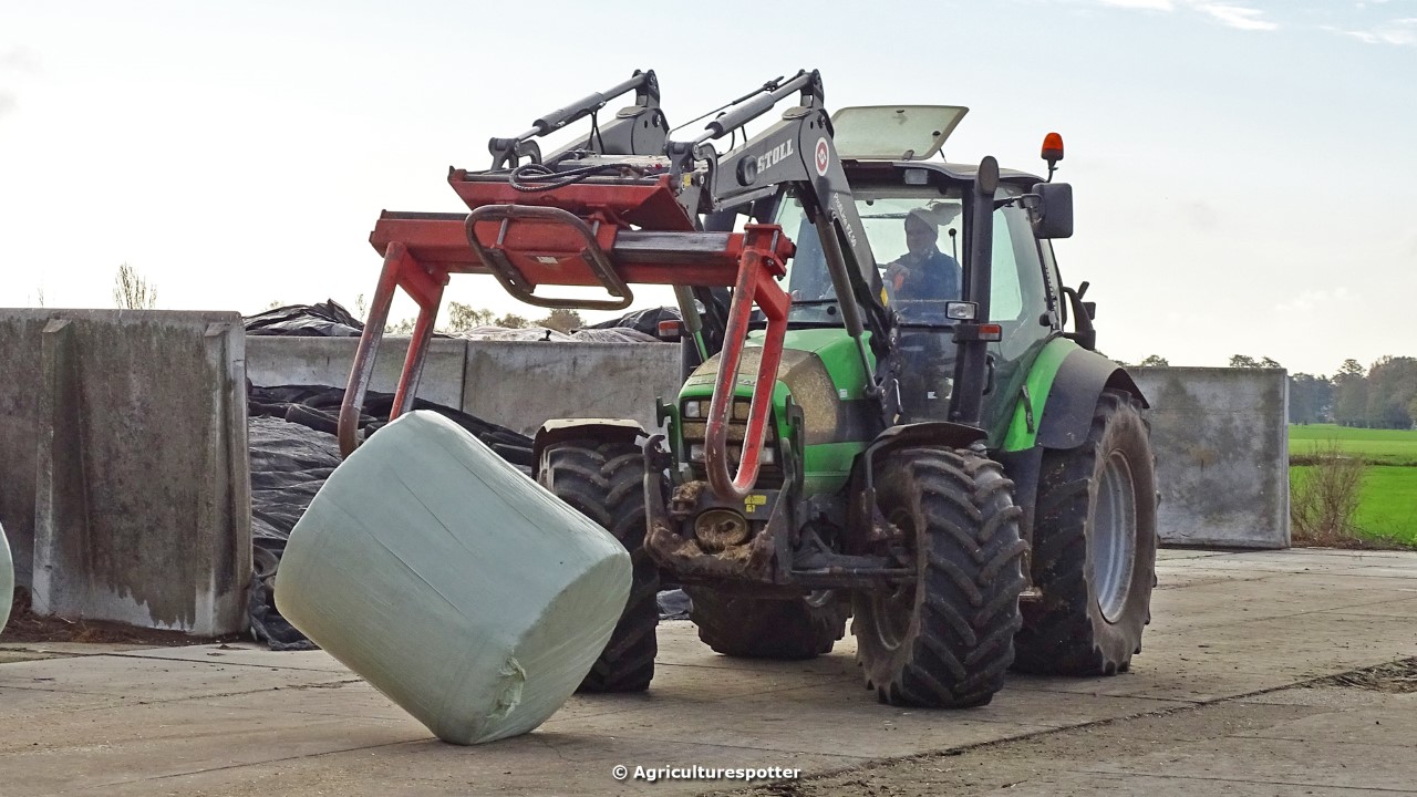 Mengbalen persen voor ABZ Diervoeding met een Orkel Dens-X compactor van Agrar Services Termaat uit Putten bij melkveehouder V.O.F. Van Heerikhuize in Lunteren (GD). De grote voorraadbunker werd gevuld met een Case IH Maxxum 125 (Kees Steenbeek) en het verplaatsen van de balen werd gedaan met een Deutz-Fahr Agrotron (Jan van Heerikhuize). De Orkel Dens-X compactor werd aangedreven door een Fendt 828 Vario.