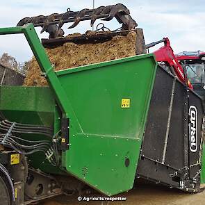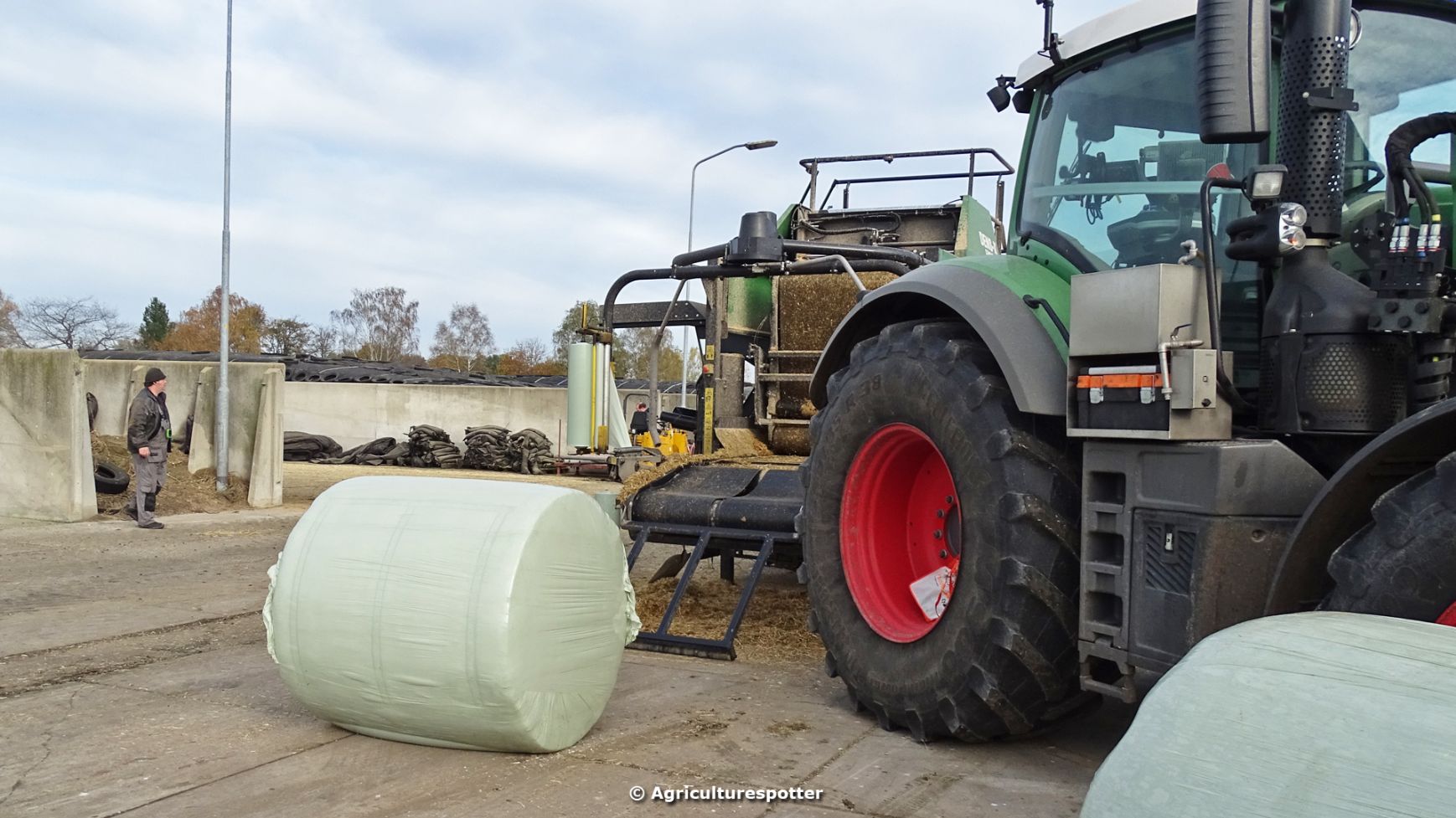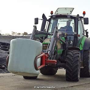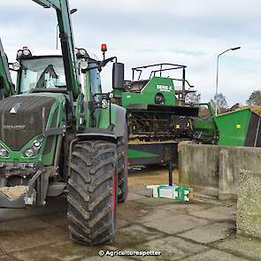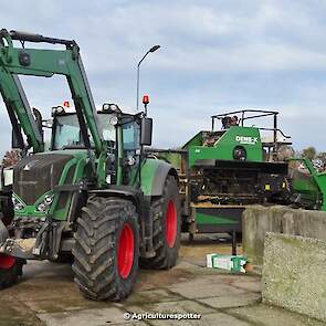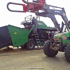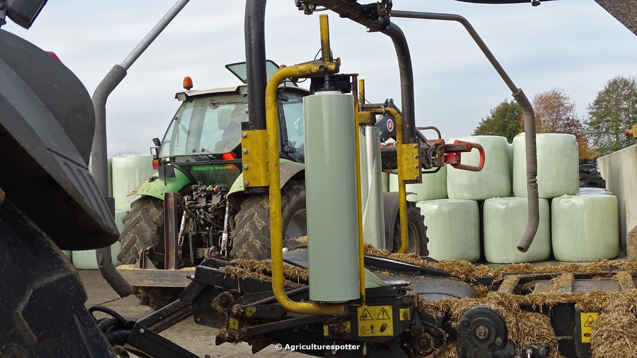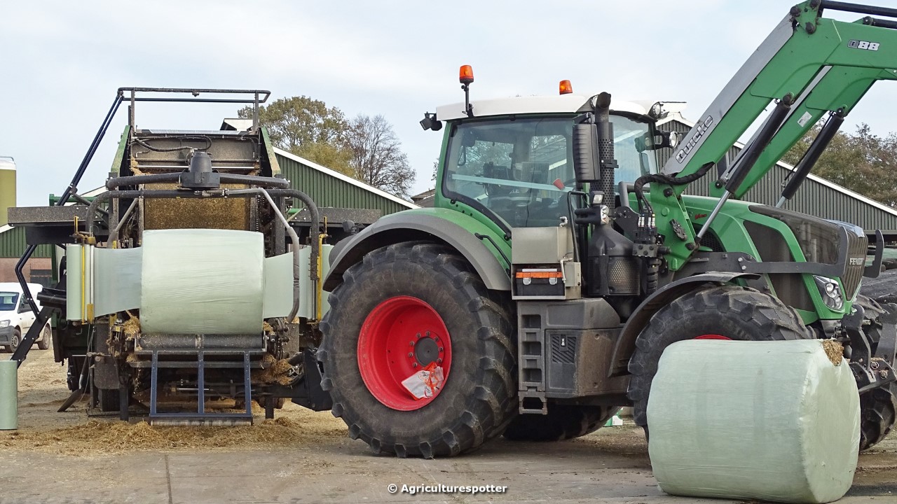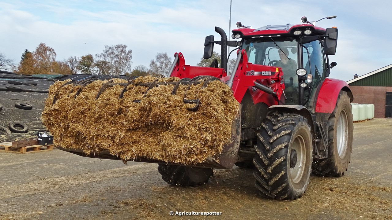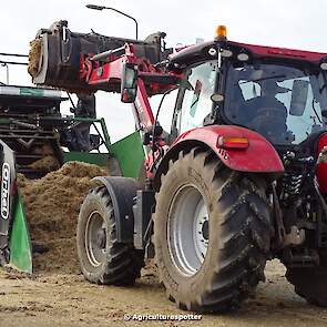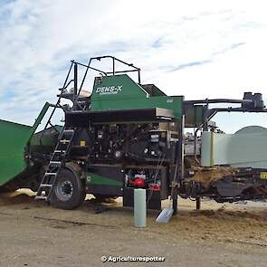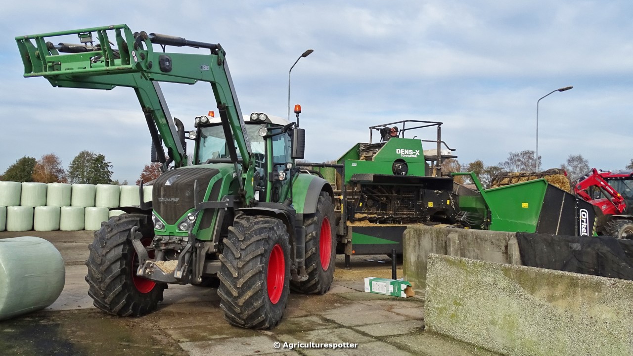 Mengbalen persen voor ABZ Diervoeding met een Orkel Dens-X compactor van Agrar Services Termaat uit Putten bij melkveehouder V.O.F. Van Heerikhuize in Lunteren (GD). De grote voorraadbunker werd gevuld met een Case IH Maxxum 125 (Kees Steenbeek) en het verplaatsen van de balen werd gedaan met een Deutz-Fahr Agrotron (Jan van Heerikhuize). De Orkel Dens-X compactor werd aangedreven door een Fendt 828 Vario.
