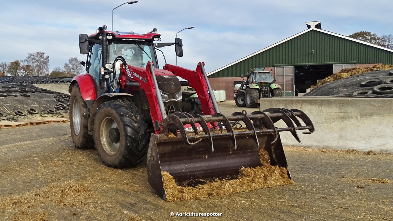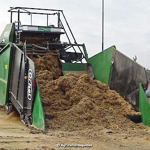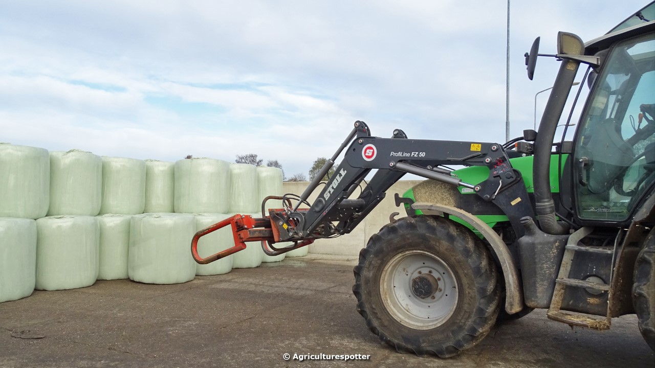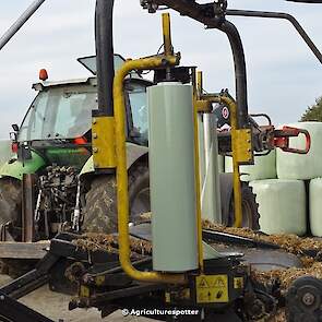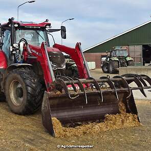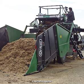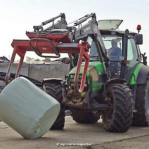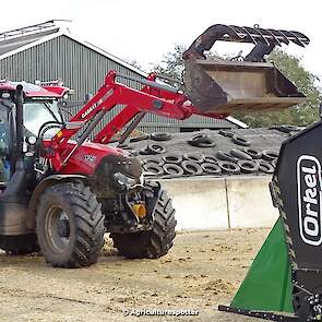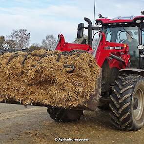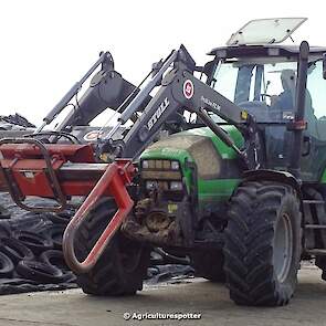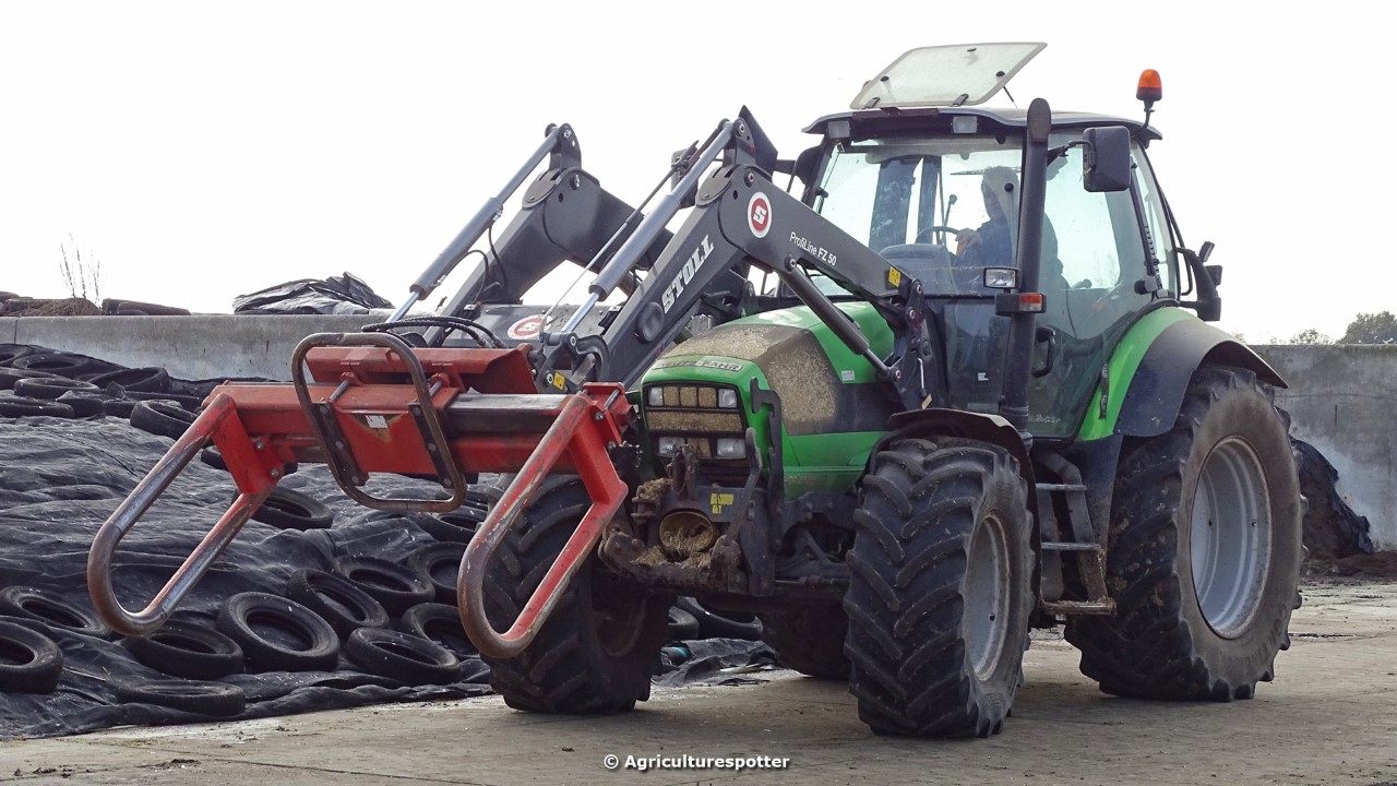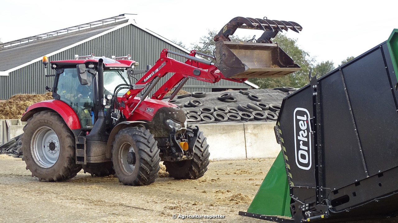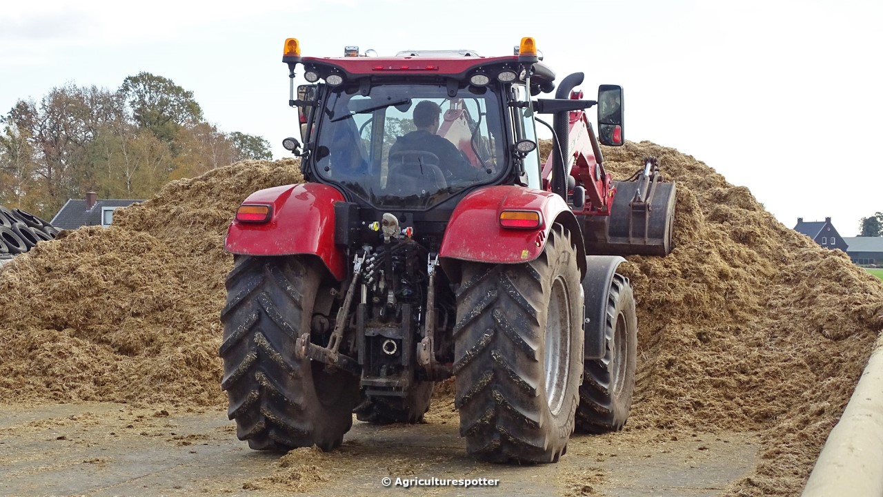 Mengbalen persen voor ABZ Diervoeding met een Orkel Dens-X compactor van Agrar Services Termaat uit Putten bij melkveehouder V.O.F. Van Heerikhuize in Lunteren (GD). De grote voorraadbunker werd gevuld met een Case IH Maxxum 125 (Kees Steenbeek) en het verplaatsen van de balen werd gedaan met een Deutz-Fahr Agrotron (Jan van Heerikhuize). De Orkel Dens-X compactor werd aangedreven door een Fendt 828 Vario.