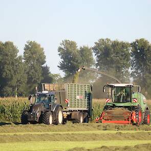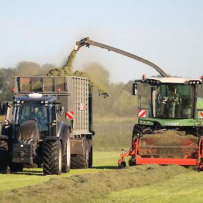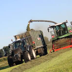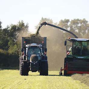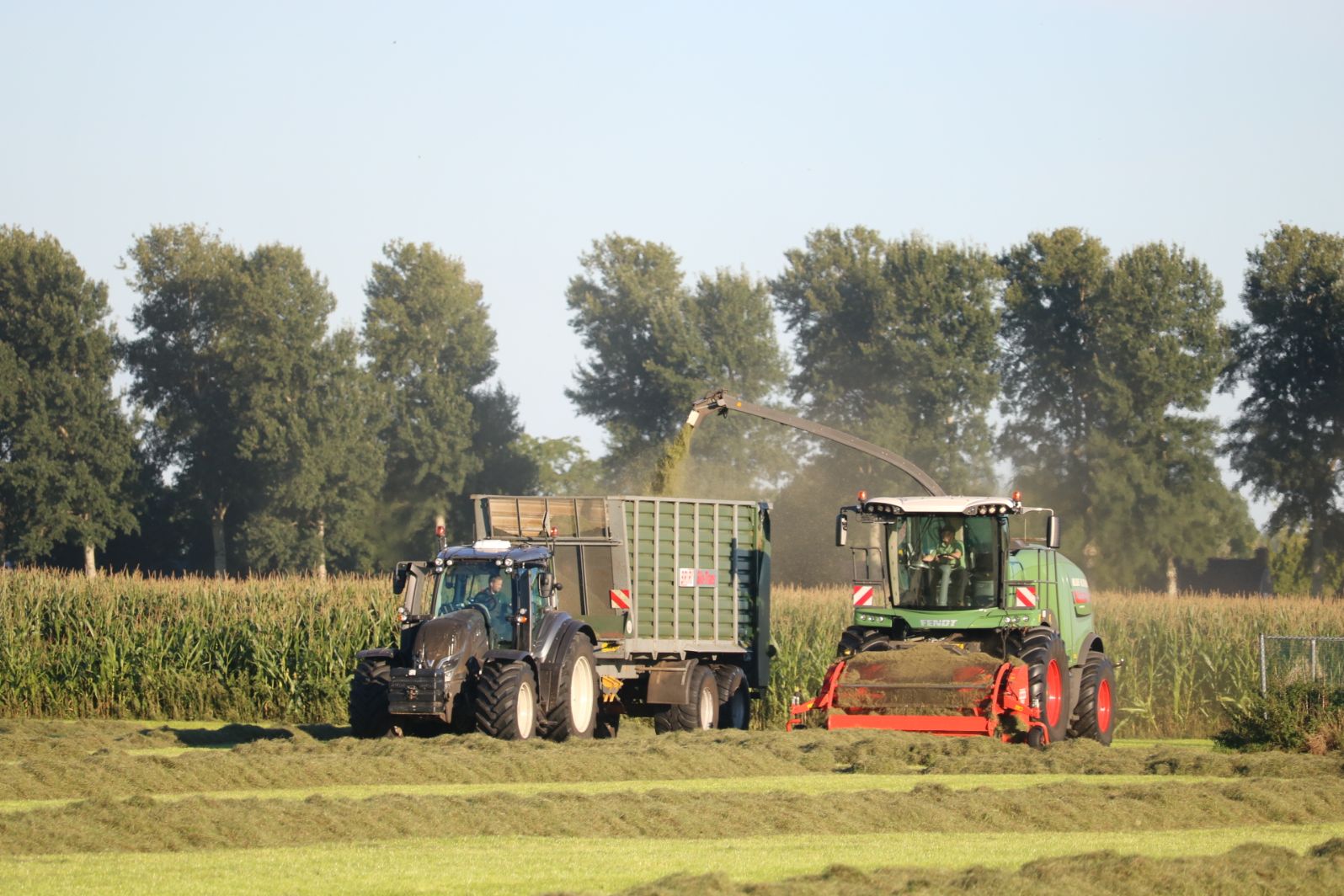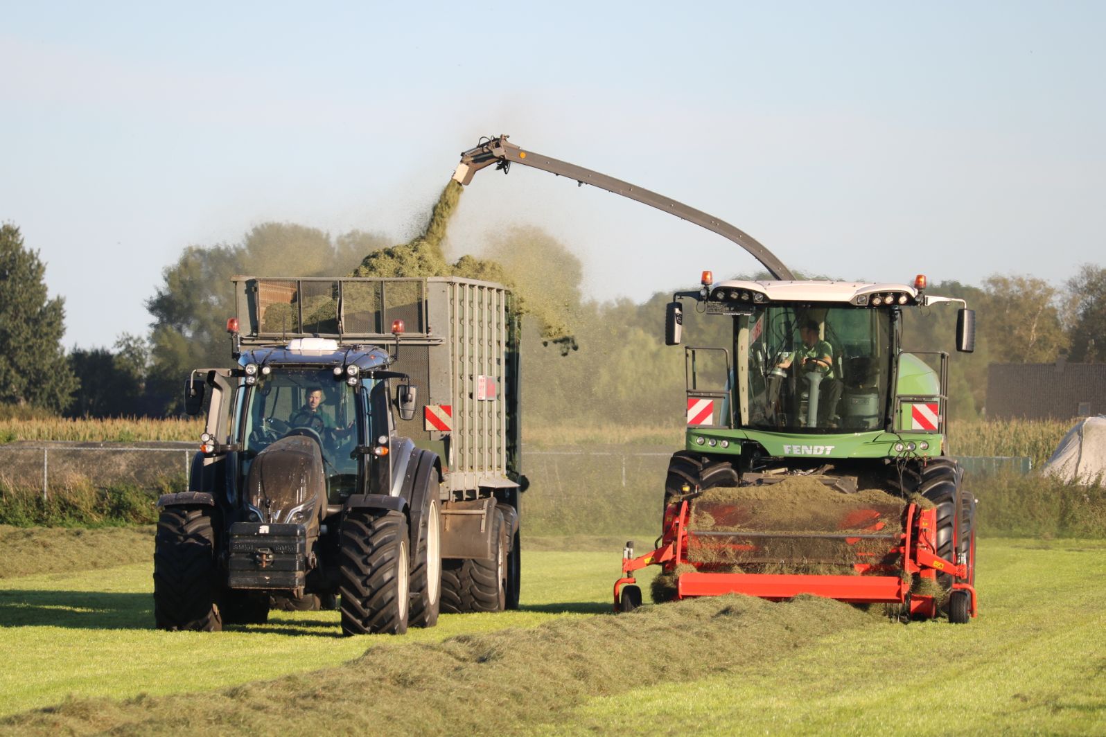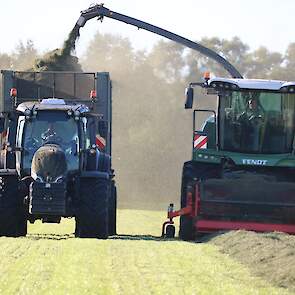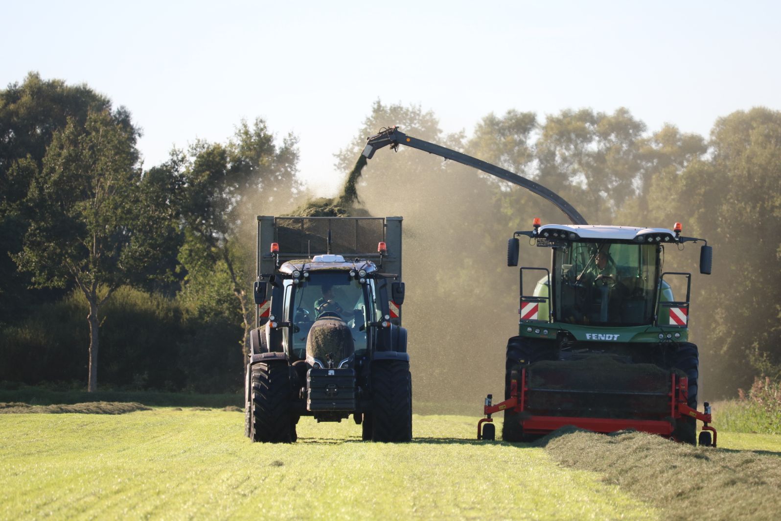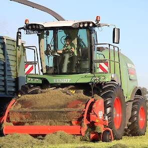 Loonbedrijf Hulshof uit Valthermond (DR) met de Fendt aan het gras hakselen.