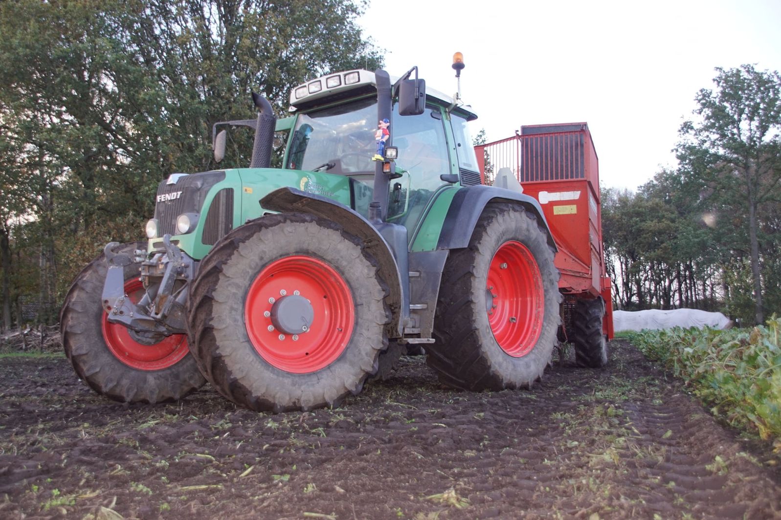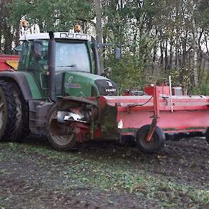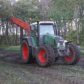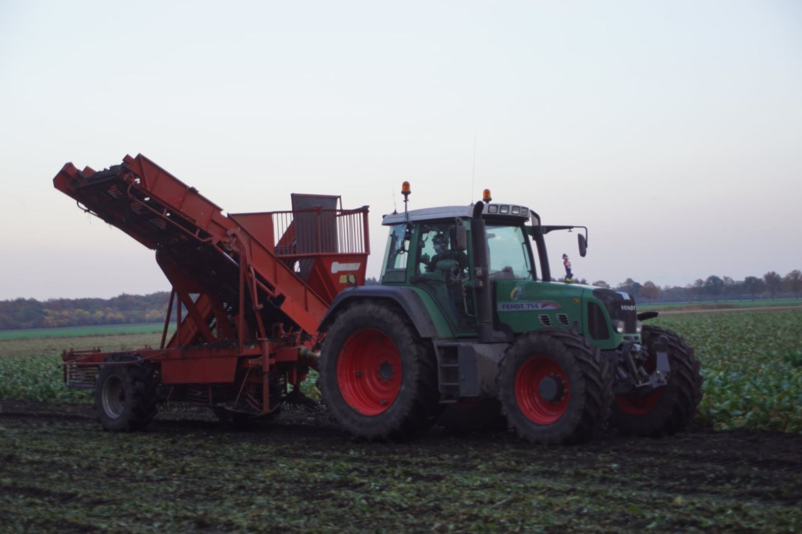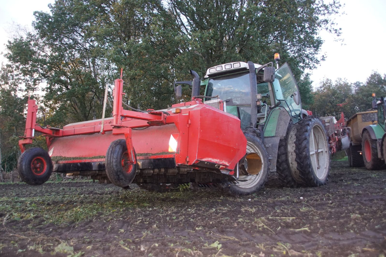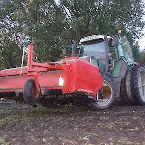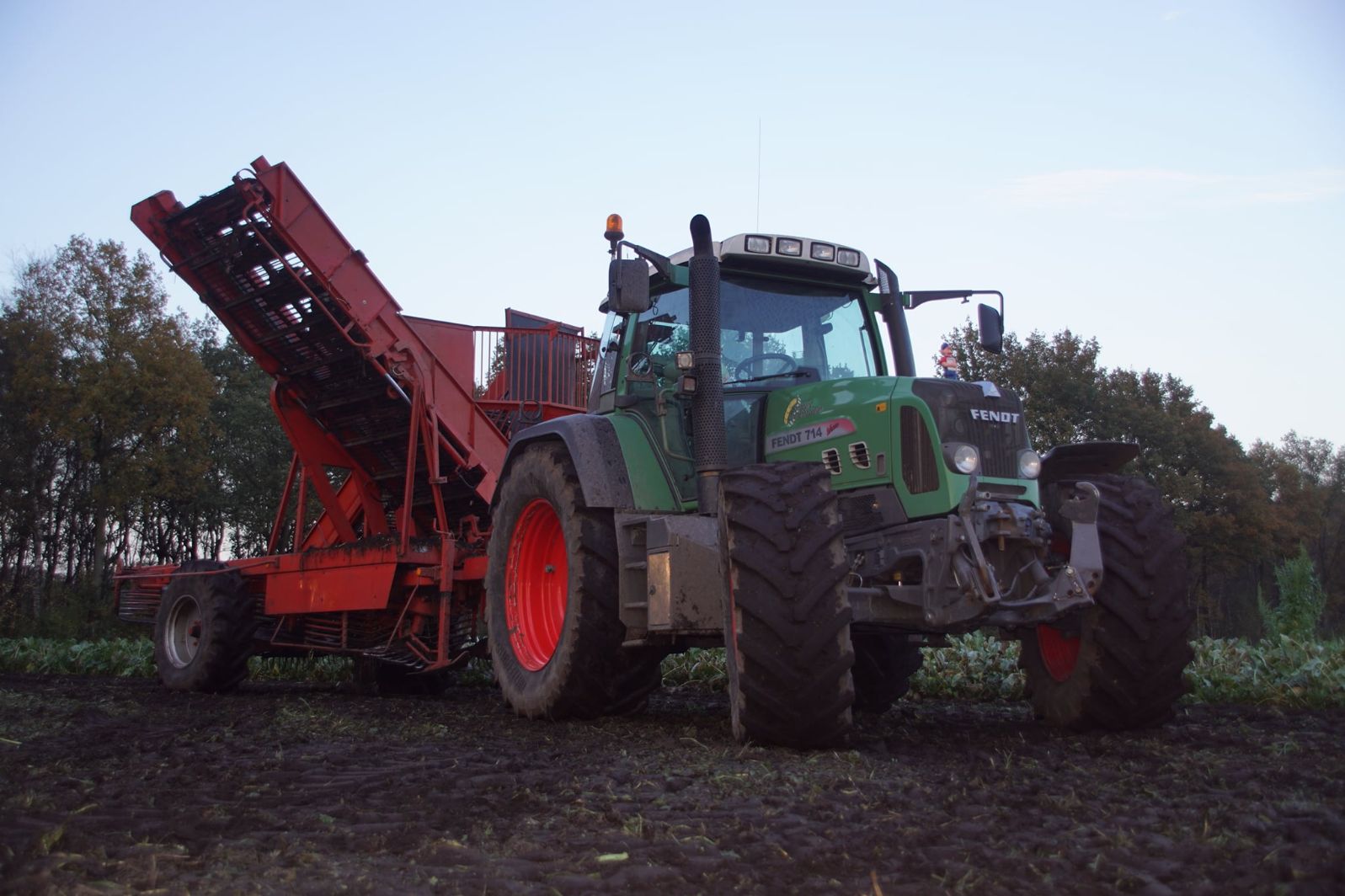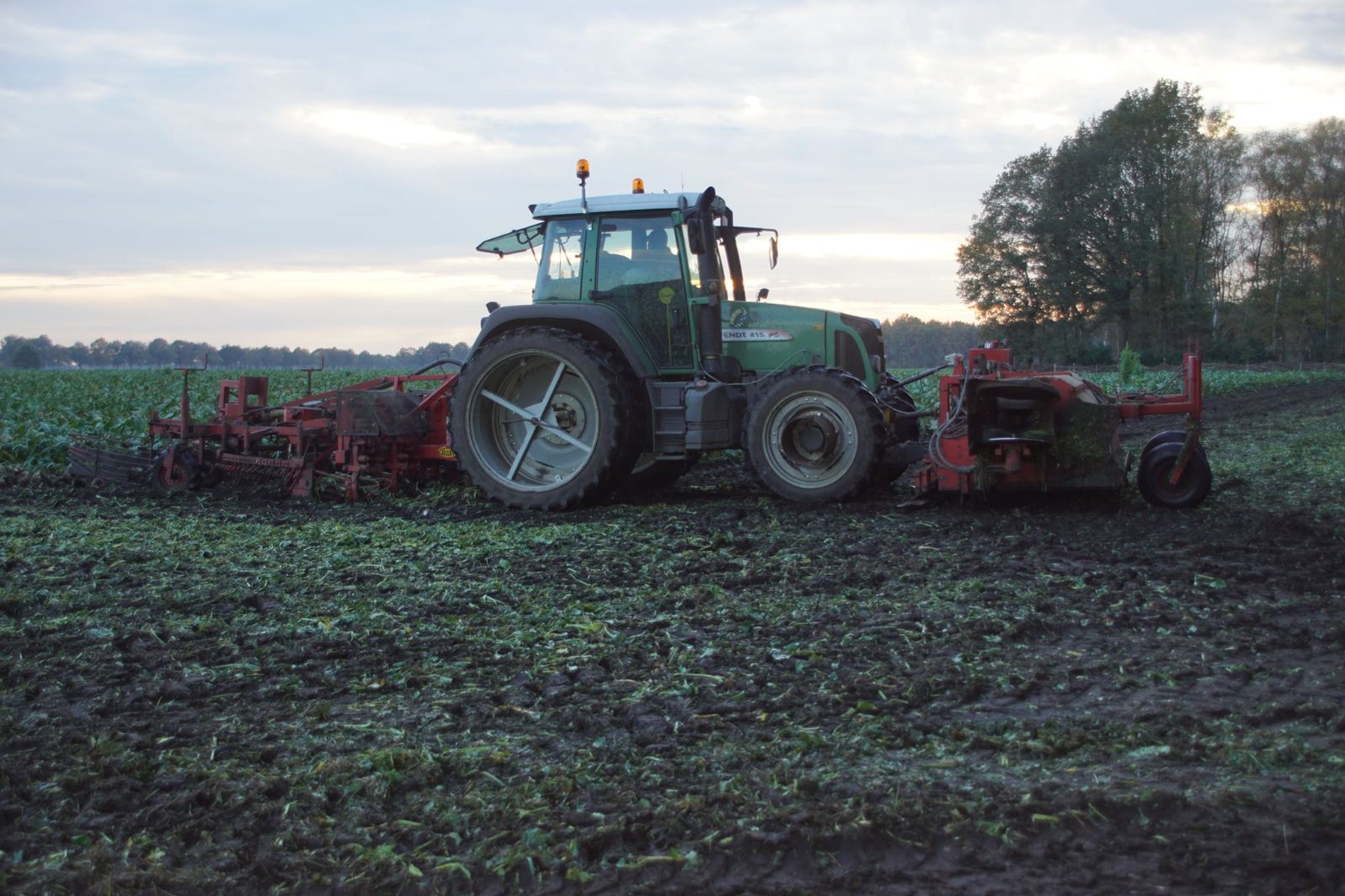 Loonbedrijf Schepers uit Oosterhesselen aan het tweefasen suikerbieten rooien met onder andere een Fendt 415 en 818 en een Fendt 714 met Gilles-rooimachine.