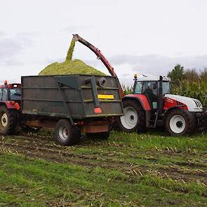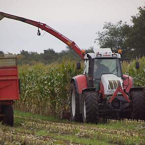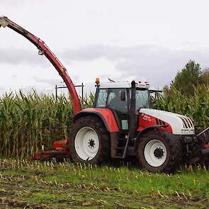 Vier rijen mais hakselen met de PZ Quattro, gehangen aan een Steyr 170 CVT.