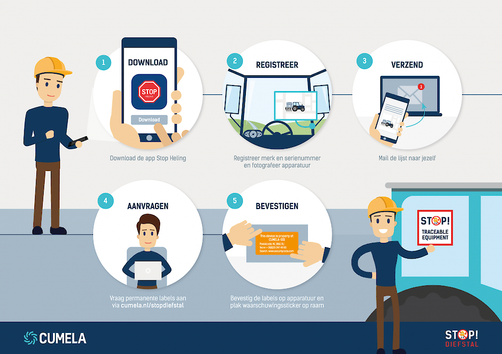 Hoewel de politie geen partij is in de campagne, gaat de landelijke eenheid de campagne van Cumela wel ondersteunen door via sociale media actief te wijzen op het labelen en registreren. Boeren registreren de apparatuur in een gratis app en markeren de apparatuur met een opvallend oranje label.