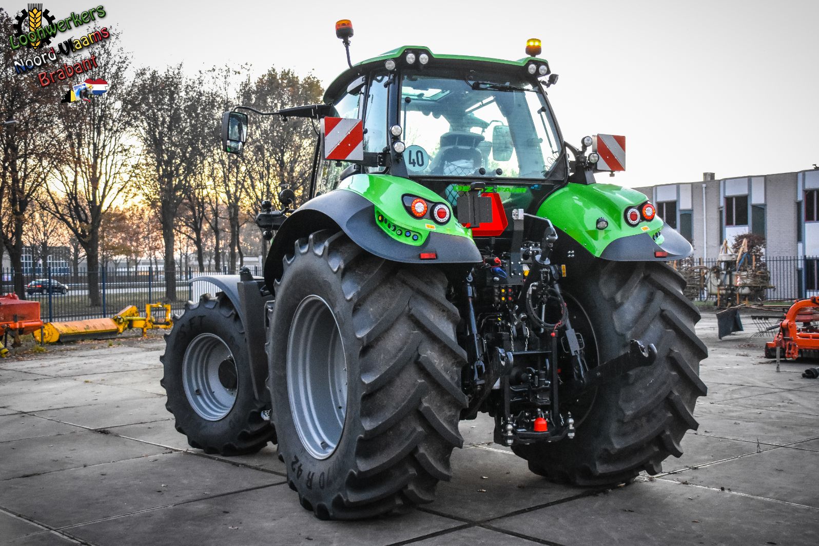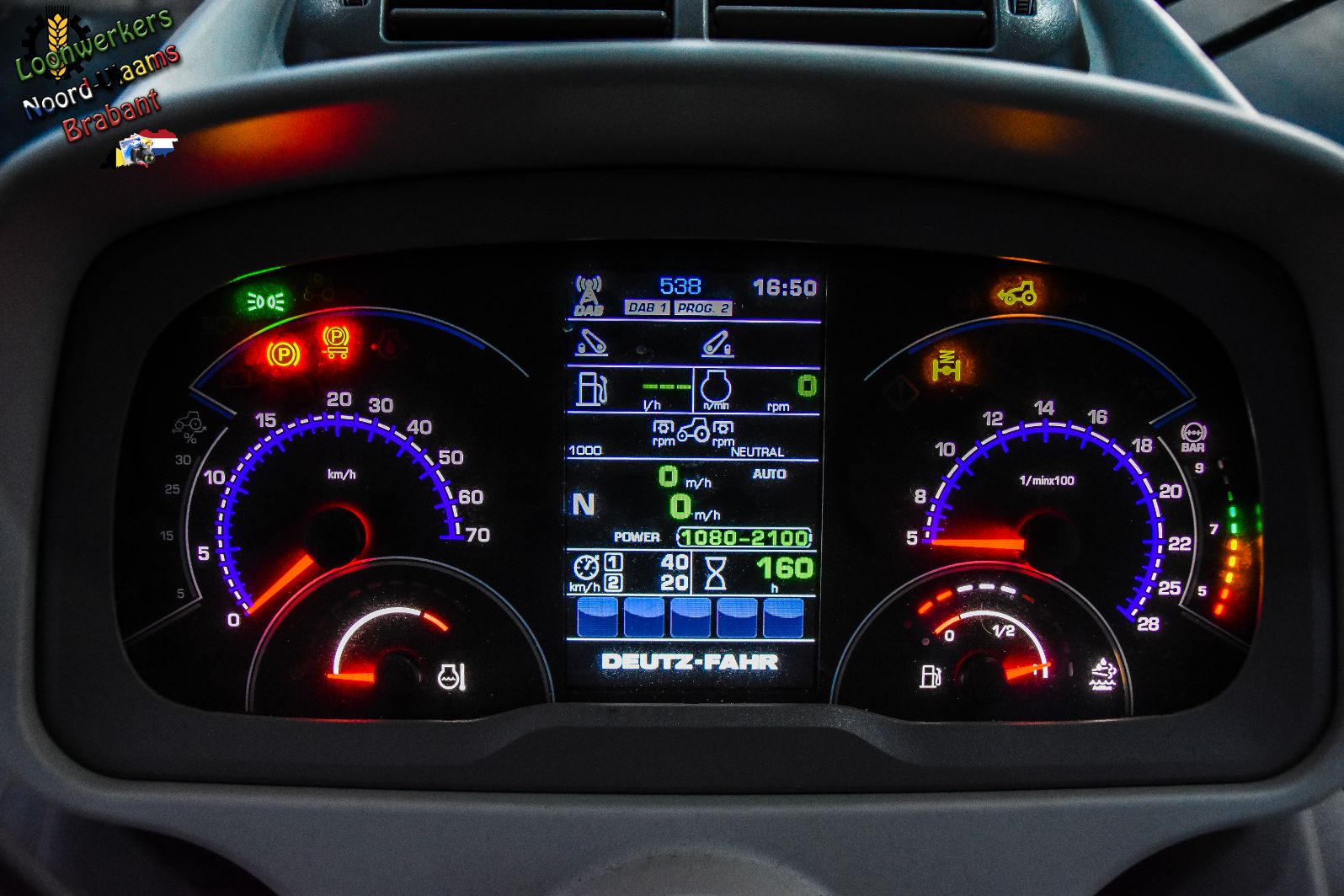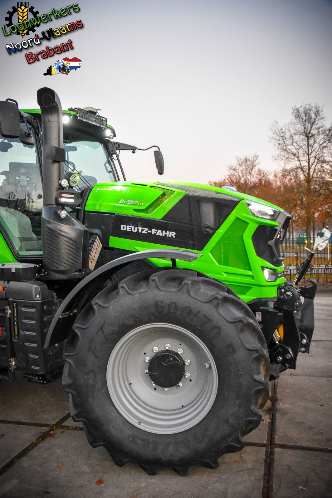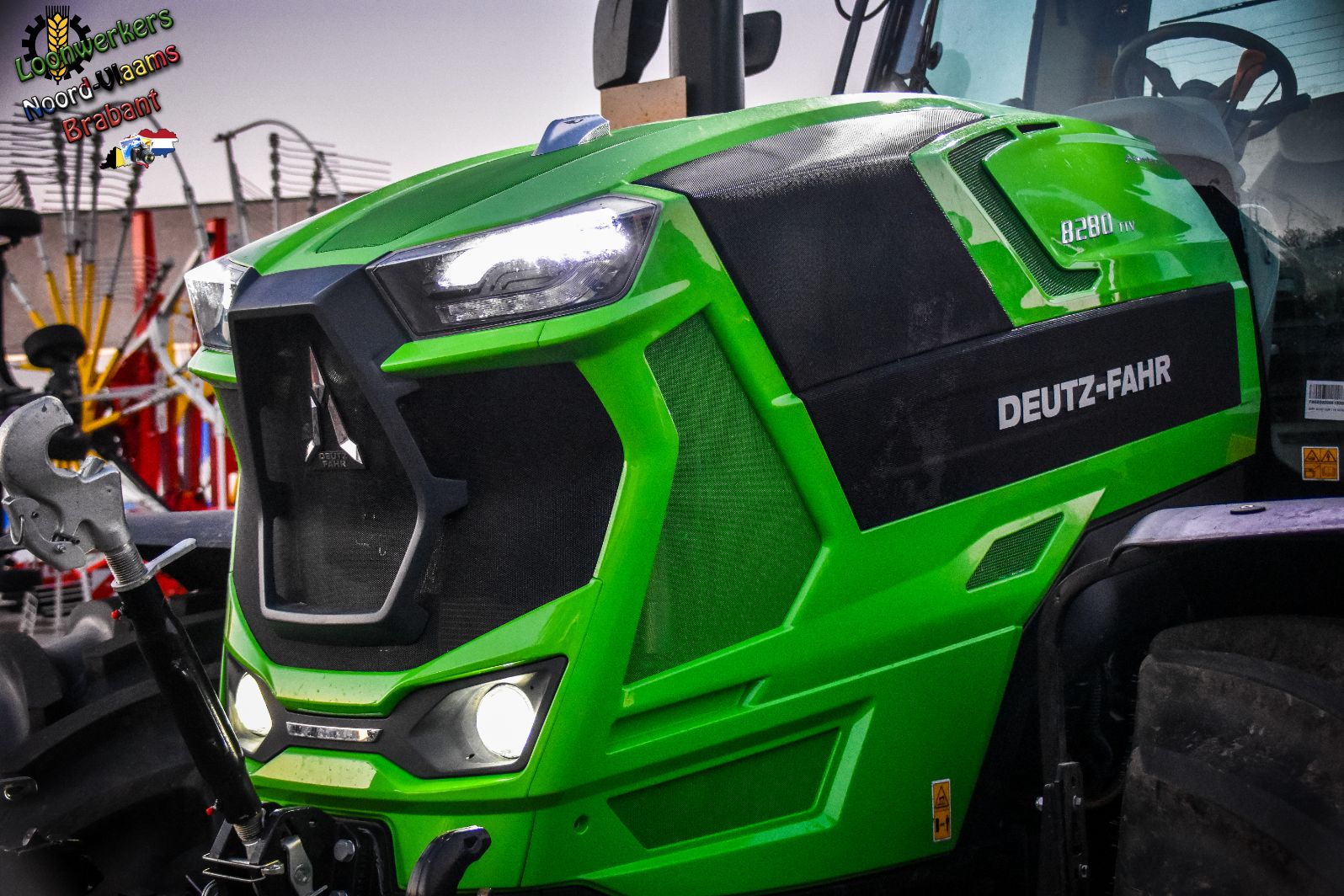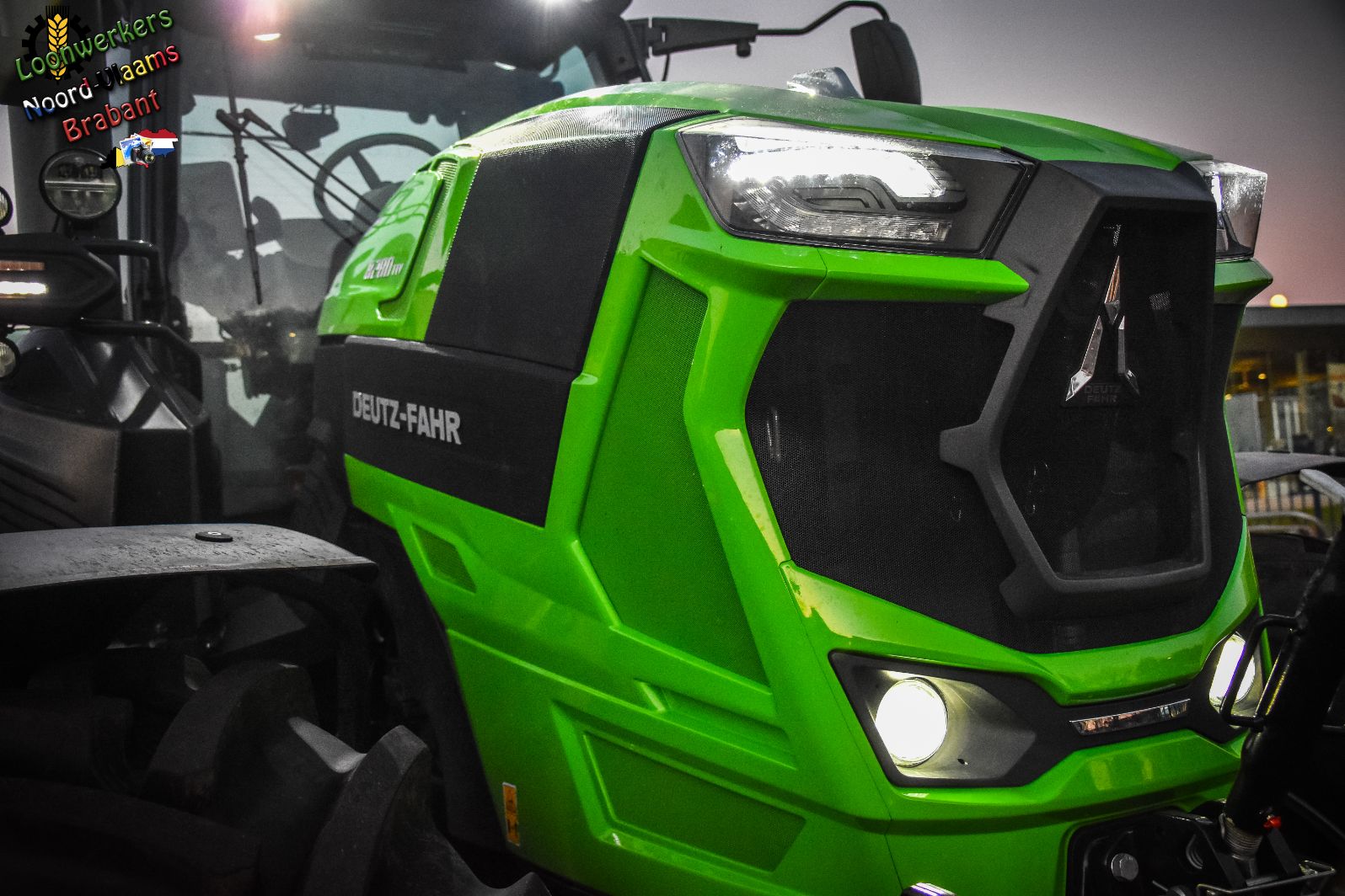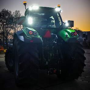Wat meteen opvalt is het nog niet zo lang geleden aangepaste uiterlijk van de Deutz-tractoren in het motorkapdesign. Ook zijn er op deze Full-Option-uitvoering zeer veel extra lampen in en uit te schakelen om ook het nachtwerk mogelijk te maken.