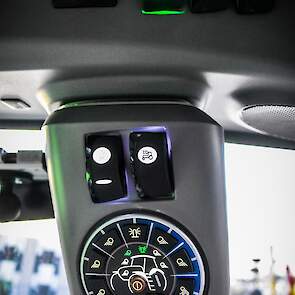 Om de verlichting goed te laten zien zijn er ook wat foto's gemaakt in het donker. Achteraan deze imposante machine zijn de nodige hydraulische ventielen te vinden voor alle mogelijke werktuigen en voor de liefhebber is deze machine ook uit te rusten met stoelverwarming en koeling.