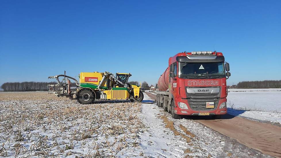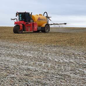 In delen van Limburg viel, in vergelijking met de meeste andere delen van het land, weinig sneeuw. Dit zorgde ervoor dat loonwerkers afgelopen maandag reeds kalk over de akkers konden verspreiden. Zo ook bij het akkerbouw-, asperges- en varkensbedrijf van Van den Goor uit Maria-Hoop. „Ondanks de invallende dooi waren de percelen maandag goed berijdbaar,” aldus loonwerker Roger Stassen,