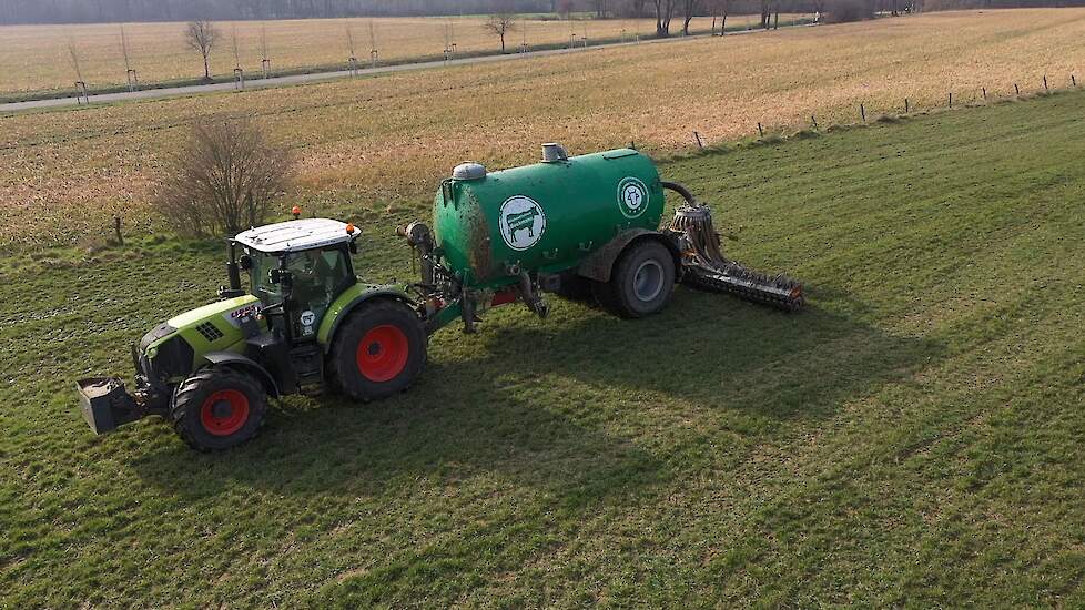 Grasland bemesten met de Claas Arion voor de tank.