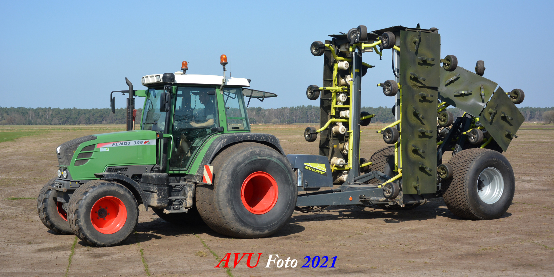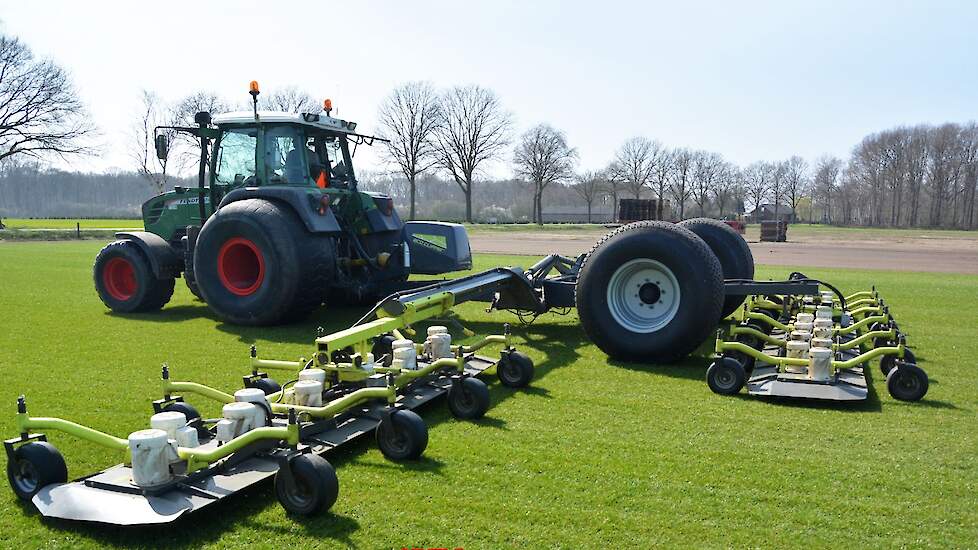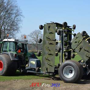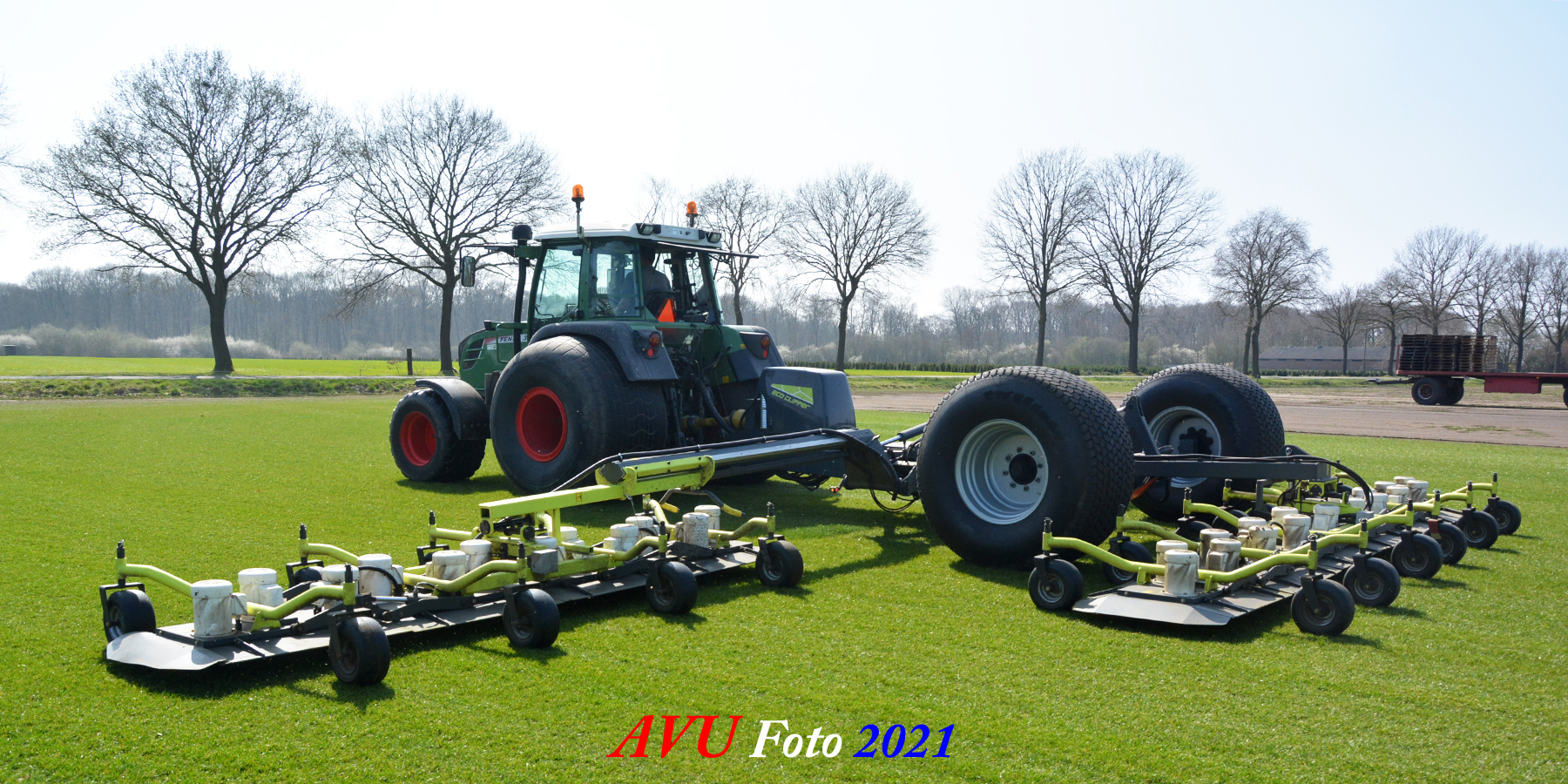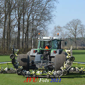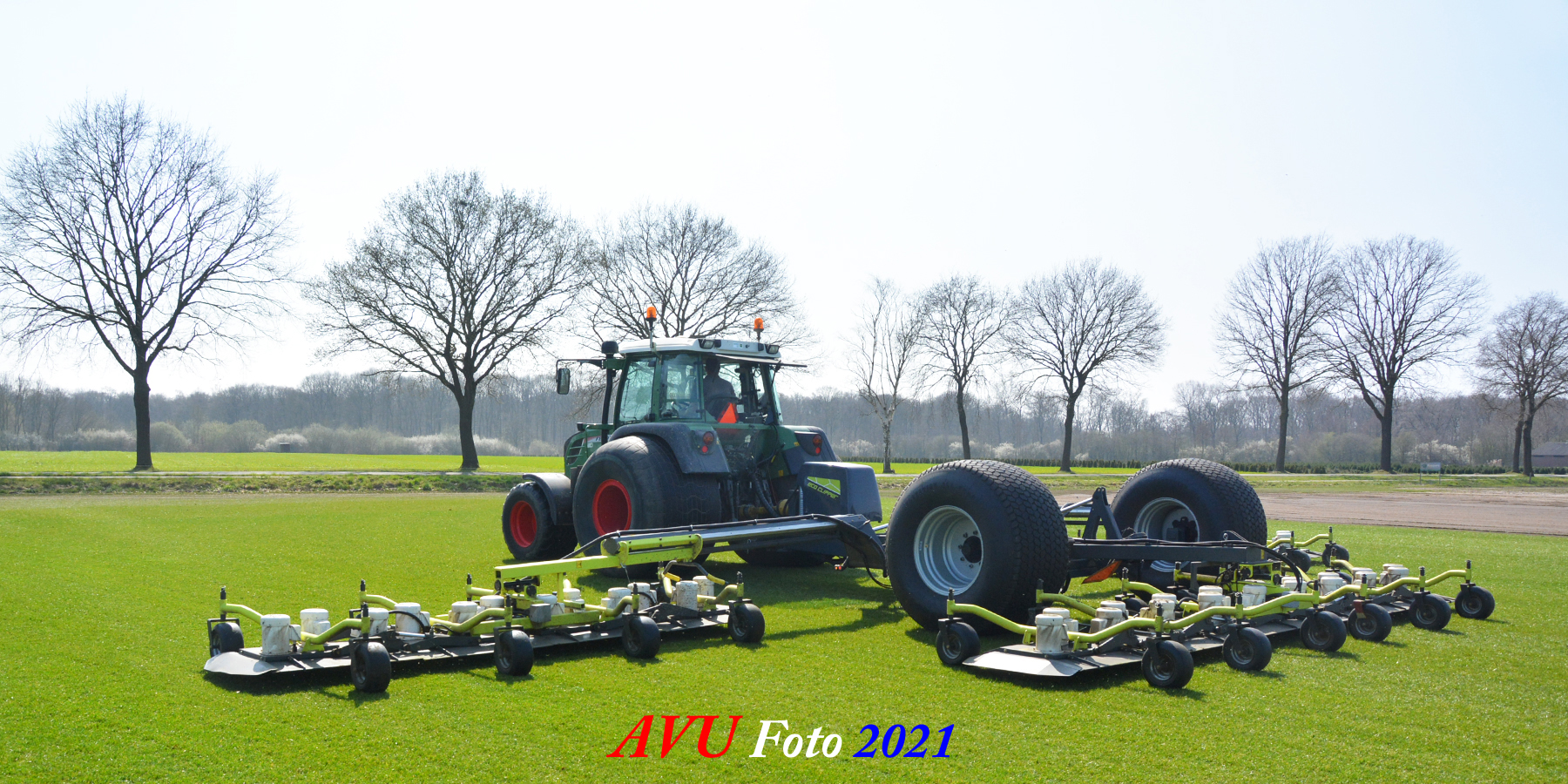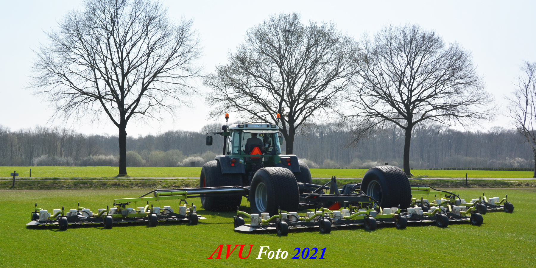 Afhankelijk van omstandigheden en vermogen is dat mogelijk met de Leijenaar TM 14 Eco Clipper met 14 onafhankelijke maaidekken met elk drie messen en een werkbreedte van 14,11 meter. Een getrokken opklapbare machine met een eigen gewicht van 3450 kg en een opgebouwde generator voor het elektrisch aandrijven van alle maaimessen. Hier aangedreven door de Fendt 309 Vario op de brede bandjes.