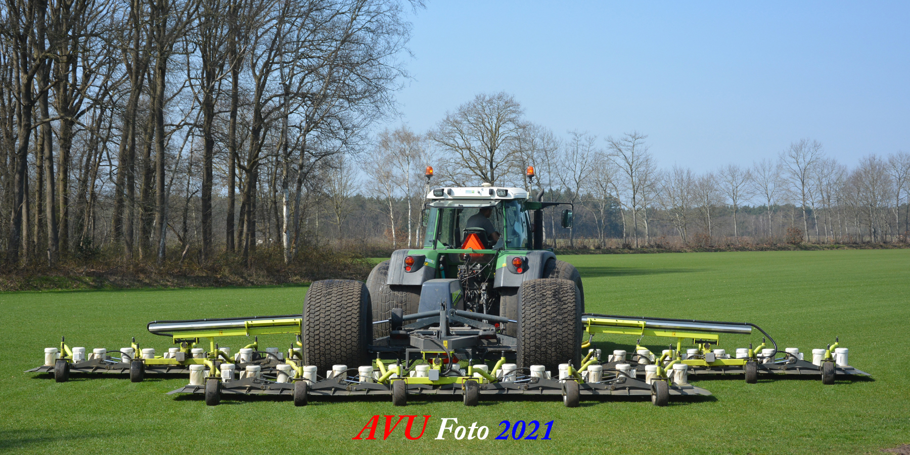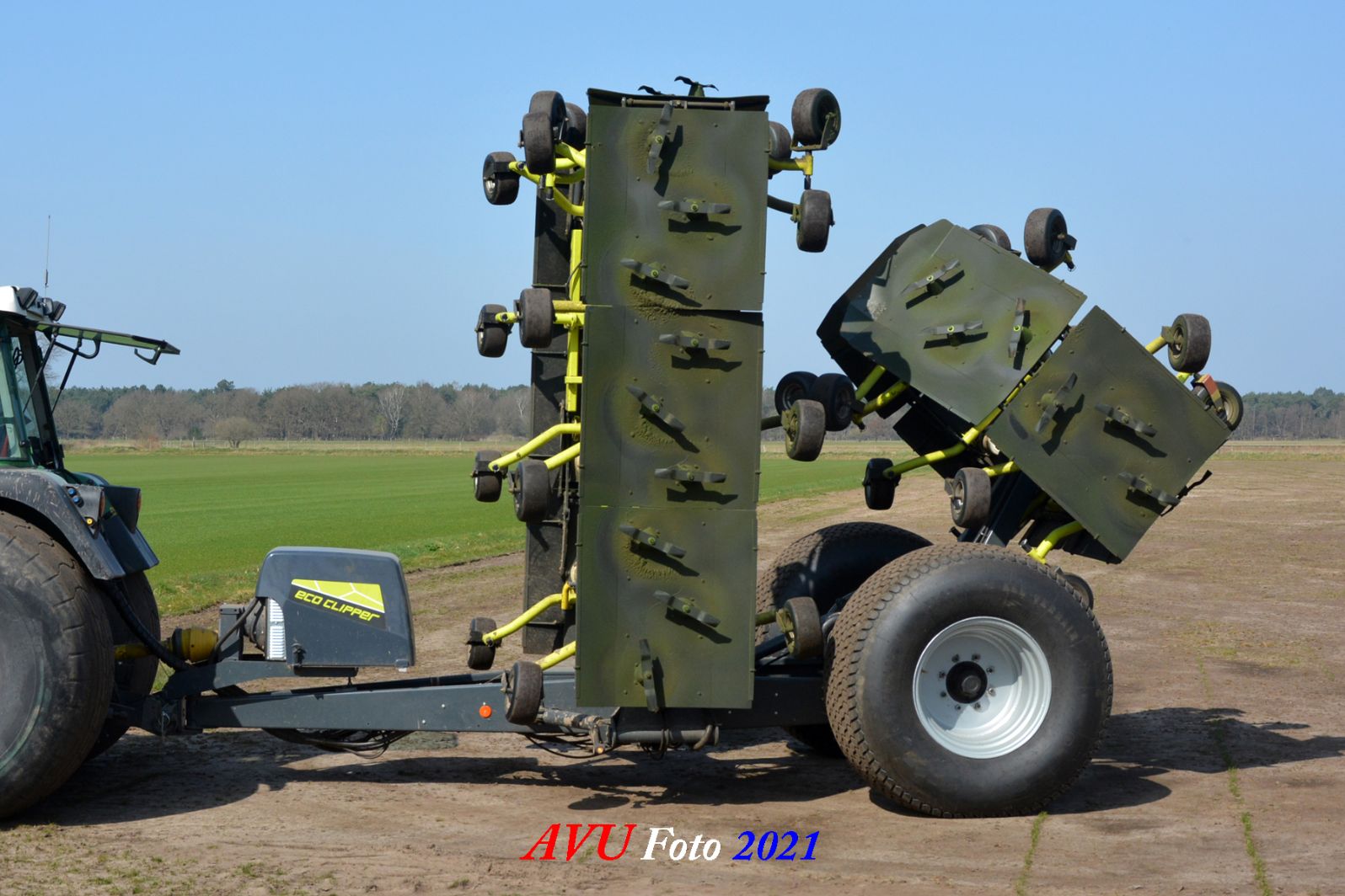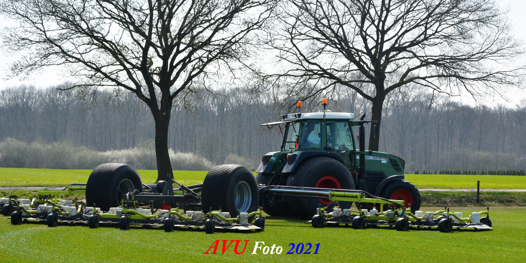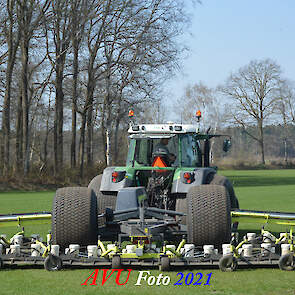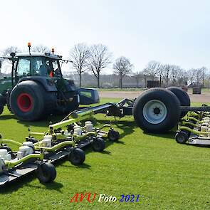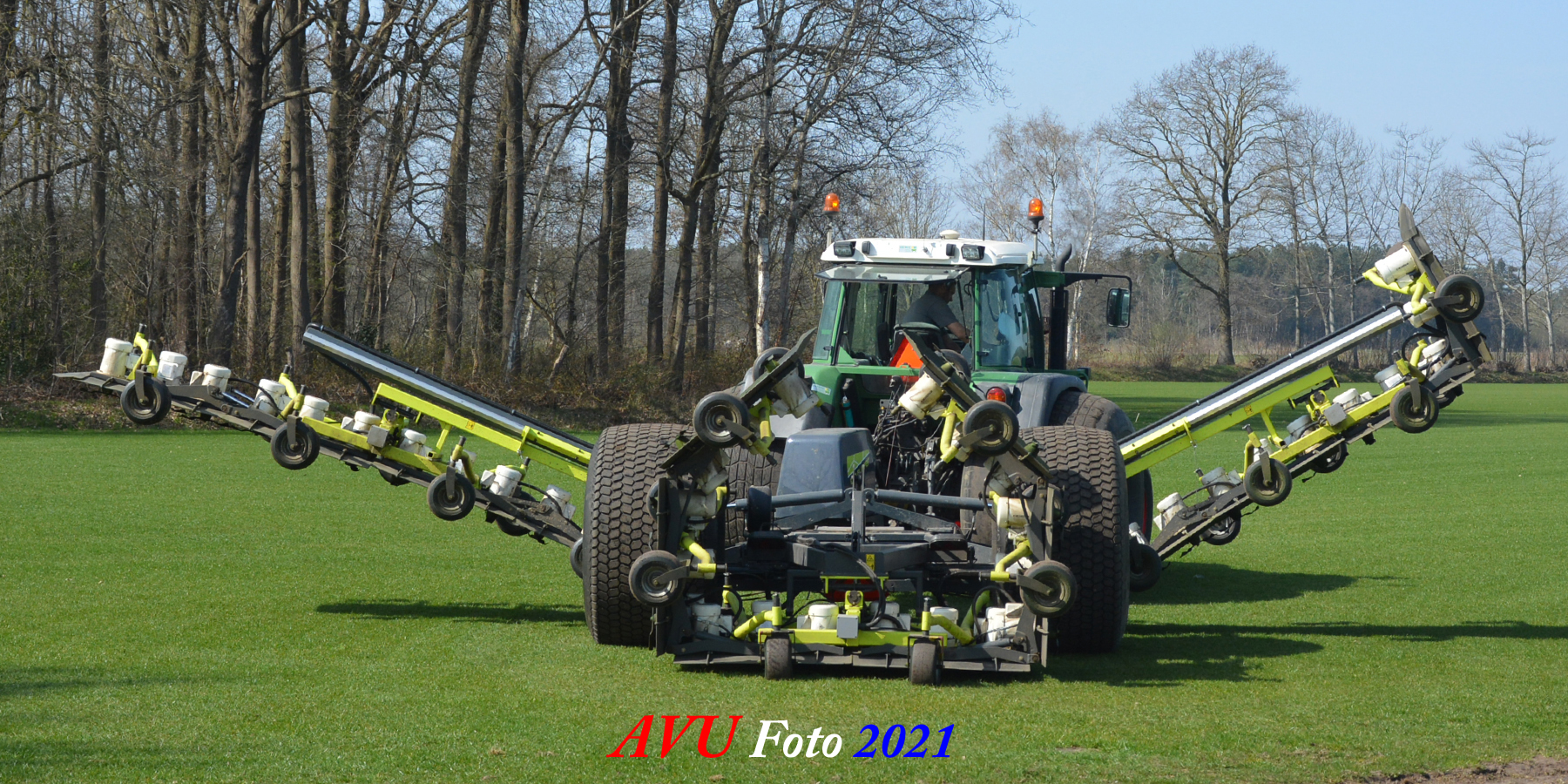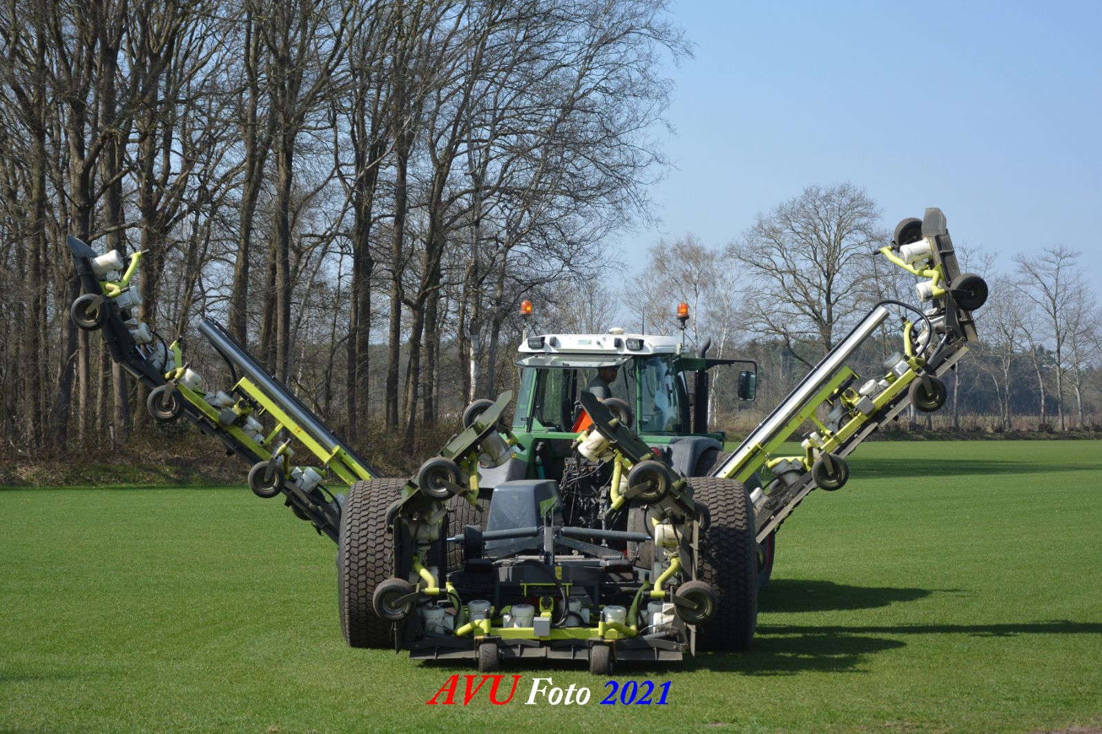 Afhankelijk van omstandigheden en vermogen is dat mogelijk met de Leijenaar TM 14 Eco Clipper met 14 onafhankelijke maaidekken met elk drie messen en een werkbreedte van 14,11 meter. Een getrokken opklapbare machine met een eigen gewicht van 3450 kg en een opgebouwde generator voor het elektrisch aandrijven van alle maaimessen. Hier aangedreven door de Fendt 309 Vario op de brede bandjes.