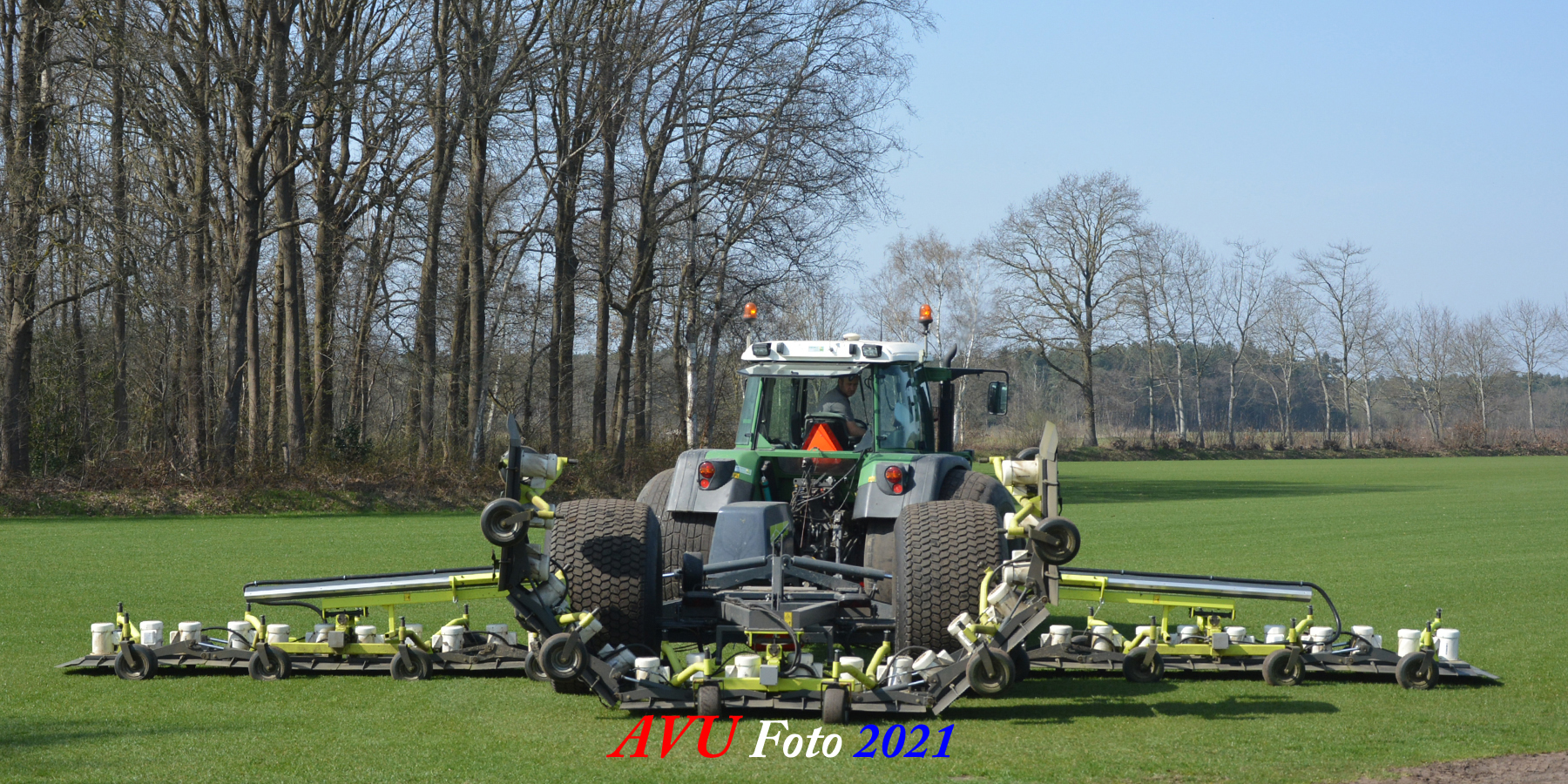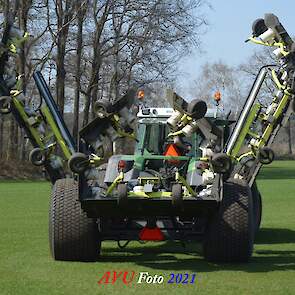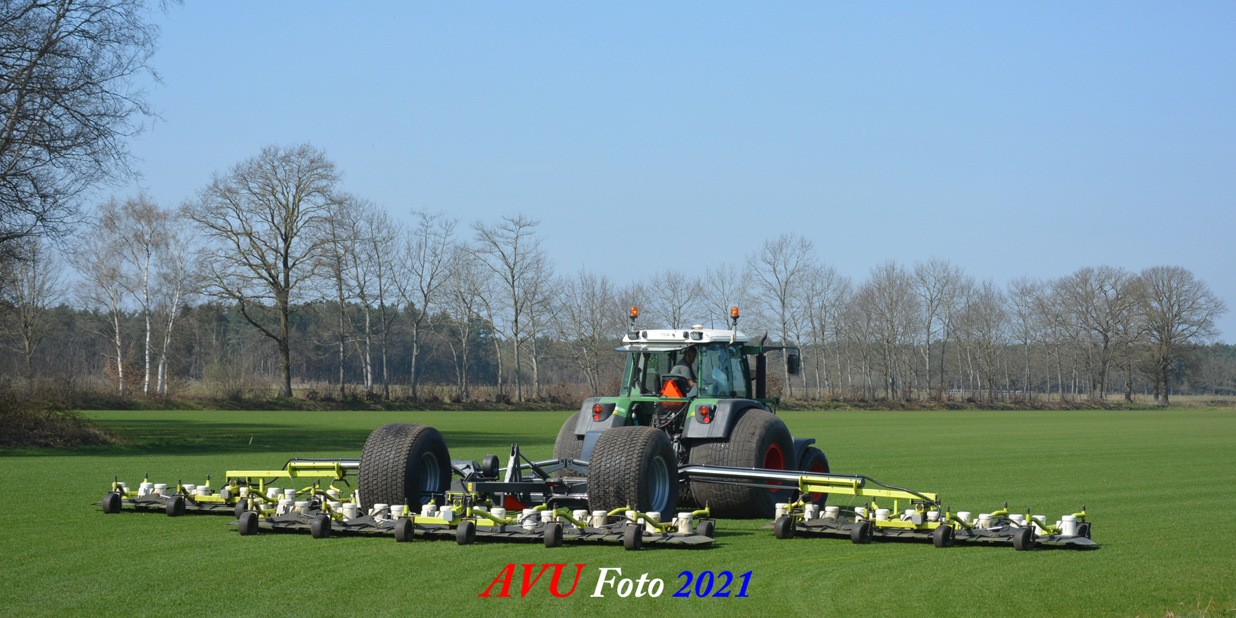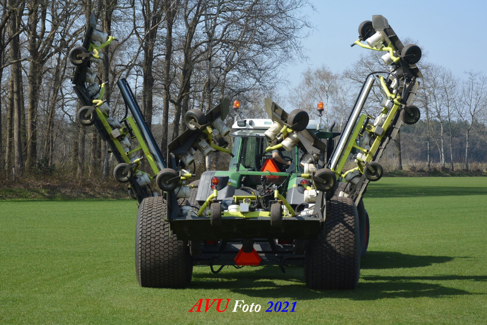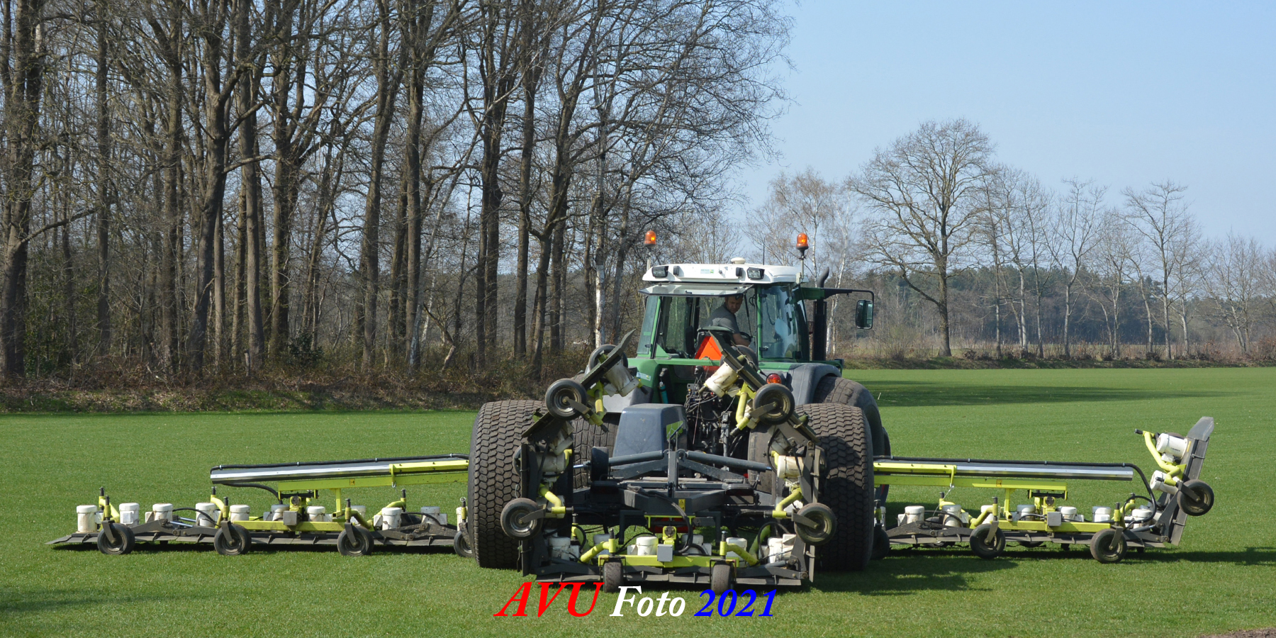 Afhankelijk van omstandigheden en vermogen is dat mogelijk met de Leijenaar TM 14 Eco Clipper met 14 onafhankelijke maaidekken met elk drie messen en een werkbreedte van 14,11 meter. Een getrokken opklapbare machine met een eigen gewicht van 3450 kg en een opgebouwde generator voor het elektrisch aandrijven van alle maaimessen. Hier aangedreven door de Fendt 309 Vario op de brede bandjes.