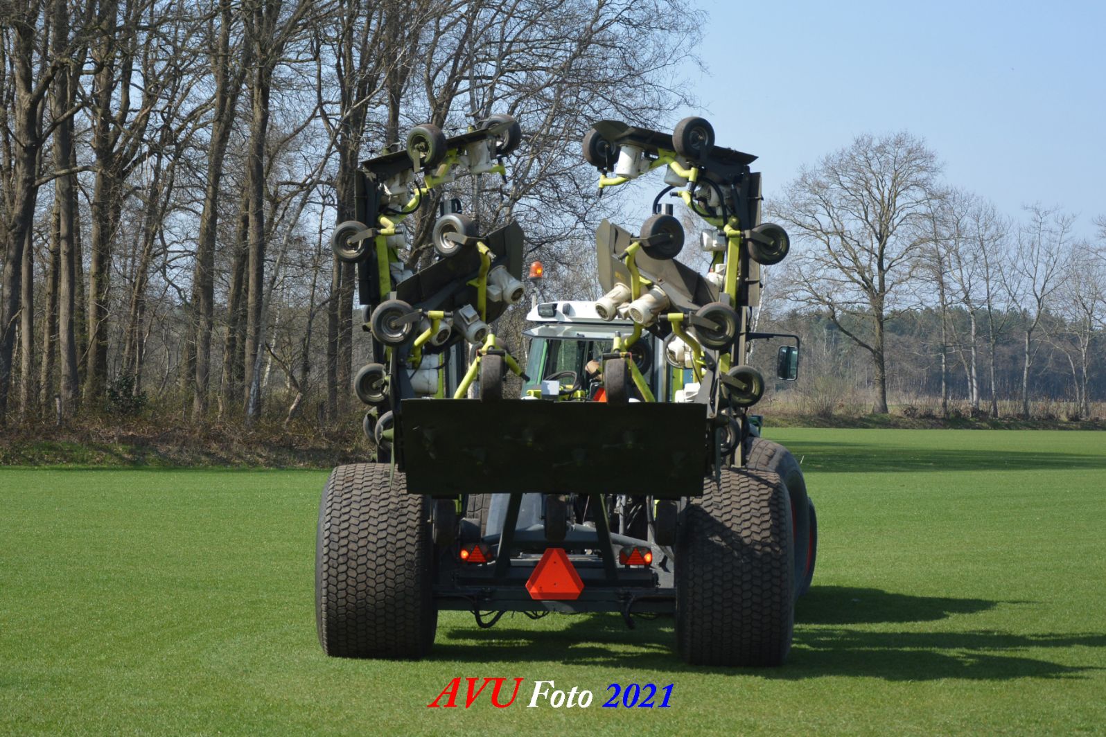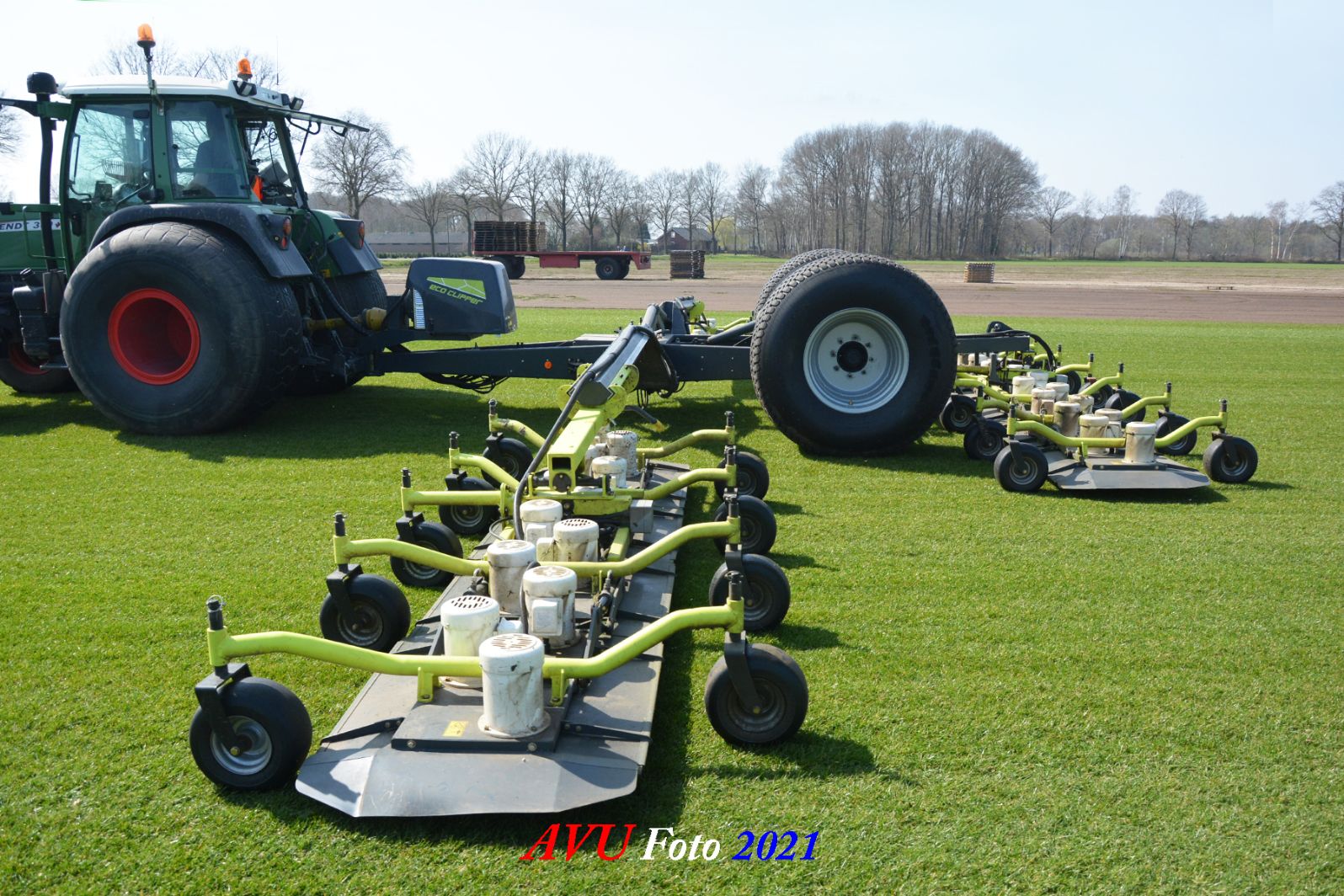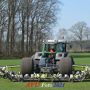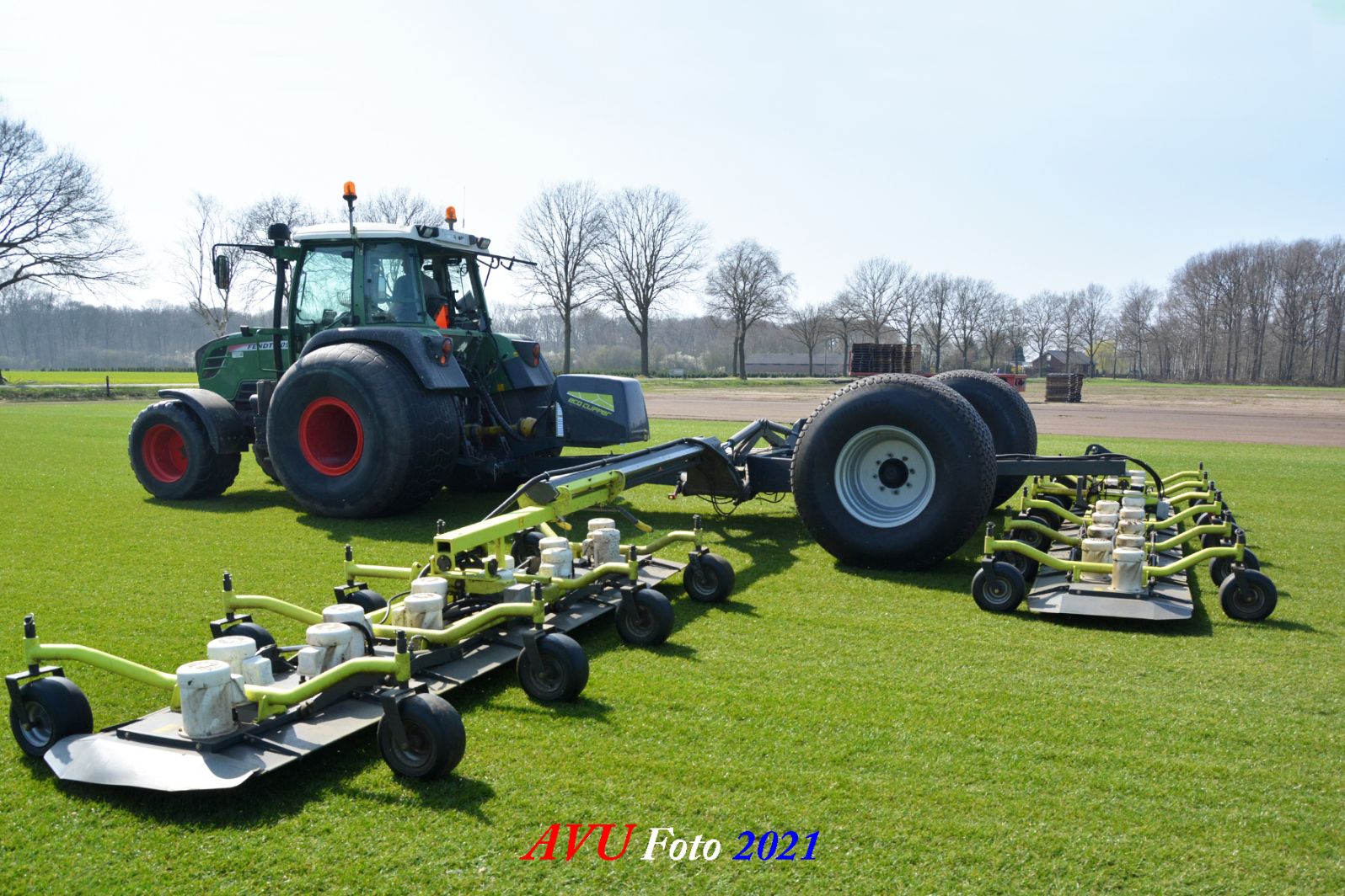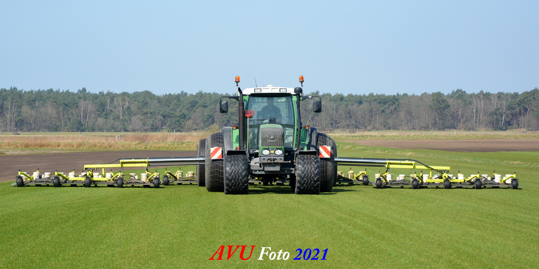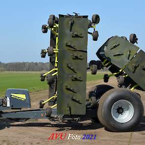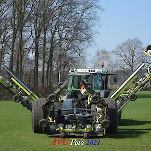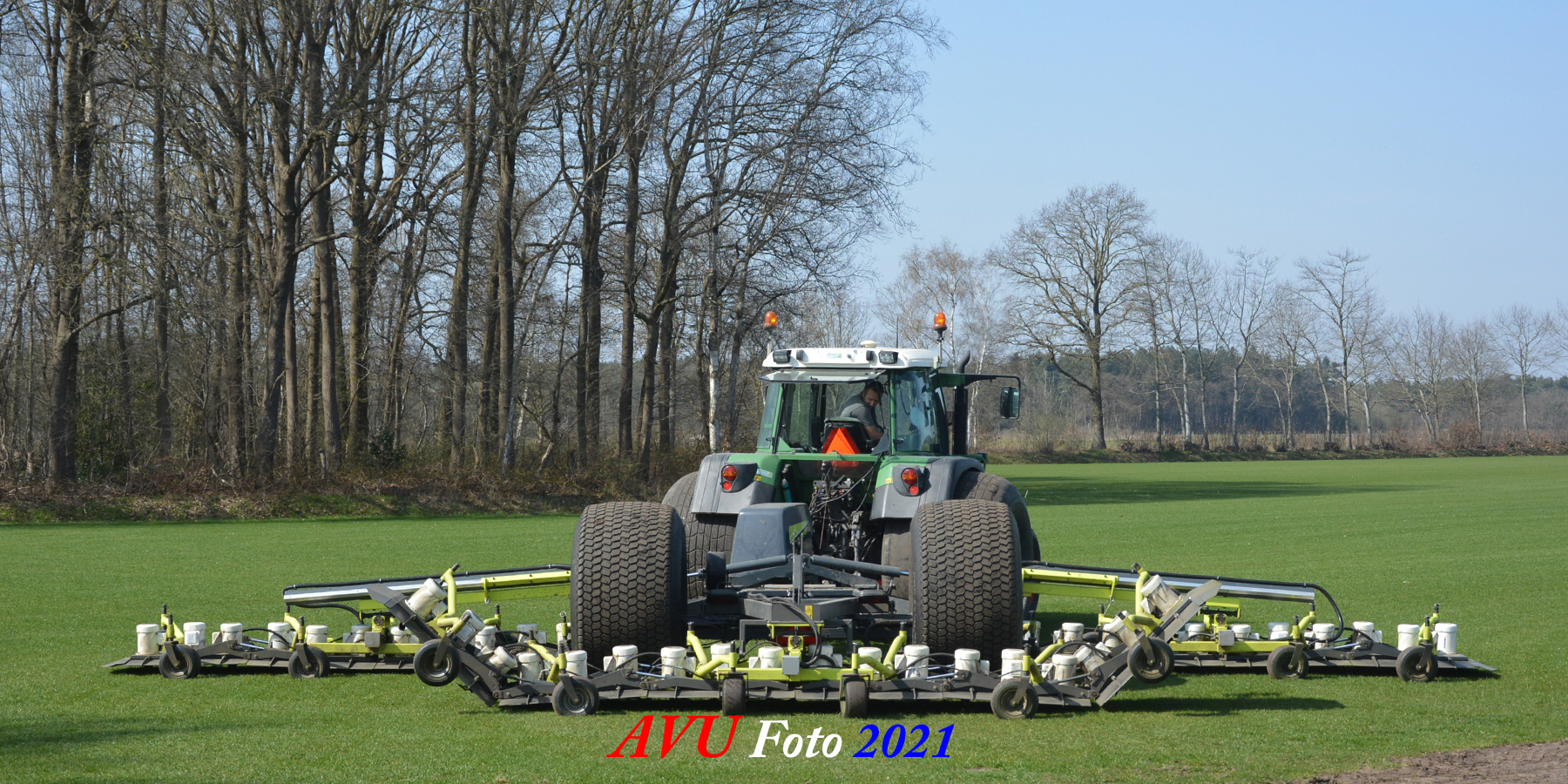 Afhankelijk van omstandigheden en vermogen is dat mogelijk met de Leijenaar TM 14 Eco Clipper met 14 onafhankelijke maaidekken met elk drie messen en een werkbreedte van 14,11 meter. Een getrokken opklapbare machine met een eigen gewicht van 3450 kg en een opgebouwde generator voor het elektrisch aandrijven van alle maaimessen. Hier aangedreven door de Fendt 309 Vario op de brede bandjes.