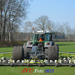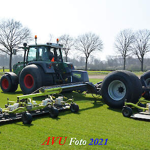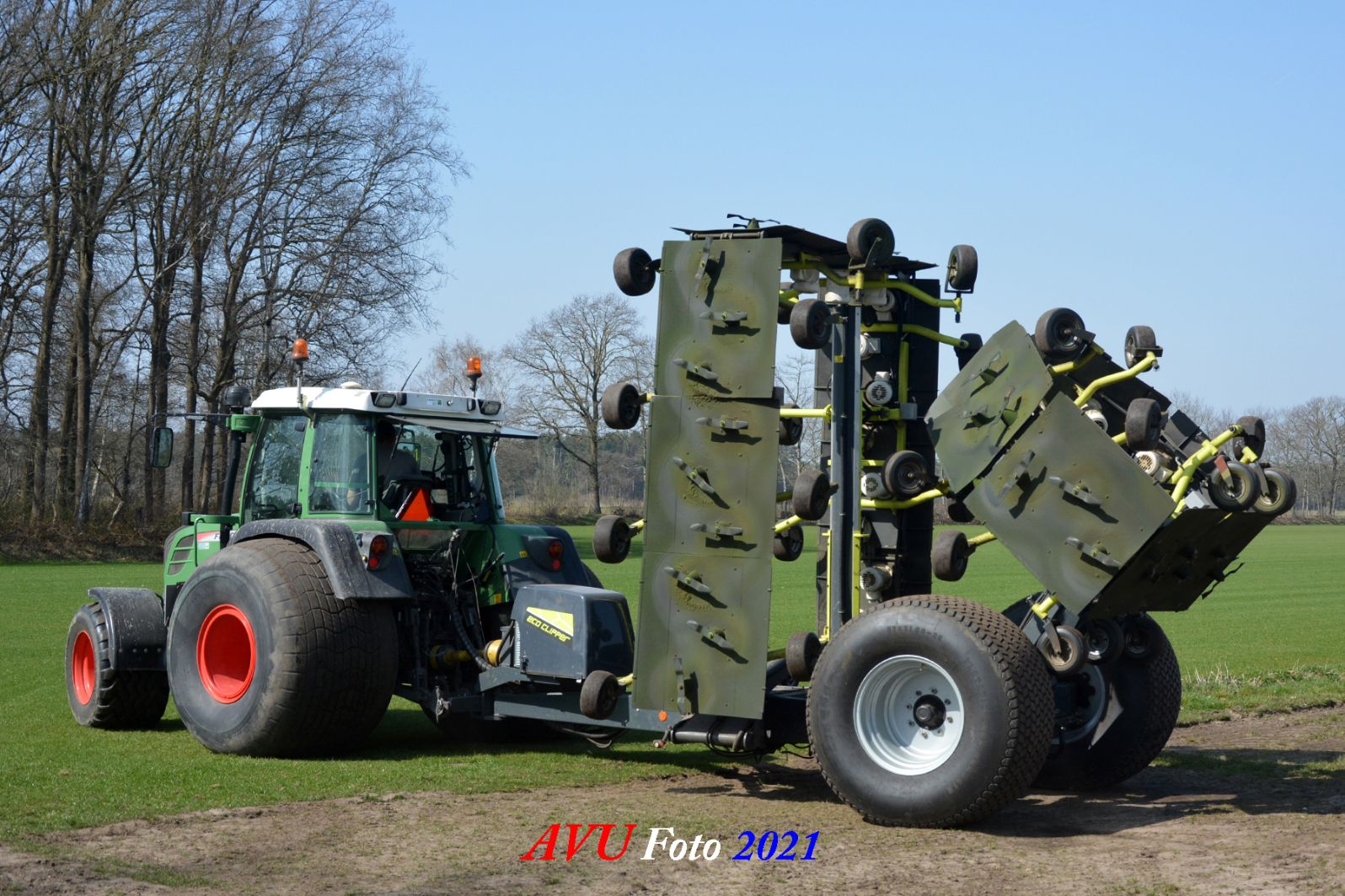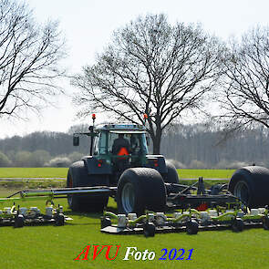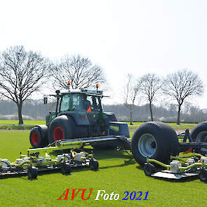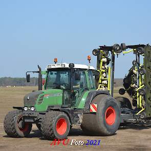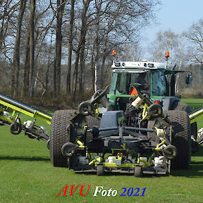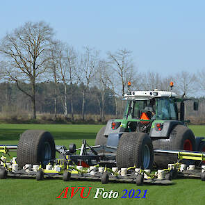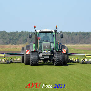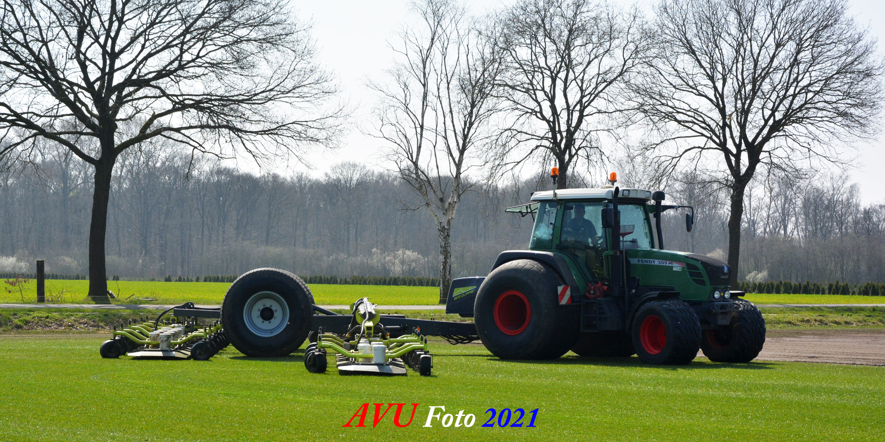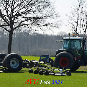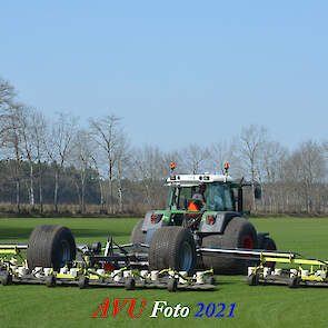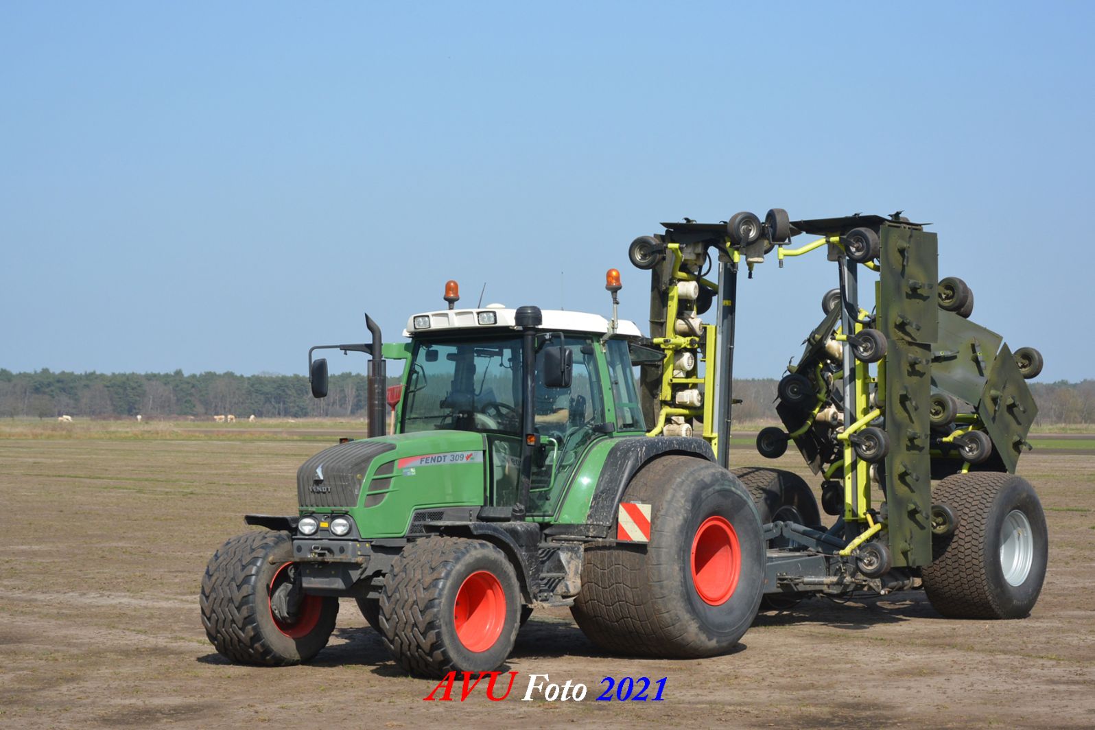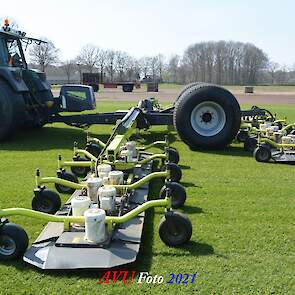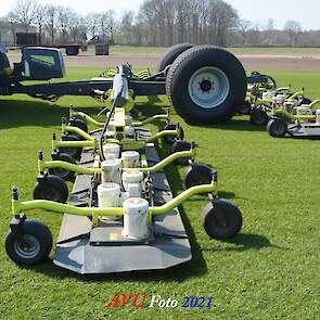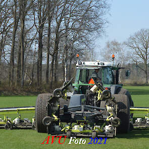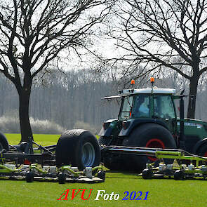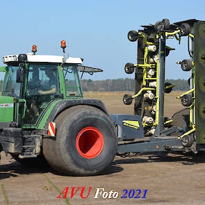 Afhankelijk van omstandigheden en vermogen is dat mogelijk met de Leijenaar TM 14 Eco Clipper met 14 onafhankelijke maaidekken met elk drie messen en een werkbreedte van 14,11 meter. Een getrokken opklapbare machine met een eigen gewicht van 3450 kg en een opgebouwde generator voor het elektrisch aandrijven van alle maaimessen. Hier aangedreven door de Fendt 309 Vario op de brede bandjes.