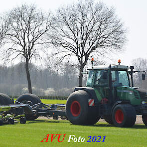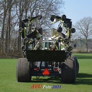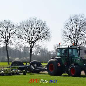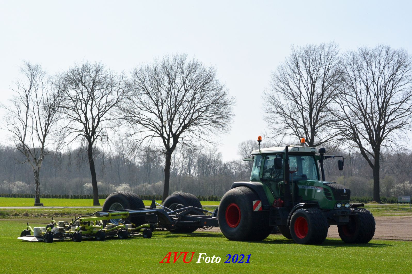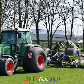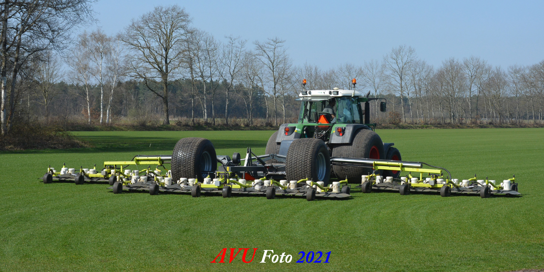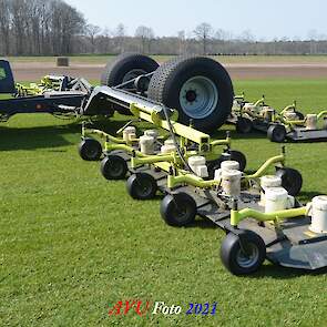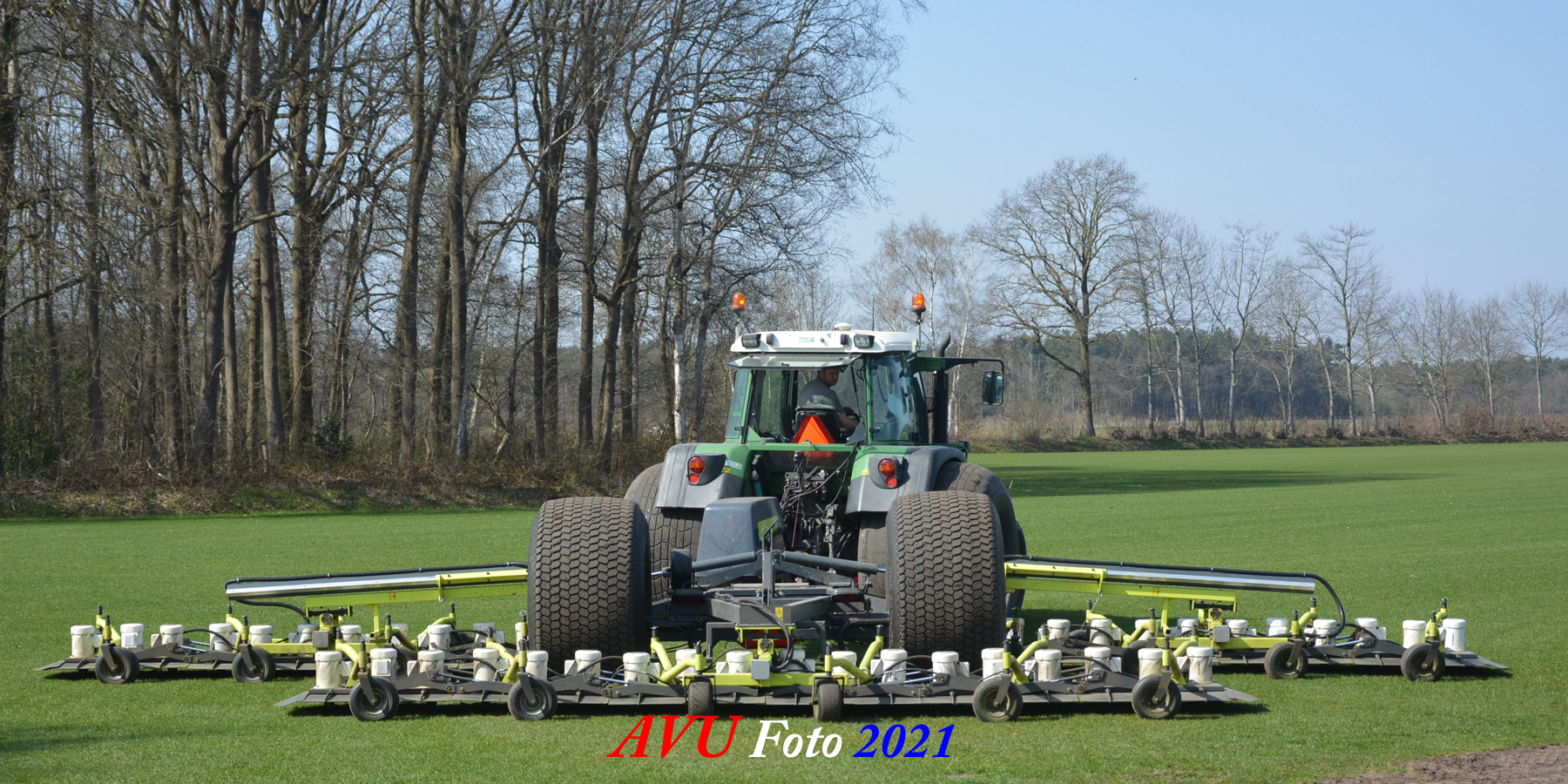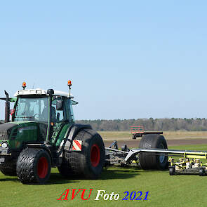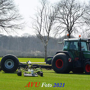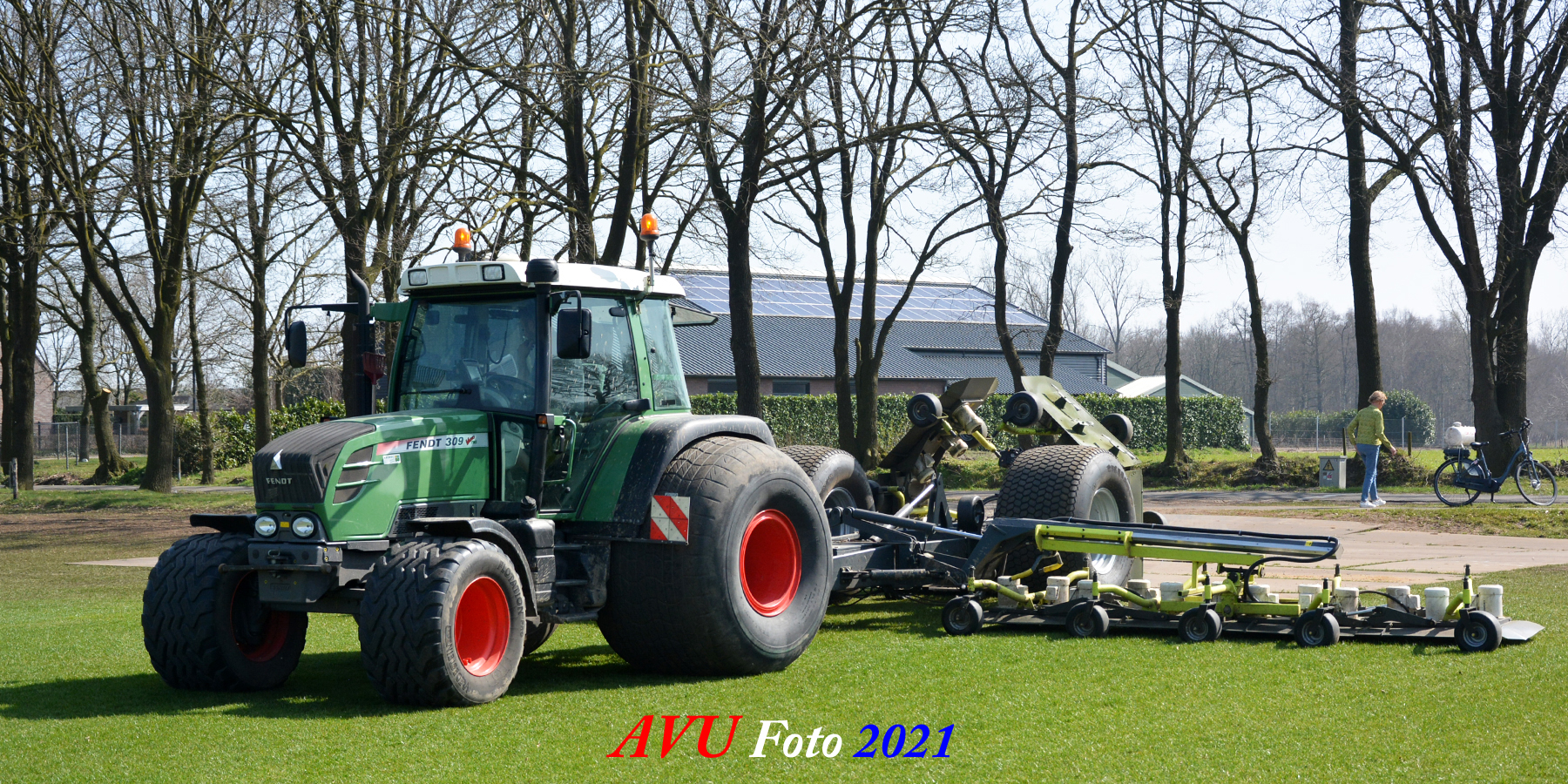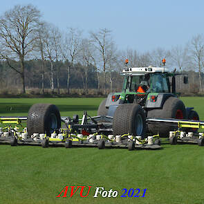 Afhankelijk van omstandigheden en vermogen is dat mogelijk met de Leijenaar TM 14 Eco Clipper met 14 onafhankelijke maaidekken met elk drie messen en een werkbreedte van 14,11 meter. Een getrokken opklapbare machine met een eigen gewicht van 3450 kg en een opgebouwde generator voor het elektrisch aandrijven van alle maaimessen. Hier aangedreven door de Fendt 309 Vario op de brede bandjes.
