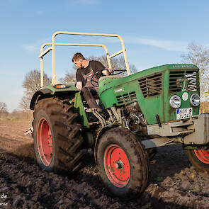 Met drieschaar ploeg achter de Deutz, een plaatje om te zien in Ratzel, Duitsland, aan de grens bij Hardenberg. De tractorbestuurder Jens Völkering heeft een klein bedrijf voor oude Deutz en Fahr onderdelen. Hij is gespecialiseerd in reserveonderdelen voor Fahr-maaidorsers.
