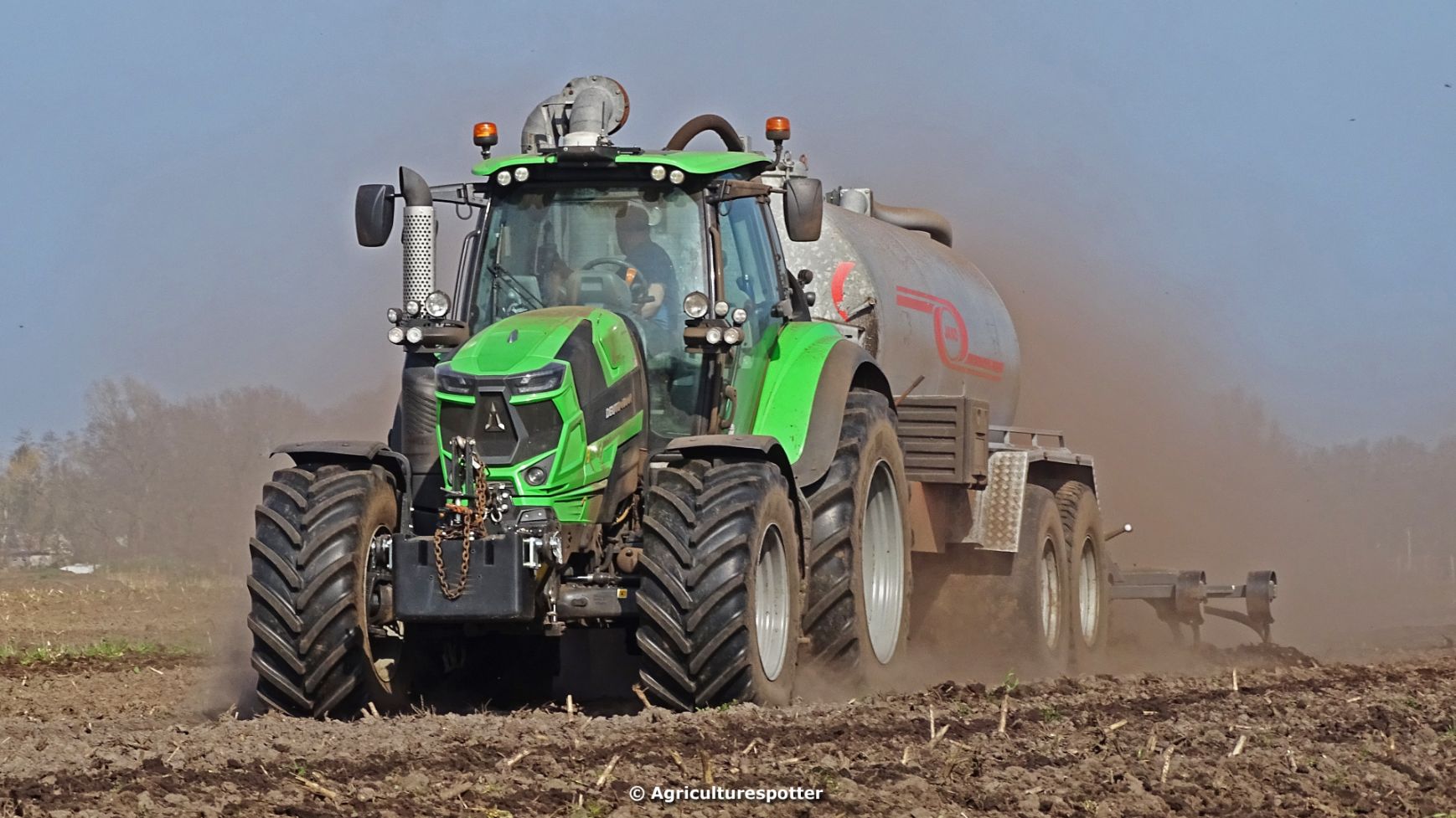 Deutz-Fahr Agrotron 6215 TTV en een Jako-mesttank met Kaweco-bemester