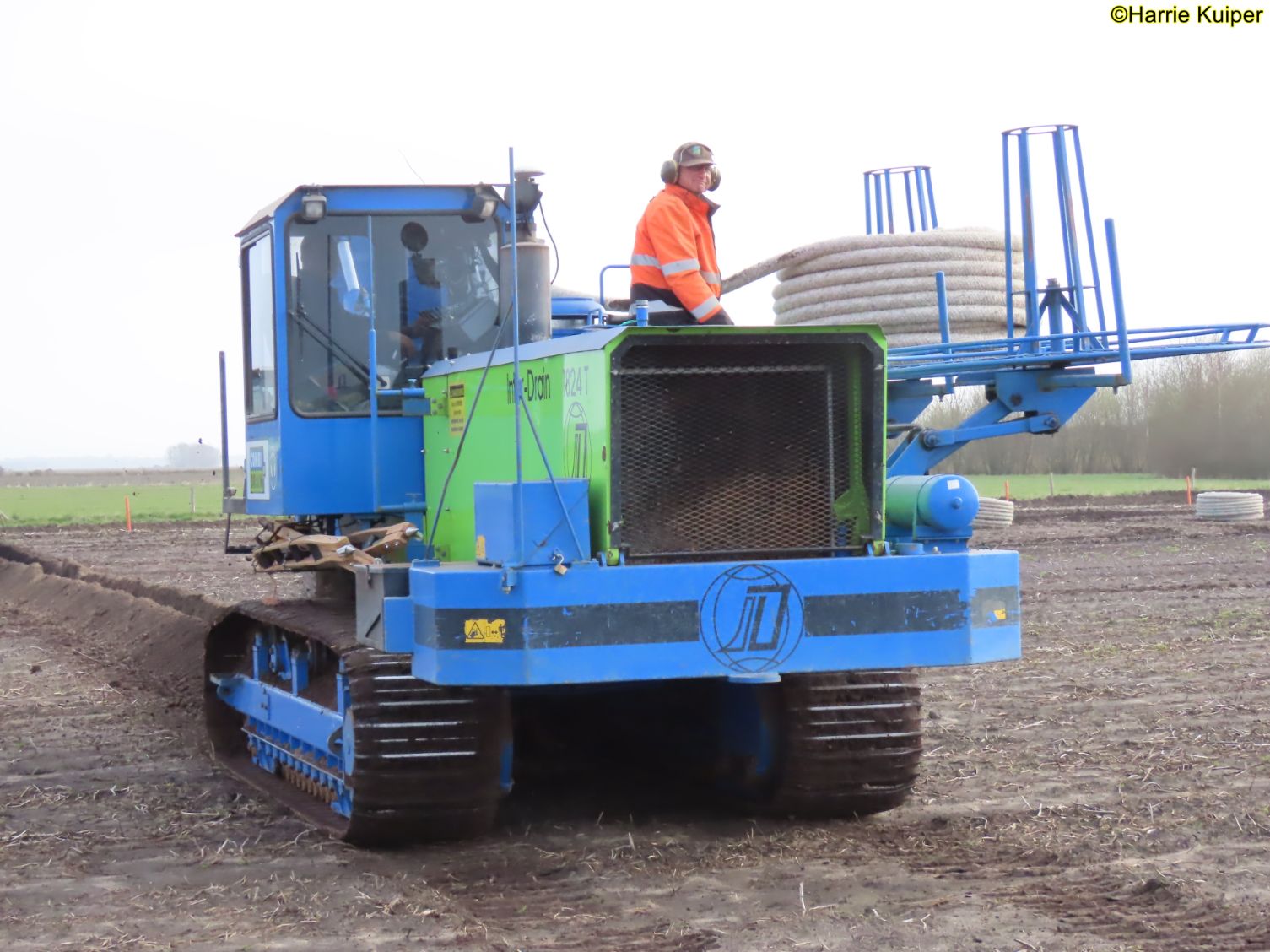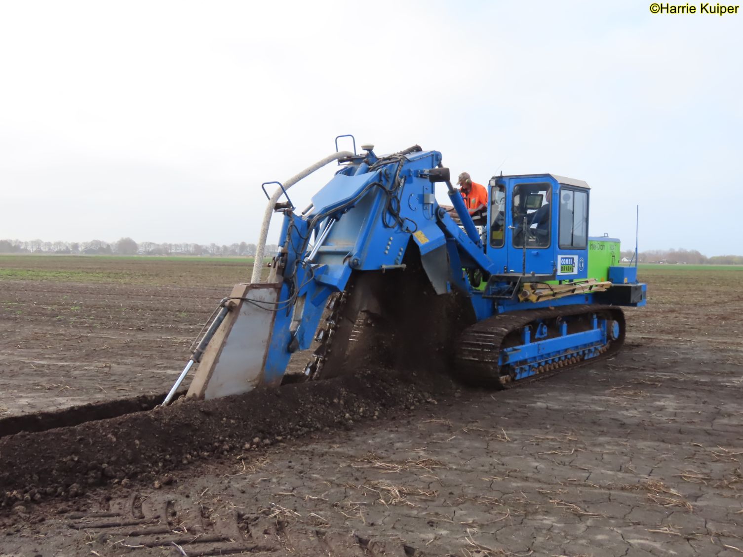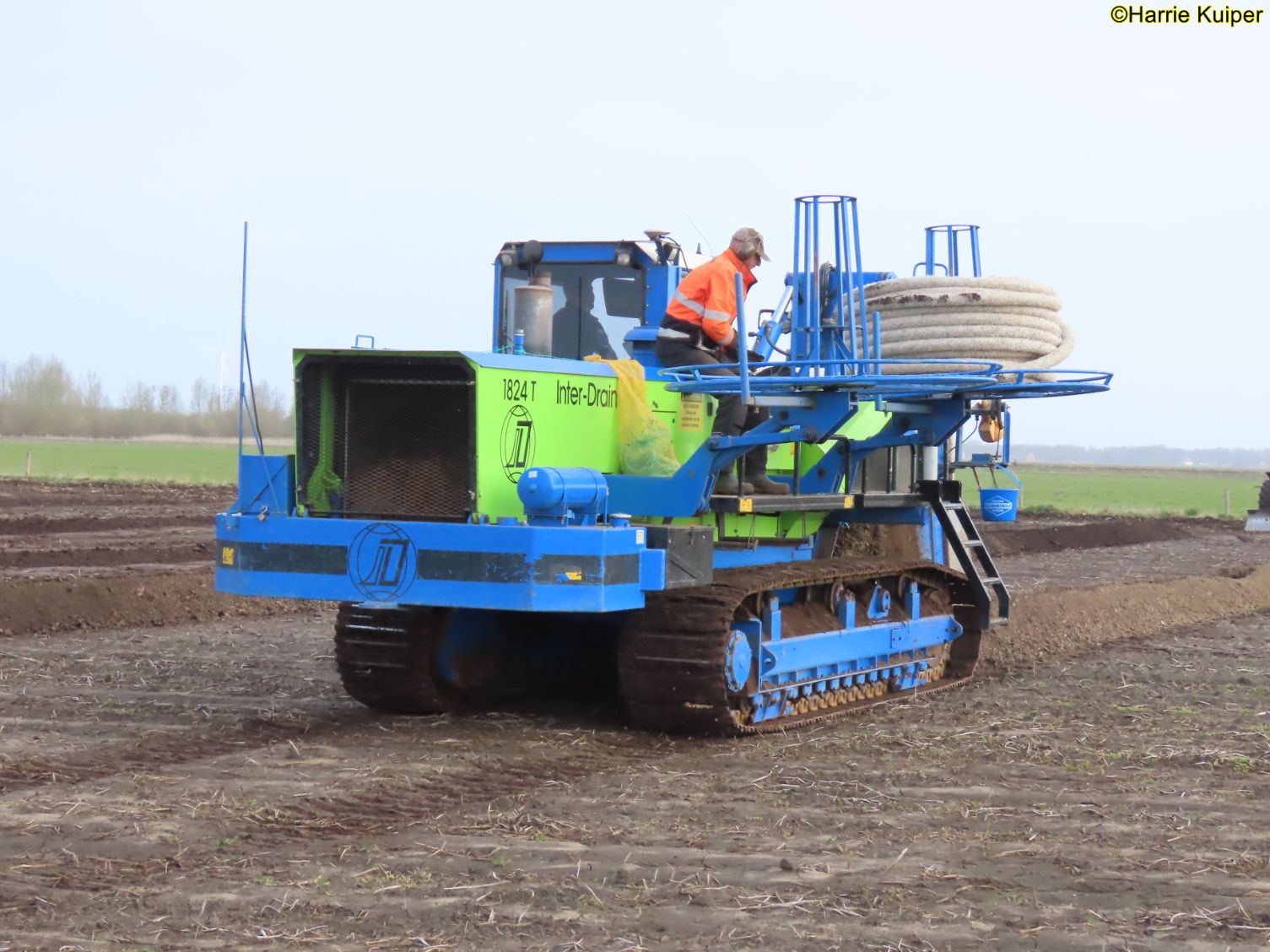 Combi Drain (voorheen drainage Hamminga BV uit Uithuizen (GR)) is hier bezig een drainage aan te leggen in Nieuw-Weerdinge (DR) met een Interdrain 1824 T. De sleuven werden weer gedicht met een Claas Arion 630 C.