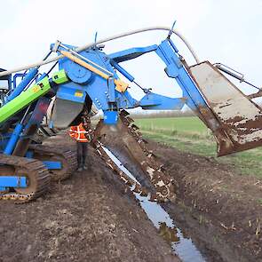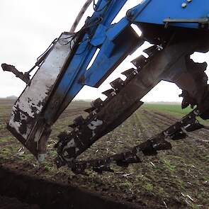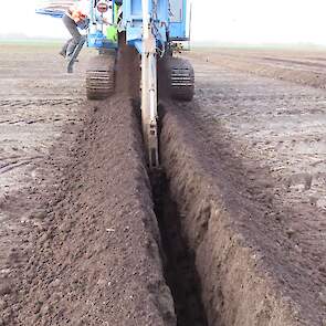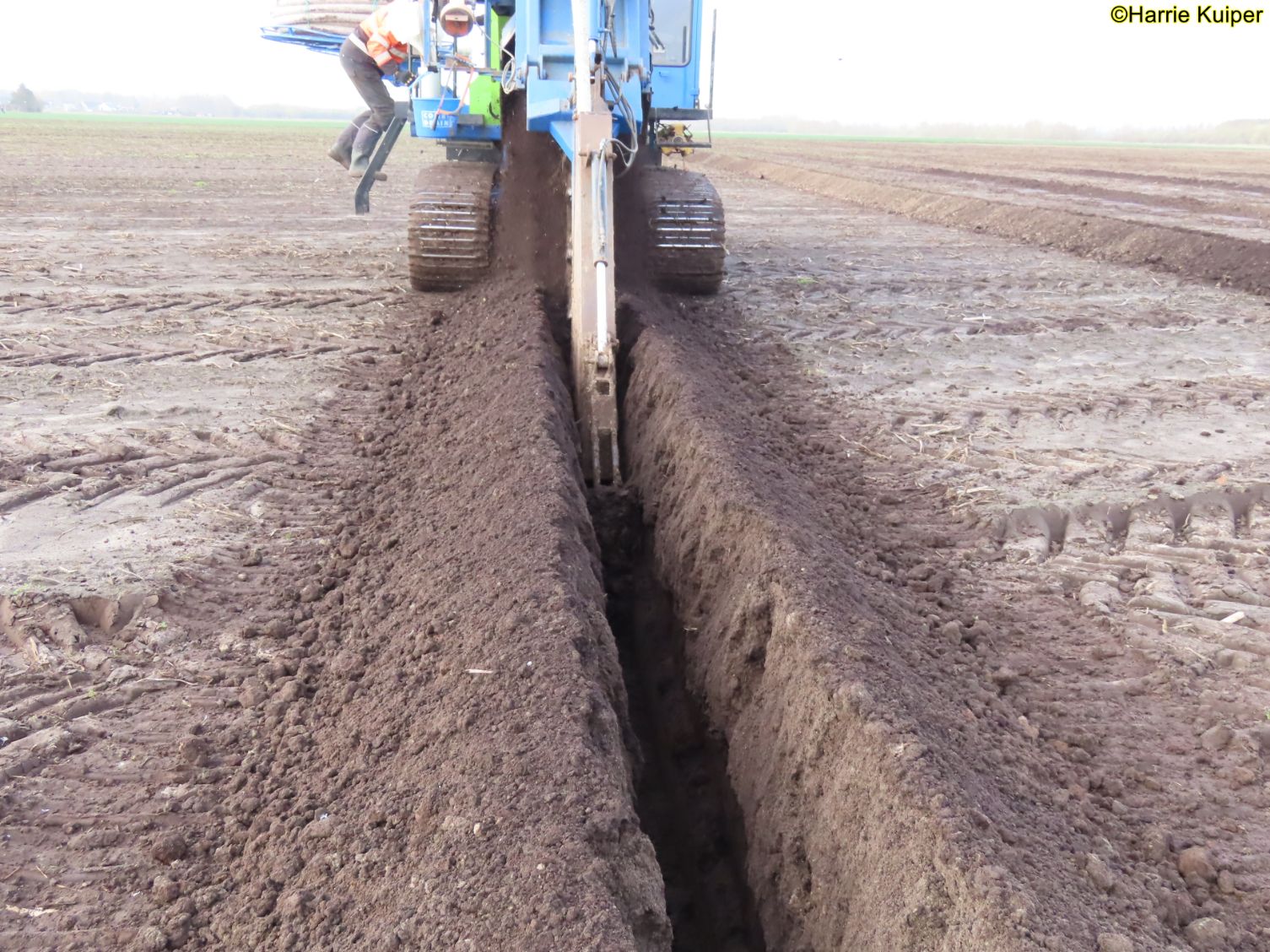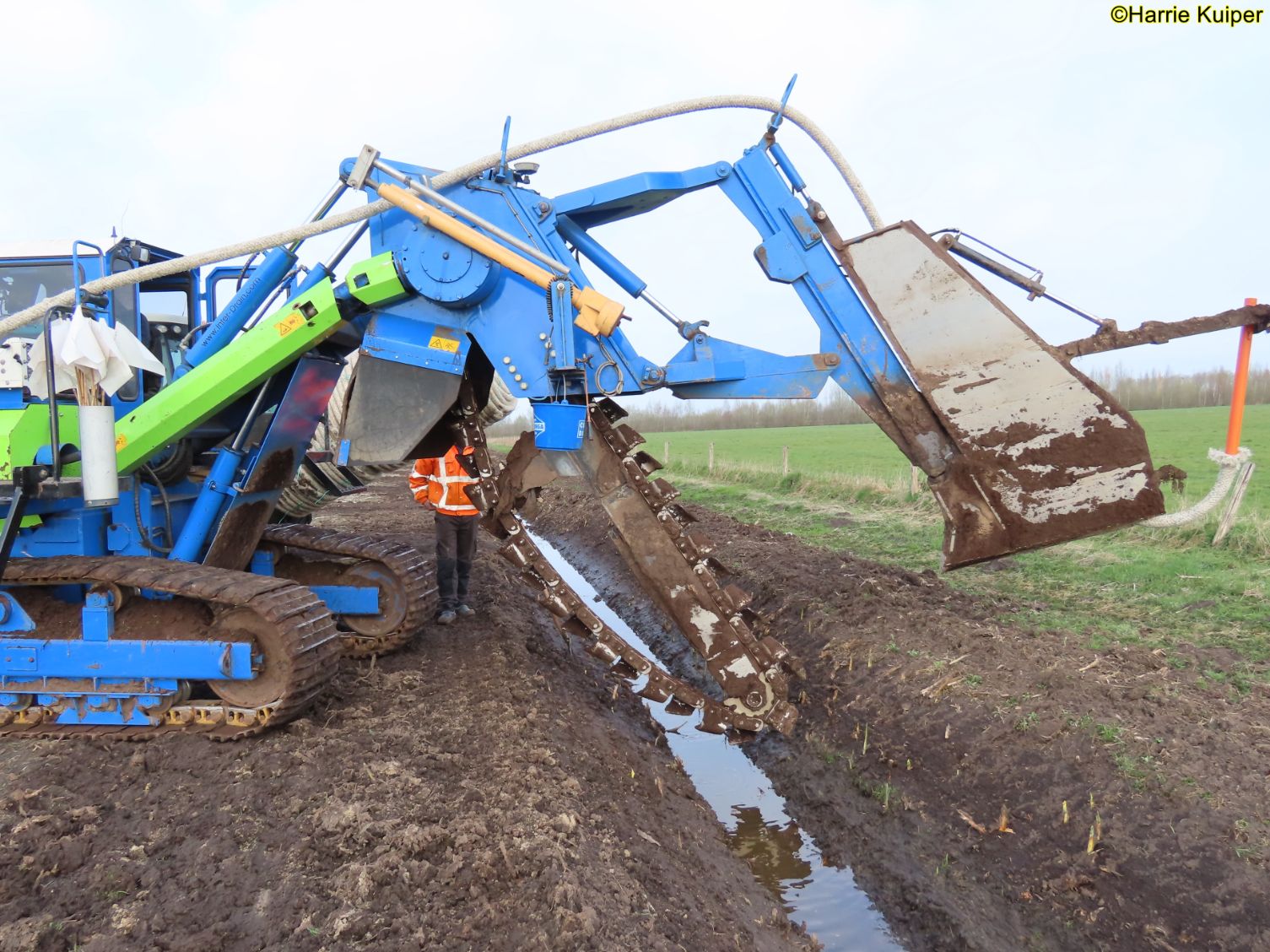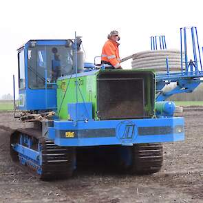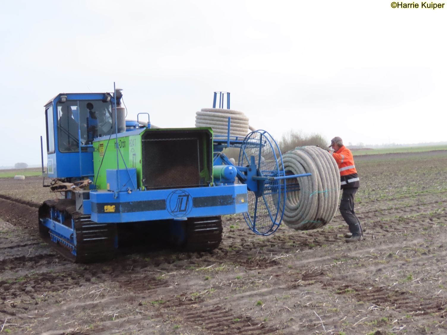 Combi Drain (voorheen drainage Hamminga BV uit Uithuizen (GR)) is hier bezig een drainage aan te leggen in Nieuw-Weerdinge (DR) met een Interdrain 1824 T. De sleuven werden weer gedicht met een Claas Arion 630 C.