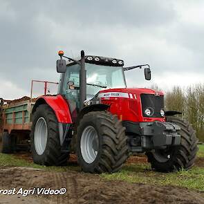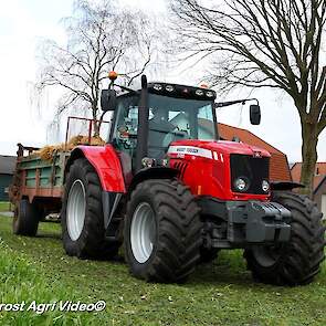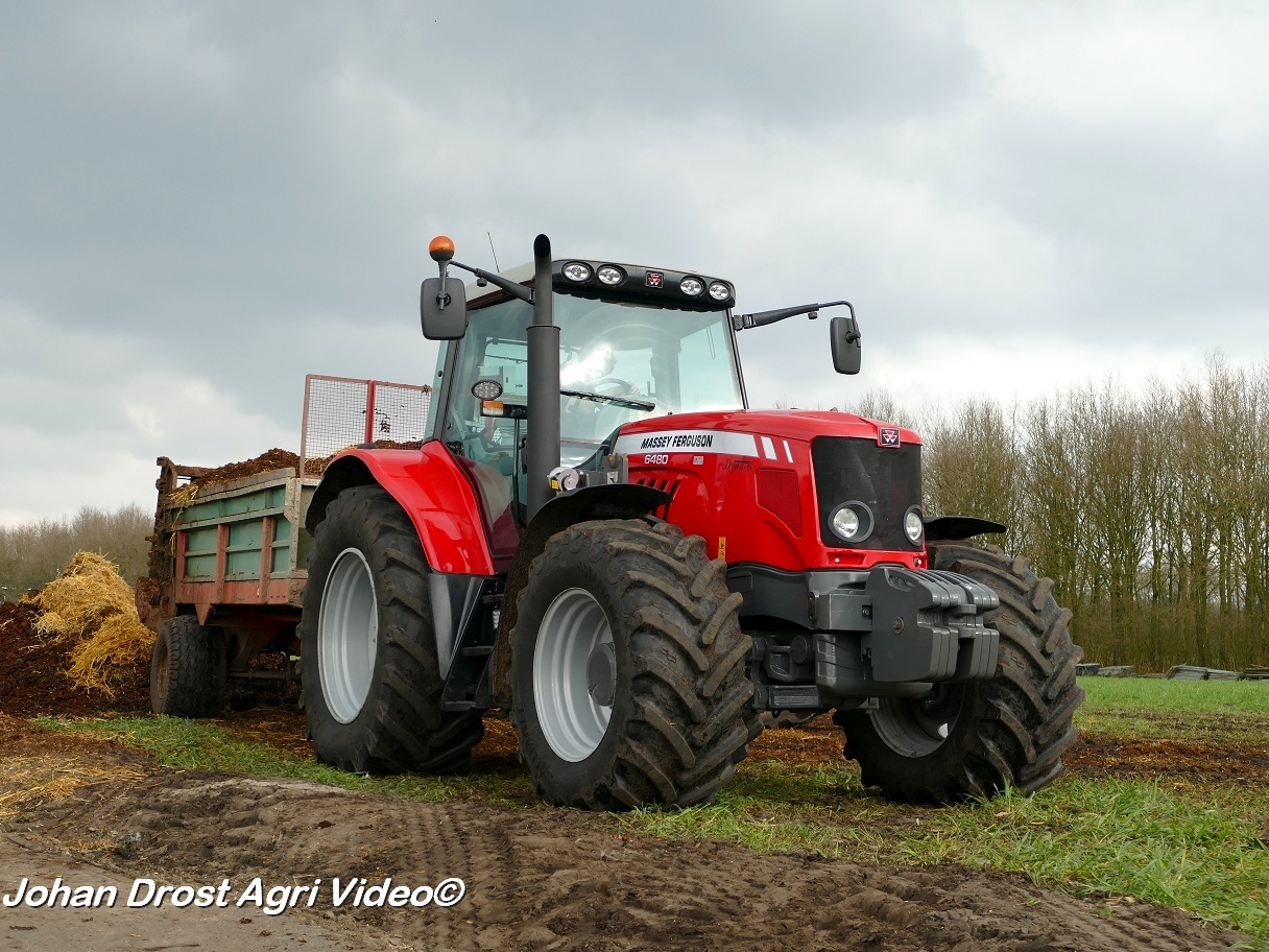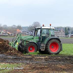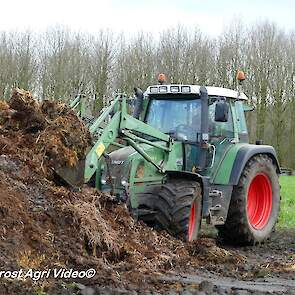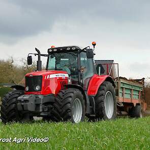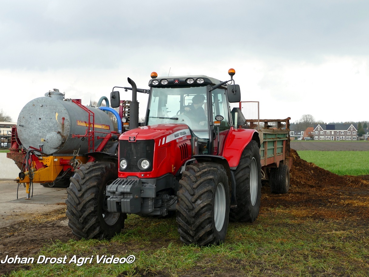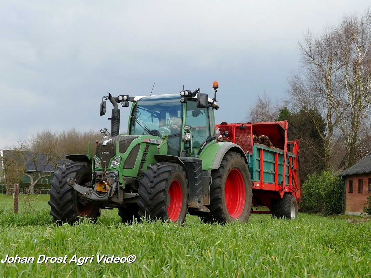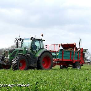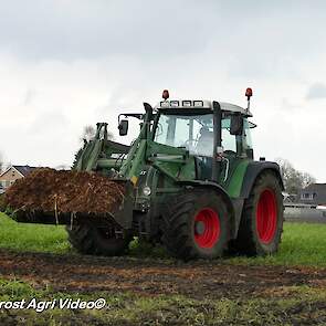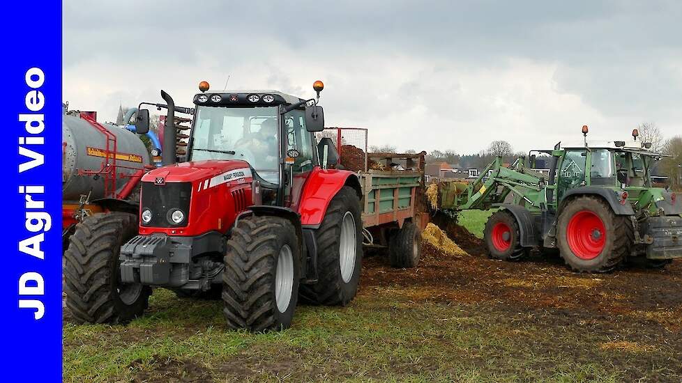 Veehouder Henrik de Weerd uit Elspeet (GD) aan het vaste mest laden en strooien met een Massey Ferguson 6480 Dyna-6 en Fendt 714 Vario met Kemper-meststrooier. Voor het laden wordt een Fendt Farmer 410 Vario gebruikt.