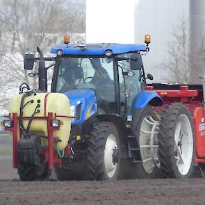 Met New Holland T6010, Grimme GL 34KG, Hardi, Zibo en SBG/ Raven (gps) aan het poten. Heel wat machinefabrikanten zijn nodig om de aardappels weer in de grond te krijgen. En o ja, ook nog een chauffeur. Poten door Doornbos Agrarisch Loonwerk.