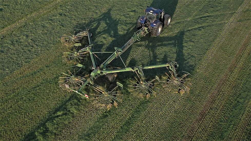 De Krone Swadro 2000 is de gigant onder de middenaflegharken; met zes harkelementen en een werkbreedte van 19,00 m halen ze tot ca. 20 ha per uur. Deze hark is niet alleen overtuigend door zijn slagvaardigheid, maar is ook door zijn rotoren die voor sneller en achter langzamer draaien en door zijn gelijkmatige en luchtige zwadafleg, ideaal voor een goede benutting van oogstmachines met een hoge capaciteit. In vergelijking met de Swadro 1400 heeft de Swadro 2000 ca. 30% minder zwadlengte per hectare. Hierdoor wordt het rijden over het land gereduceerd en wordt de capaciteit van de oogstmachine die het gemaakte zwad op moet ruimen beter benut.