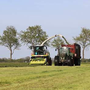 Tussen de buien door is men volop bezig in de grasoogst, zo ook loonbedrijf Kuper uit Klazienaveen (DR).