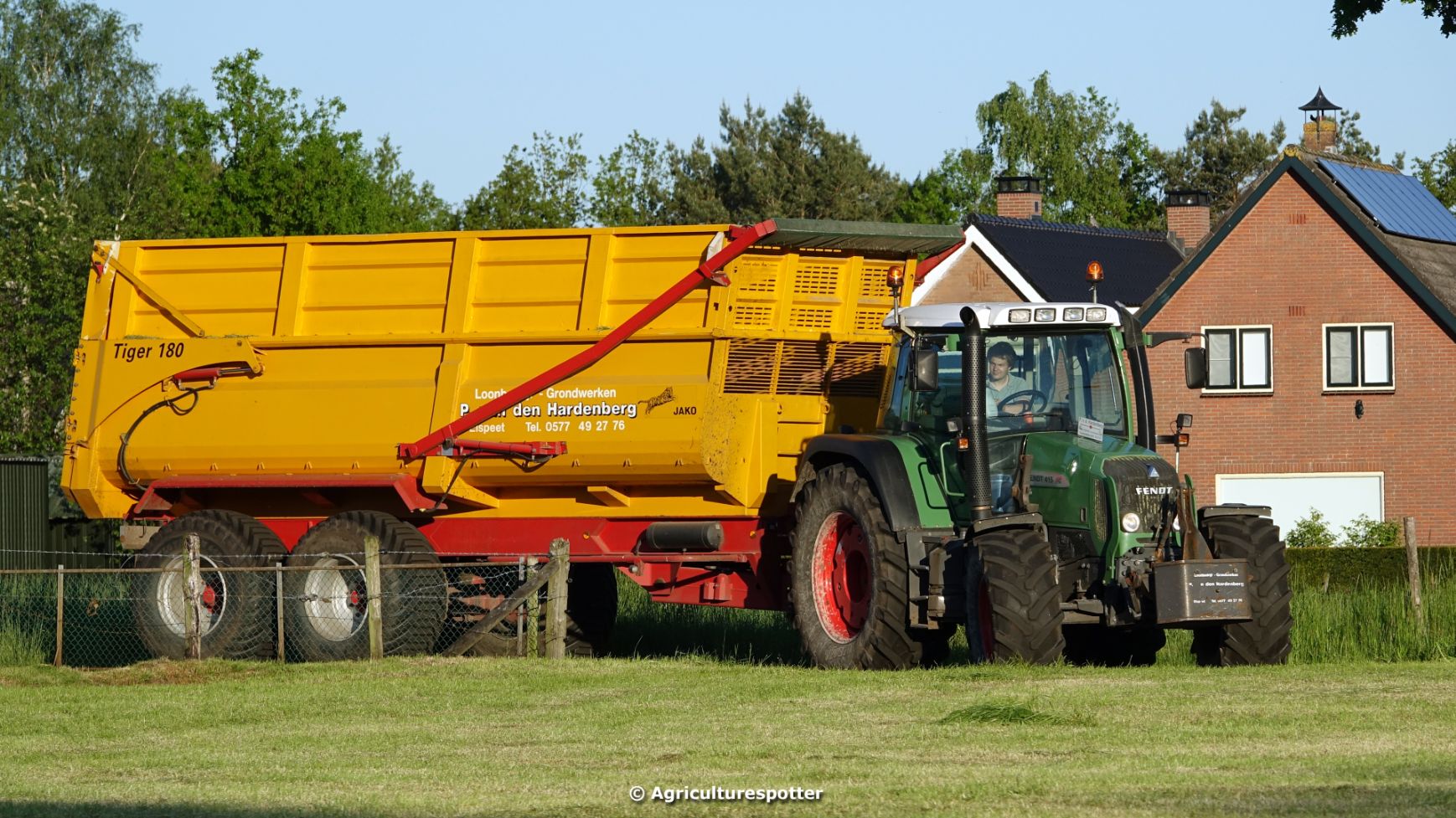 Gras hakselen en inkuilen met een John Deere 6850 van Loonbedrijf P. van den Hardenberg. Het transport werd gedaan met Fendt's en Jako Tiger 180-kippers. De kuil werd aangereden met een Volvo L60F.