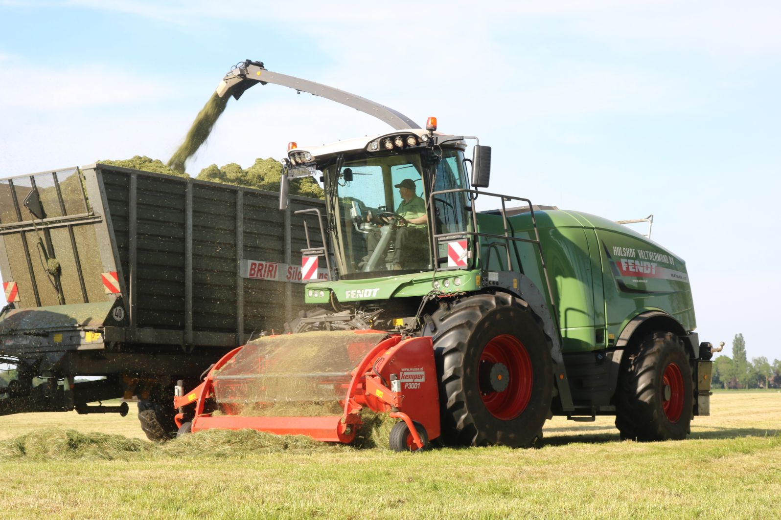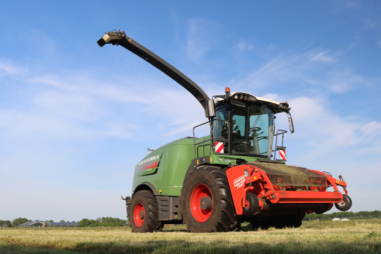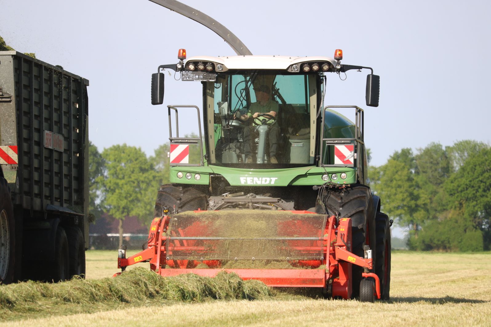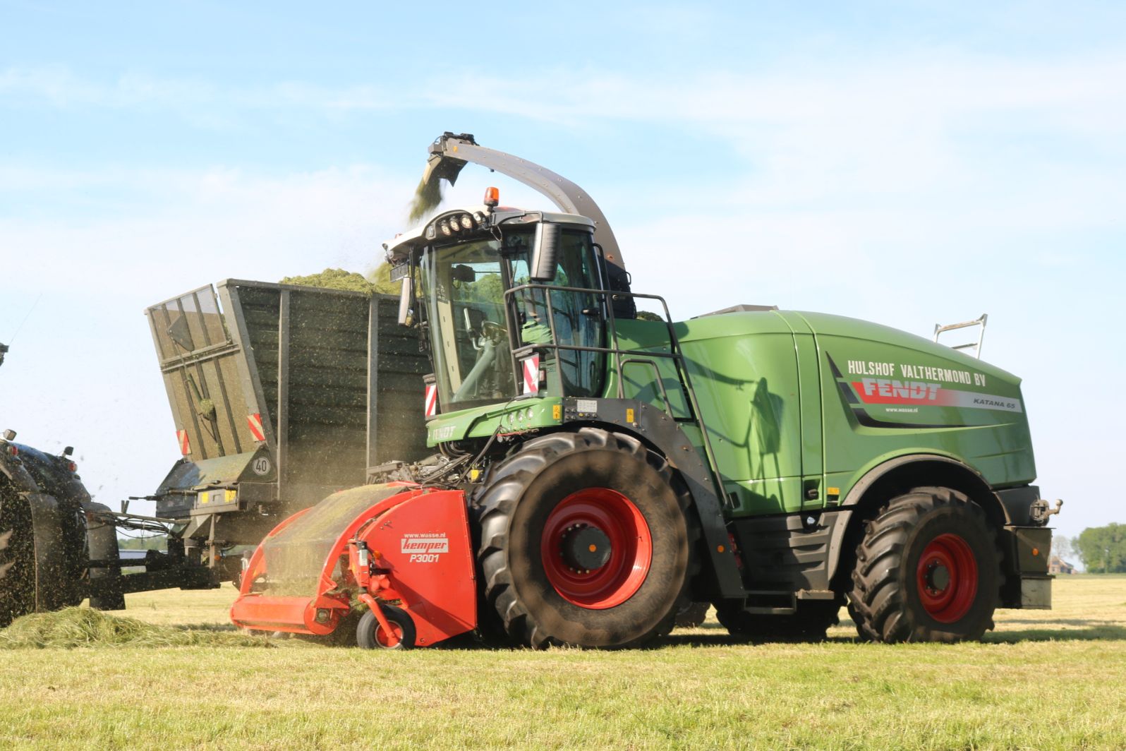 Loonbedrijf Hulshof uit Valthermond (DR) met Fendt aan het gras hakselen.