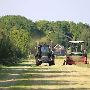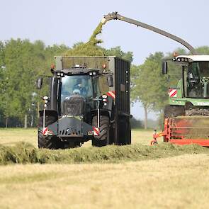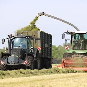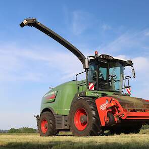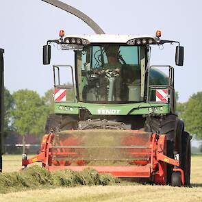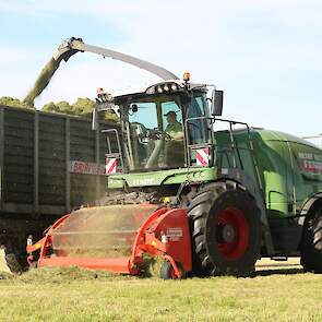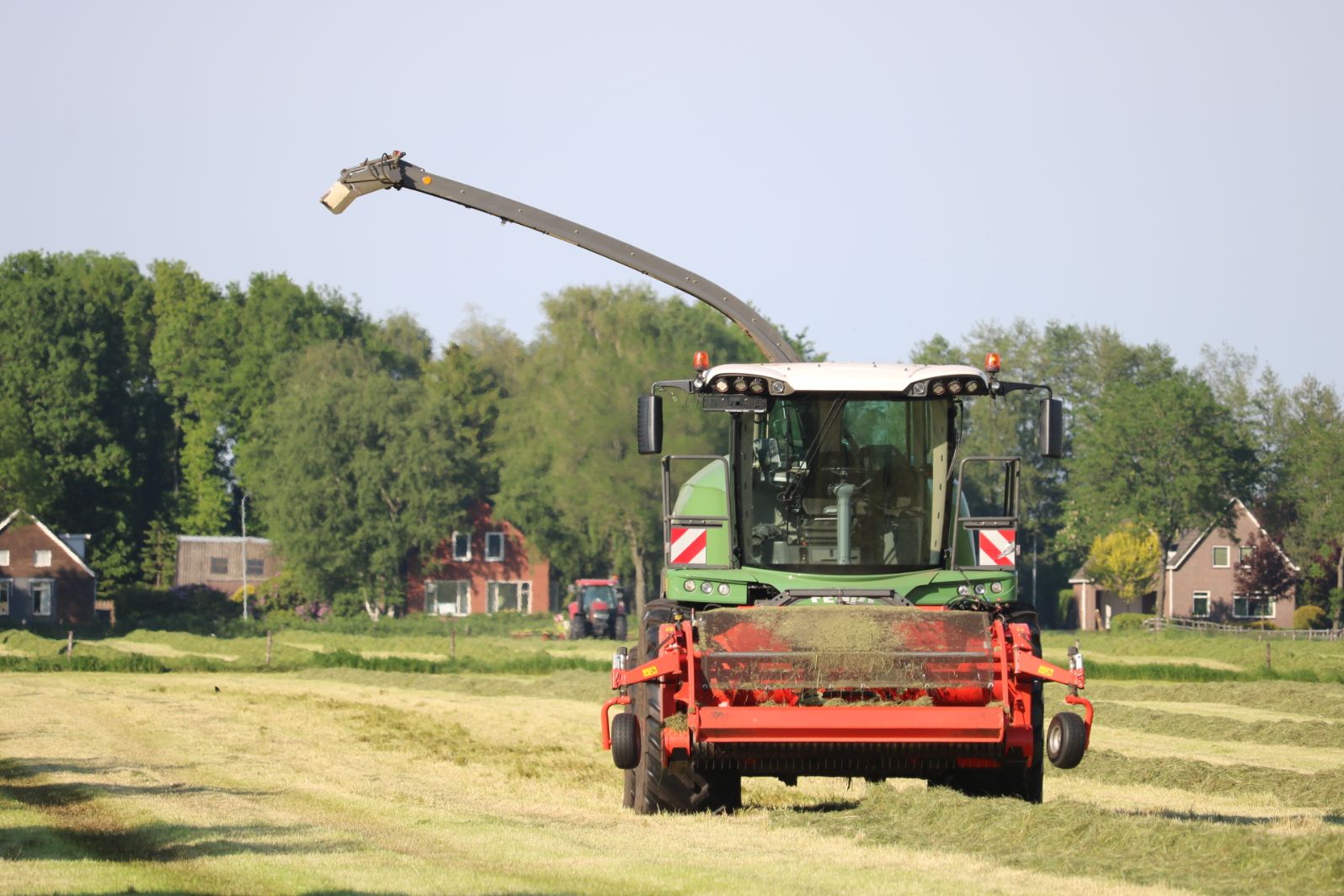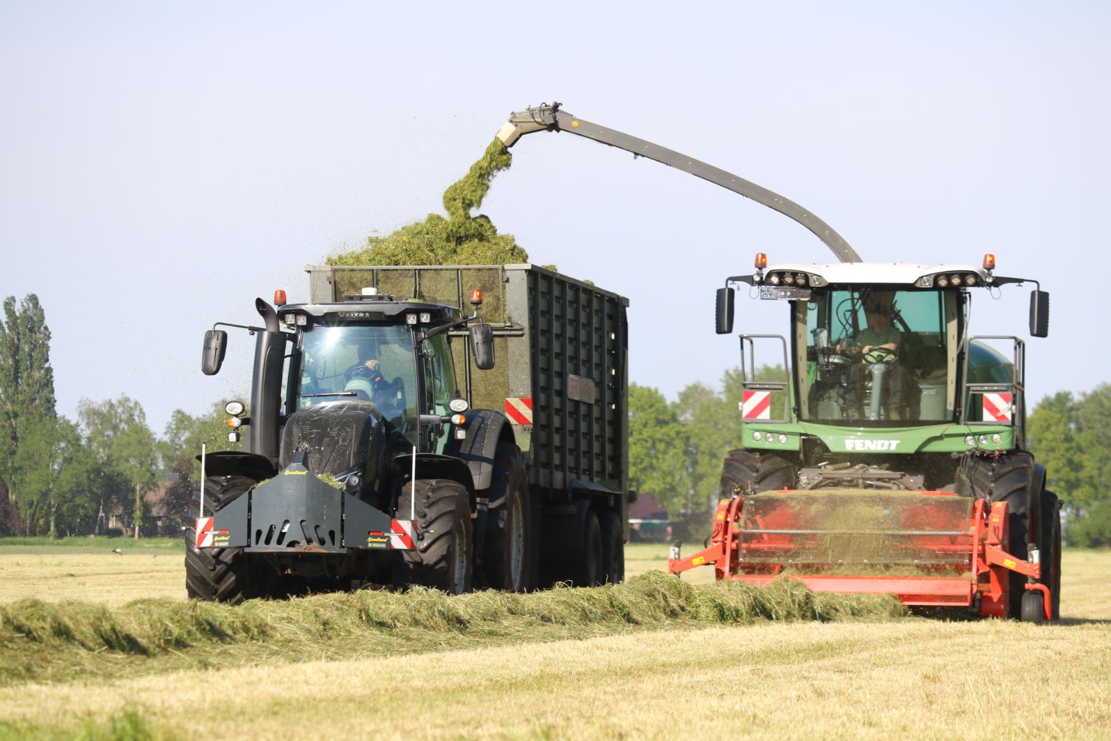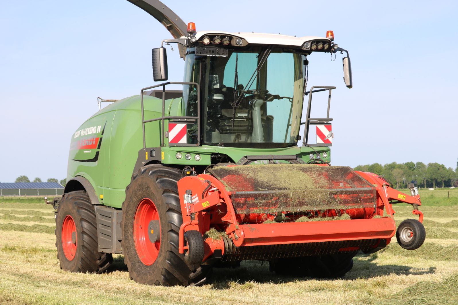 Loonbedrijf Hulshof uit Valthermond (DR) met Fendt aan het gras hakselen.