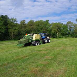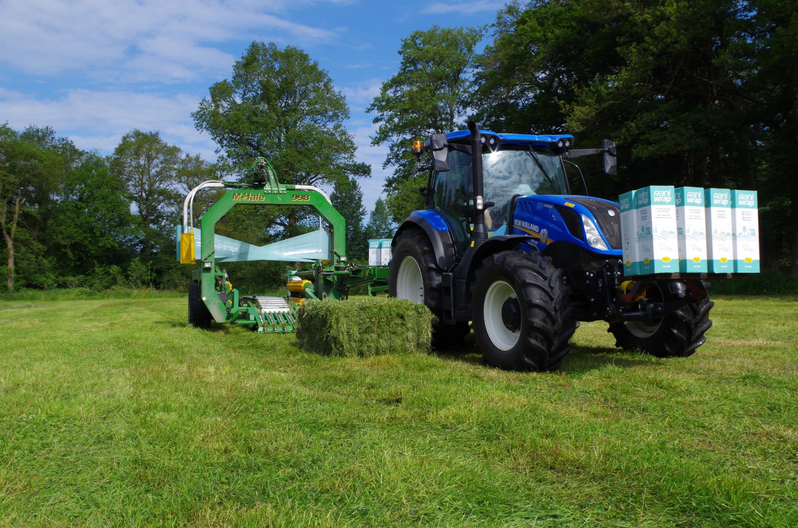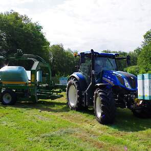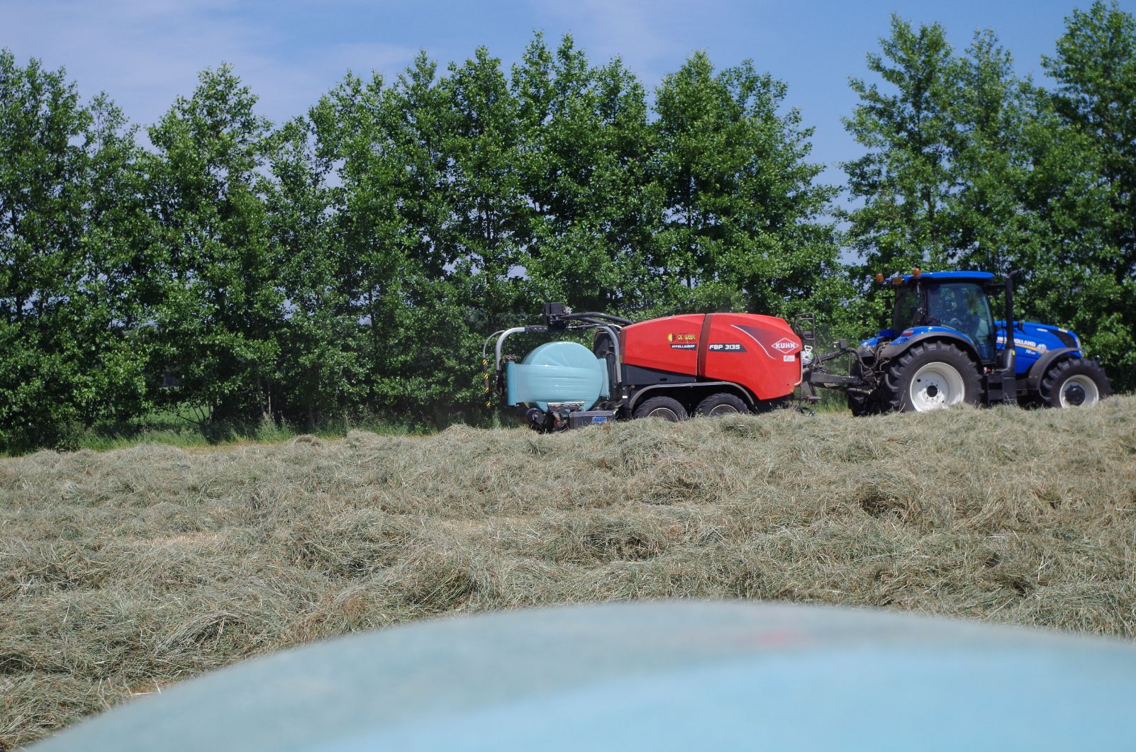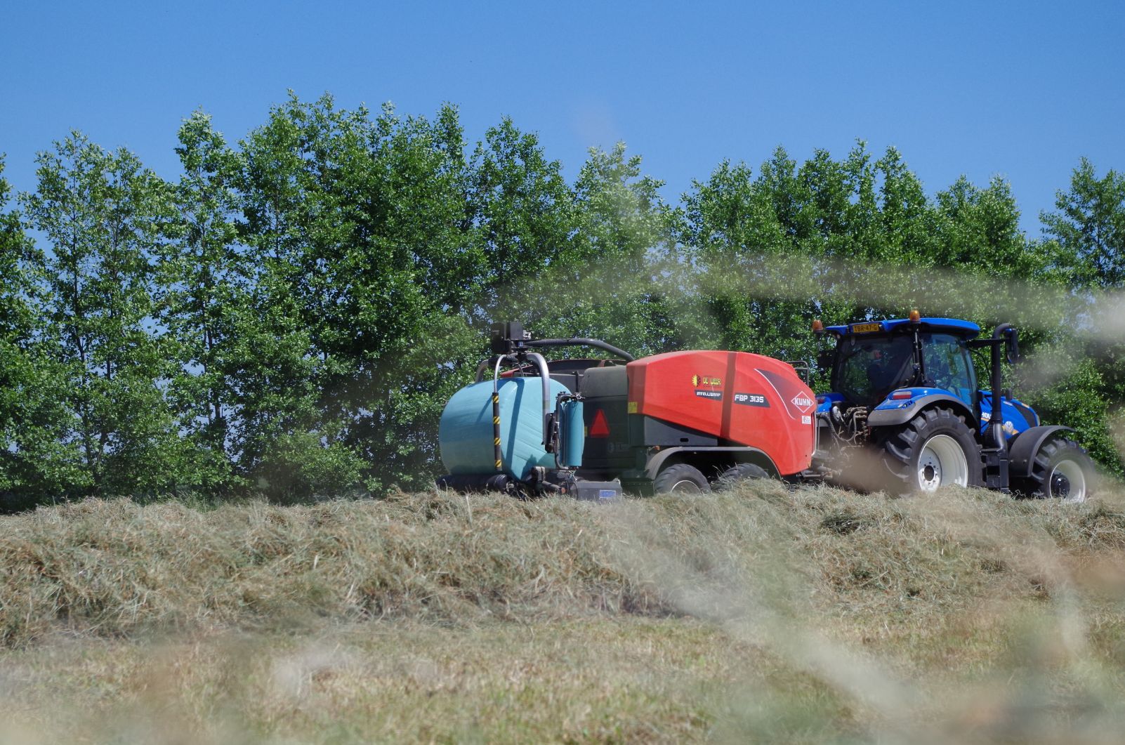 De afgelopen weken is het mooi weer geweest om onder andere te persen en te wikkelen. In beeld onze Kuhn FBP 3135-rondebalenpers met 3D-wikkelaar getrokken door een New Holland T6 165. De Krone Big Pack 1270 XC-vierkantebalenpers wordt getrokken door een New Holland T7030. De McHale998-balenwikkelaar wordt getrokken door een New Holland T6 165. Zowel de ronde als vierkante balen worden ingepakt met RaniWrap. We kunnen terugzien op een aantal geslaagde weken waarin een goede oogst is gedaan. Op naar de 2e en 3e snede.