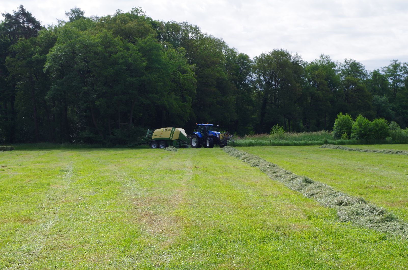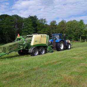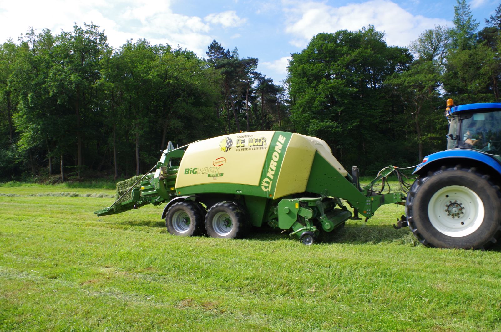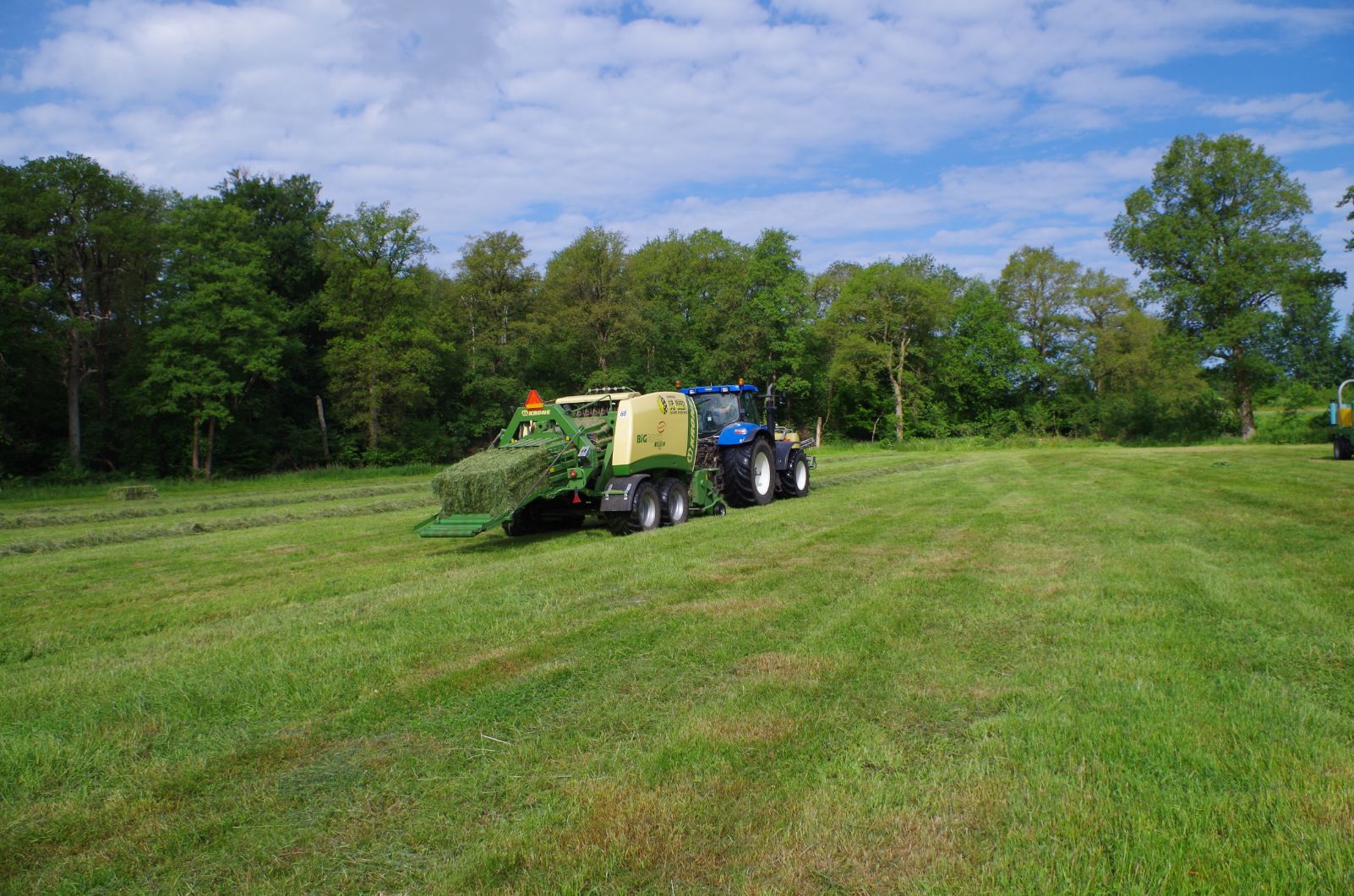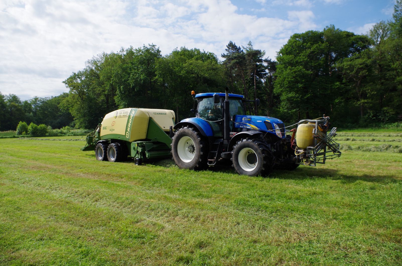 De afgelopen weken is het mooi weer geweest om onder andere te persen en te wikkelen. In beeld onze Kuhn FBP 3135-rondebalenpers met 3D-wikkelaar getrokken door een New Holland T6 165. De Krone Big Pack 1270 XC-vierkantebalenpers wordt getrokken door een New Holland T7030. De McHale998-balenwikkelaar wordt getrokken door een New Holland T6 165. Zowel de ronde als vierkante balen worden ingepakt met RaniWrap. We kunnen terugzien op een aantal geslaagde weken waarin een goede oogst is gedaan. Op naar de 2e en 3e snede.