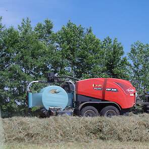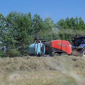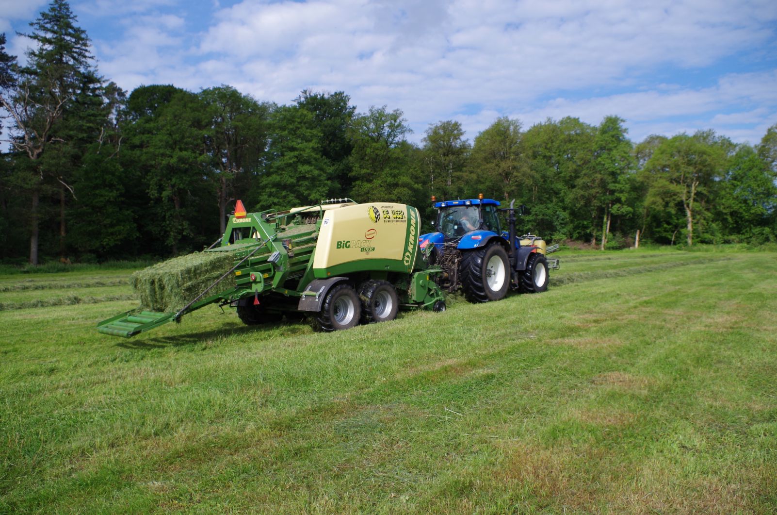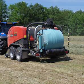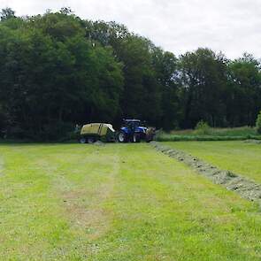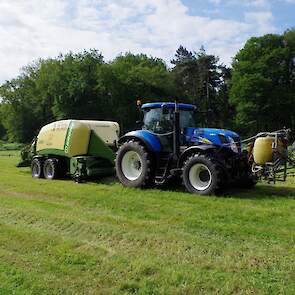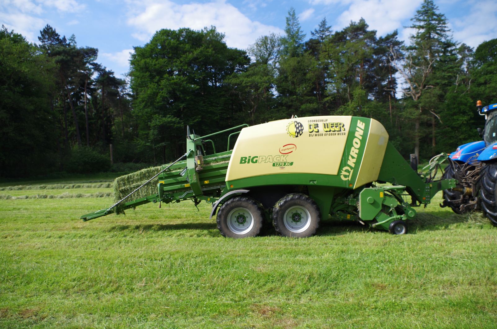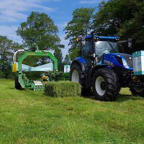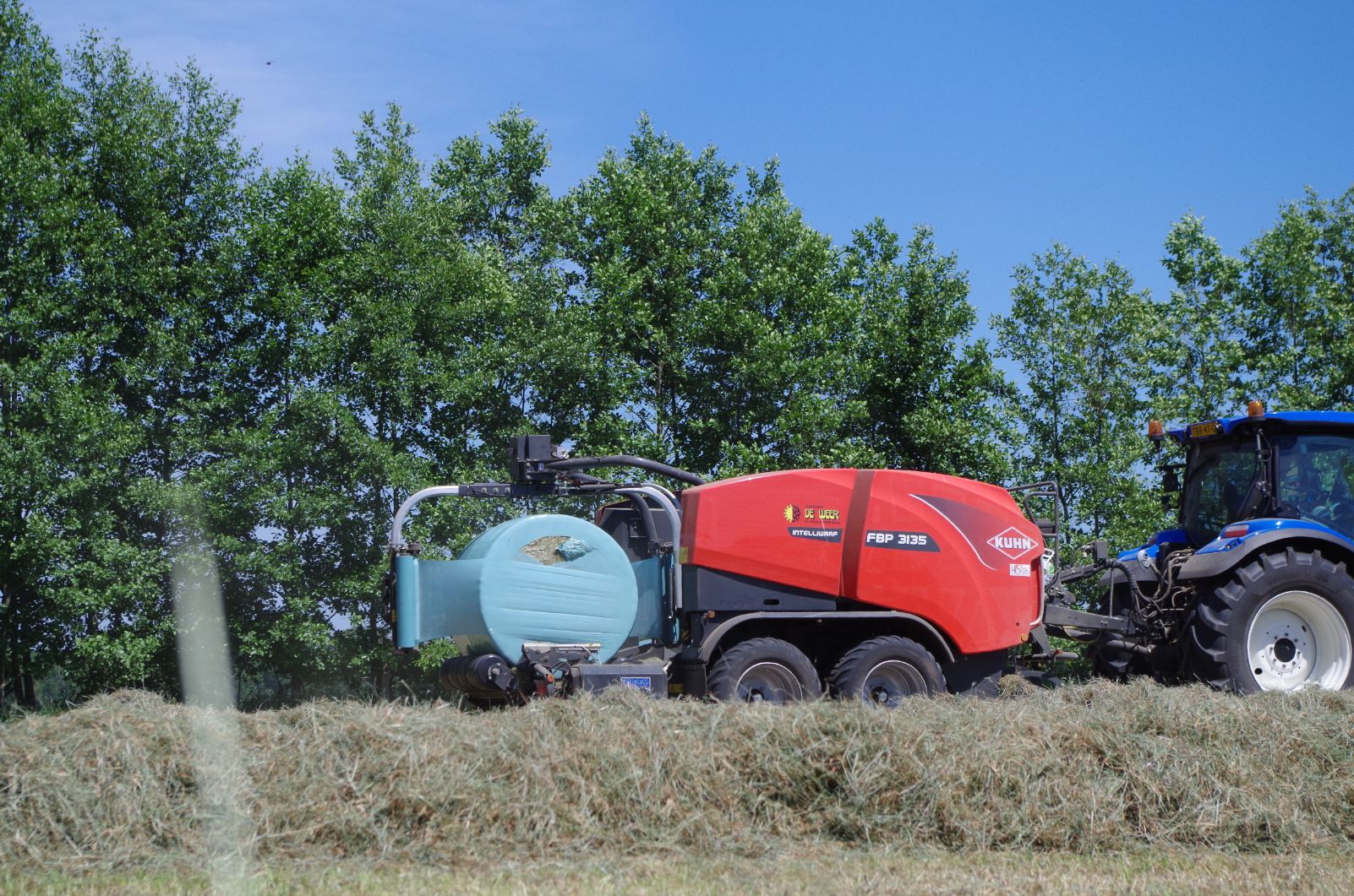 De afgelopen weken is het mooi weer geweest om onder andere te persen en te wikkelen. In beeld onze Kuhn FBP 3135-rondebalenpers met 3D-wikkelaar getrokken door een New Holland T6 165. De Krone Big Pack 1270 XC-vierkantebalenpers wordt getrokken door een New Holland T7030. De McHale998-balenwikkelaar wordt getrokken door een New Holland T6 165. Zowel de ronde als vierkante balen worden ingepakt met RaniWrap. We kunnen terugzien op een aantal geslaagde weken waarin een goede oogst is gedaan. Op naar de 2e en 3e snede.