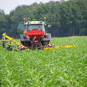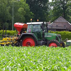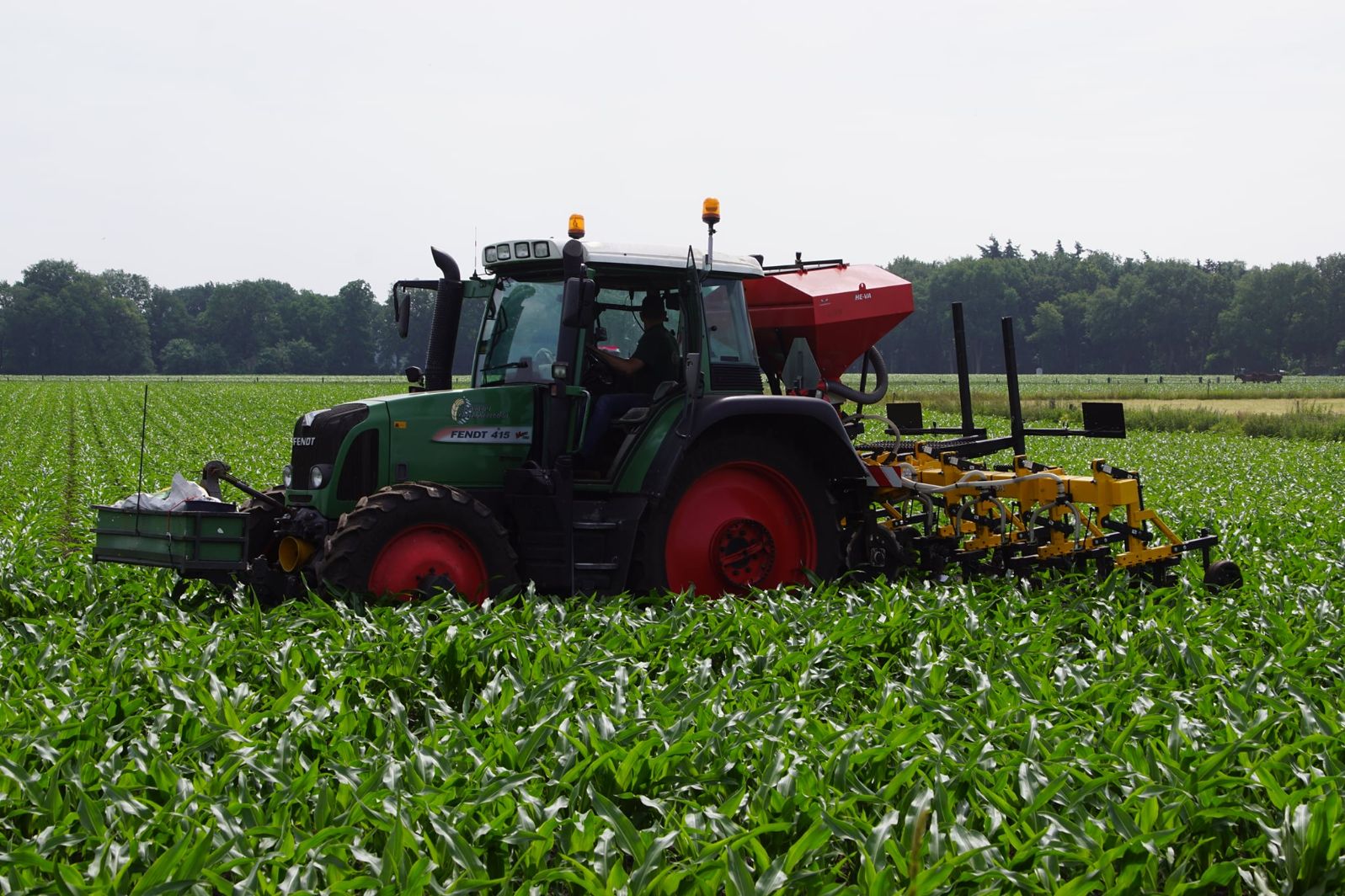 Loonbedrijf Schepers met hun Fendt 415 in de mais.