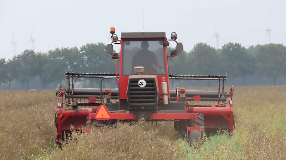 Onlangs werd het koolzaad in zwad gemaaid tussen Roswinkel en Ter Apel. Dit werd gedaan met een Vicon WR 322 SP. Als het koolzaad droog is wordt het gecombined.