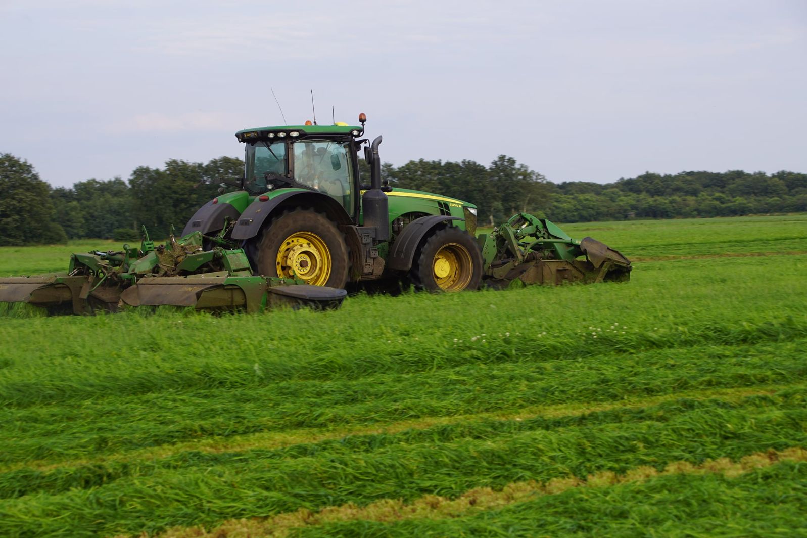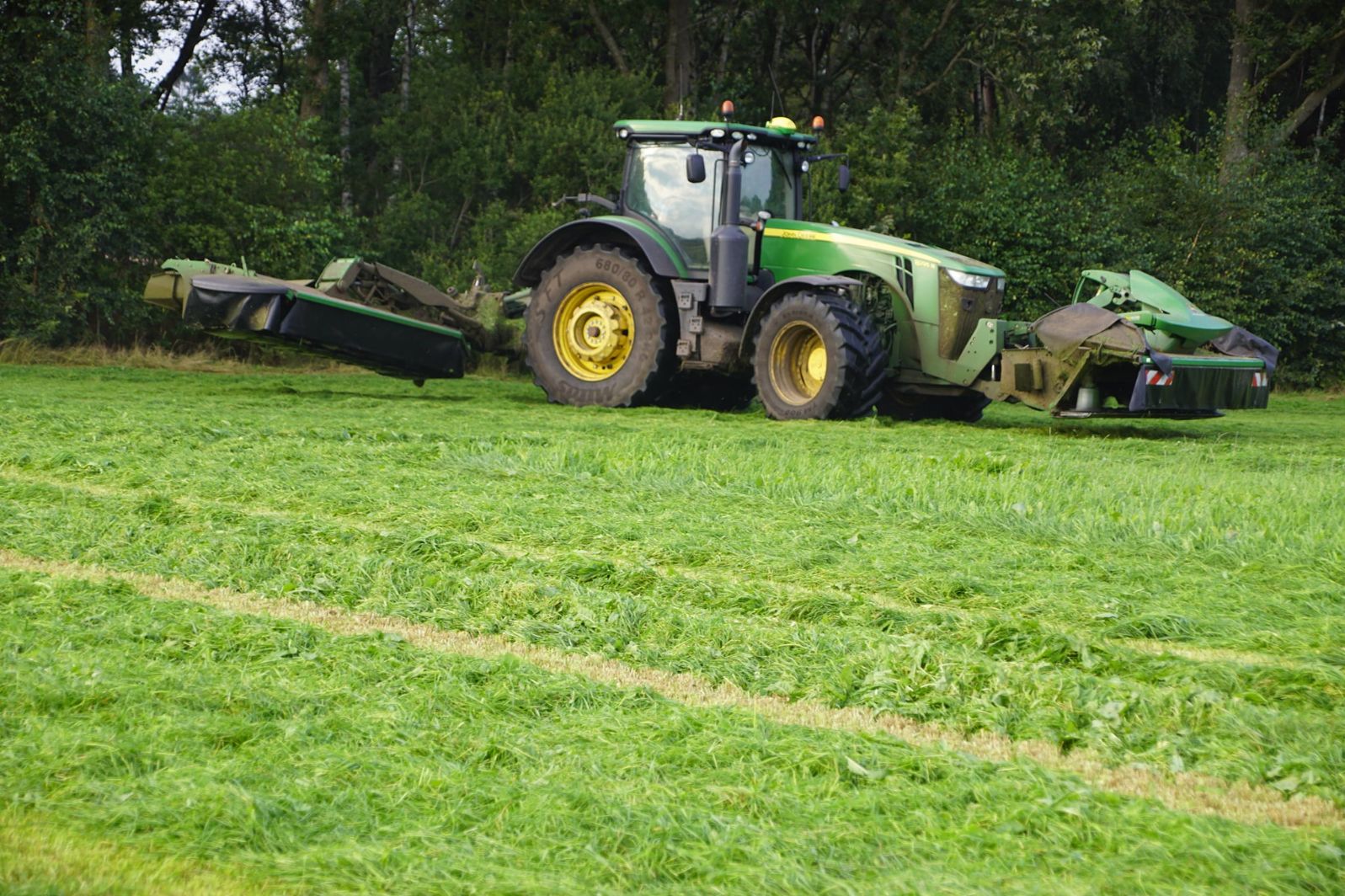 Gras maaien met een John Deere 8295 R