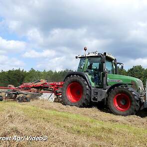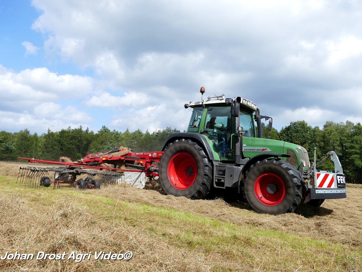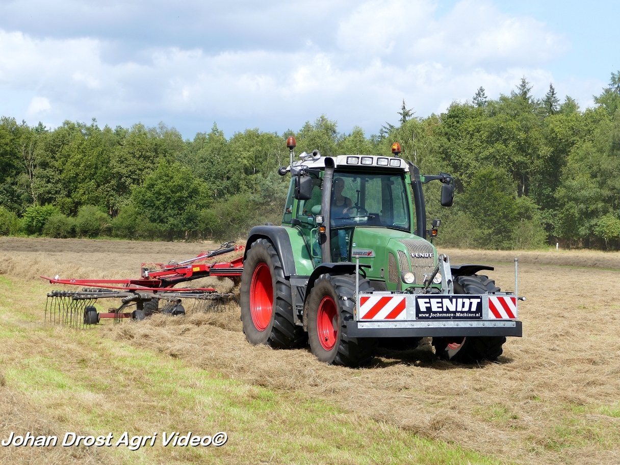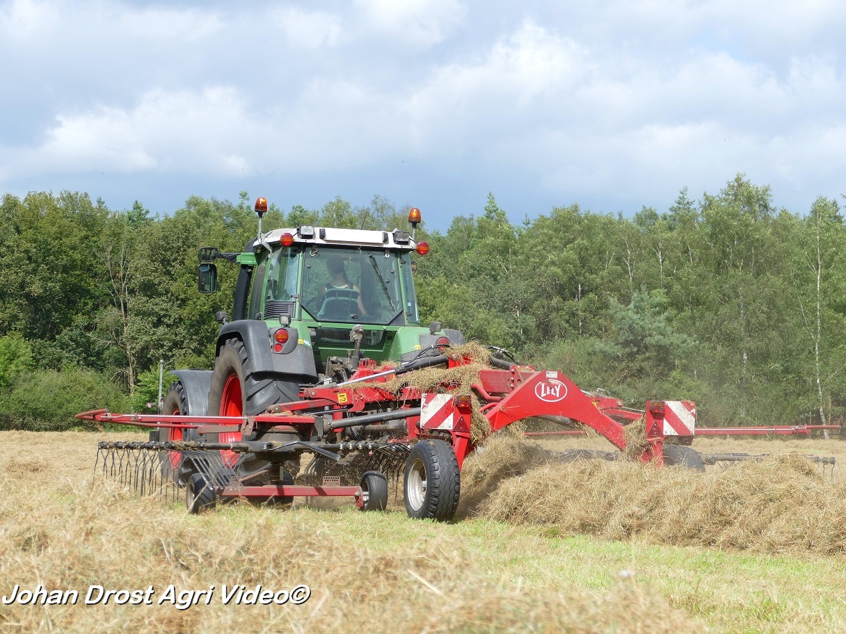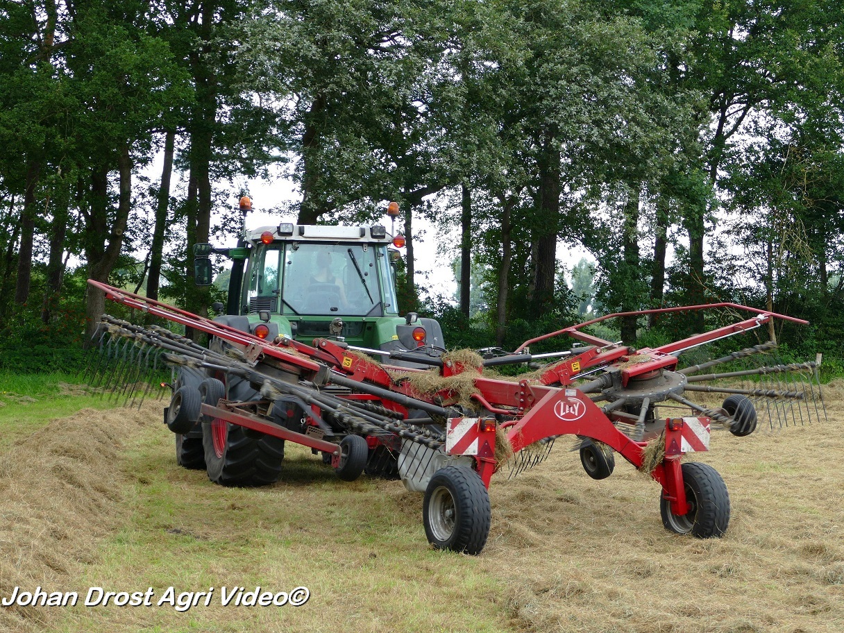 Melkveehouderij Overeem (Boerderij Meerhoeve) uit Staverden (GD) aan het gras harken met een Fendt Farmer 412 Vario en Lely Hibiscus 745 CD Vario.