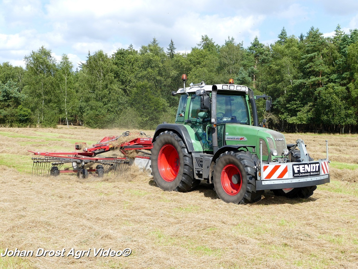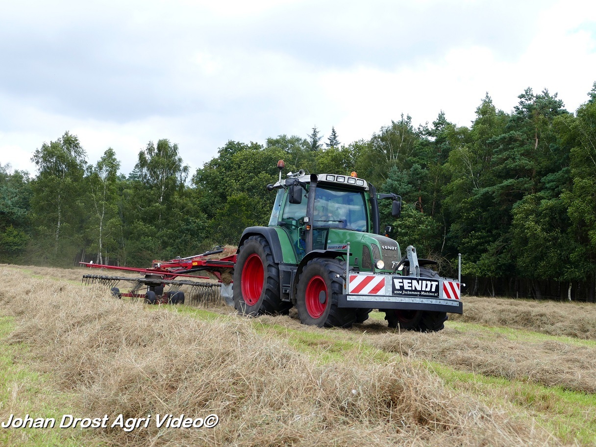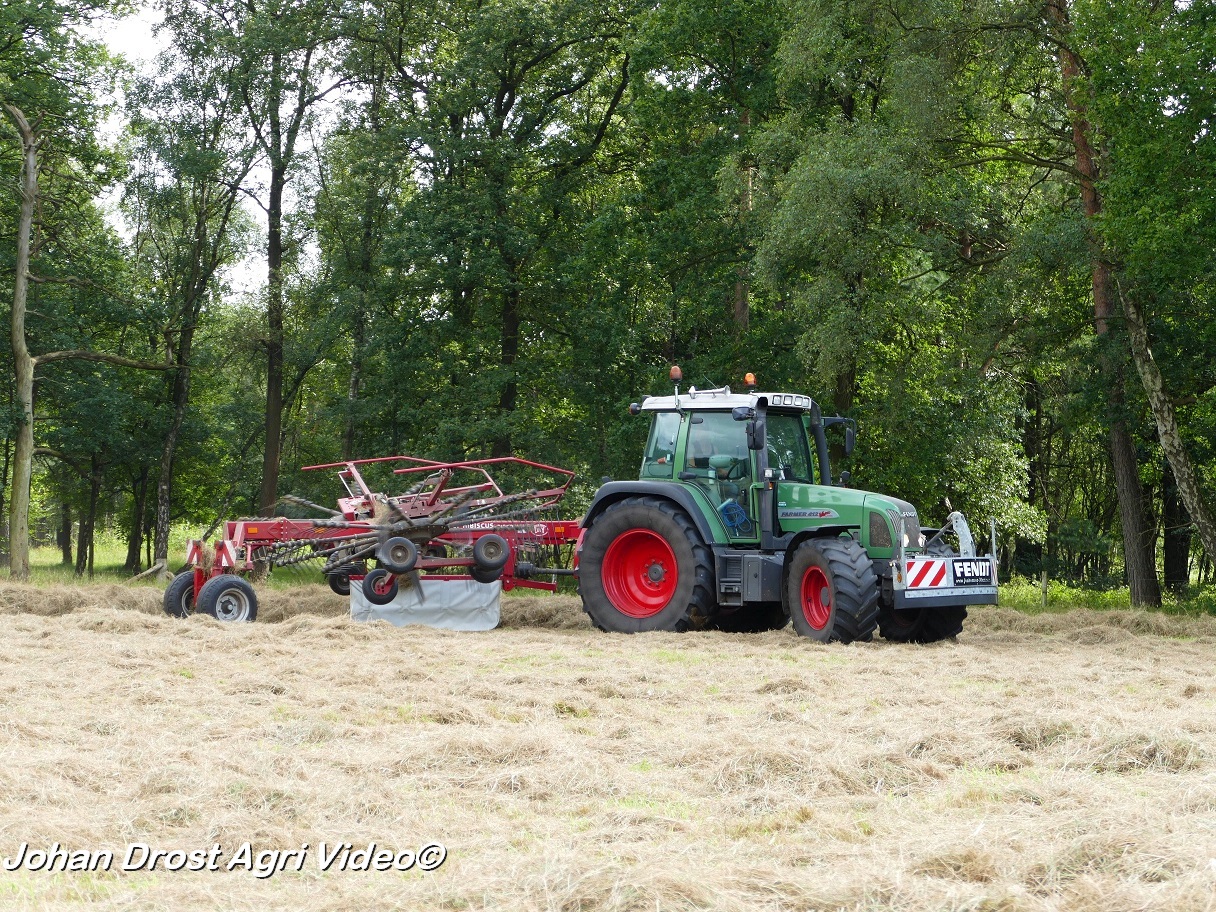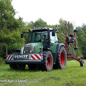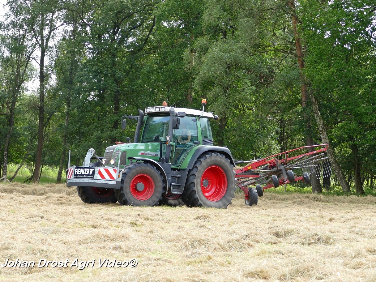 Melkveehouderij Overeem (Boerderij Meerhoeve) uit Staverden (GD) aan het gras harken met een Fendt Farmer 412 Vario en Lely Hibiscus 745 CD Vario.
