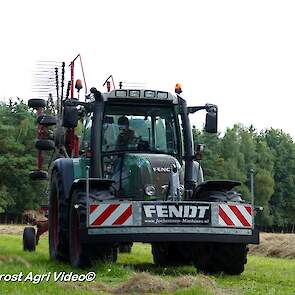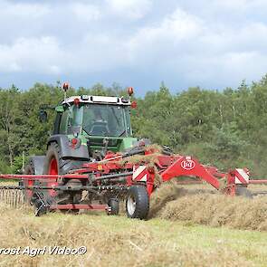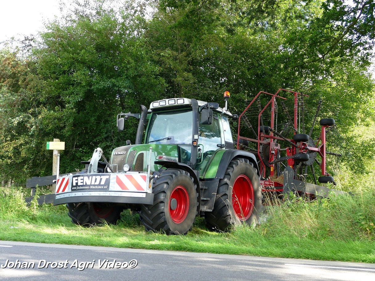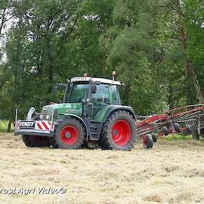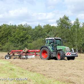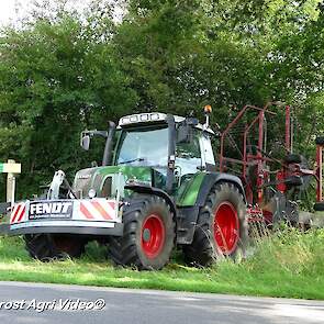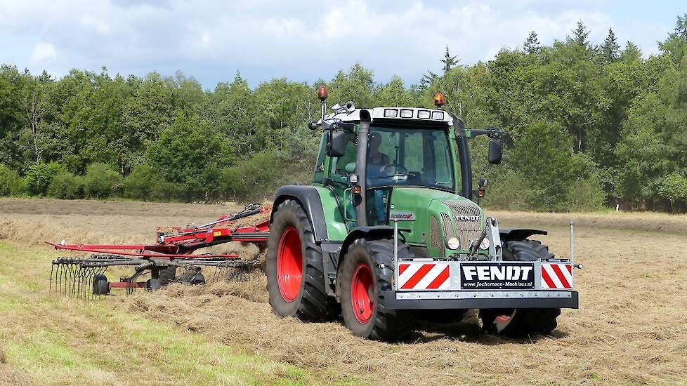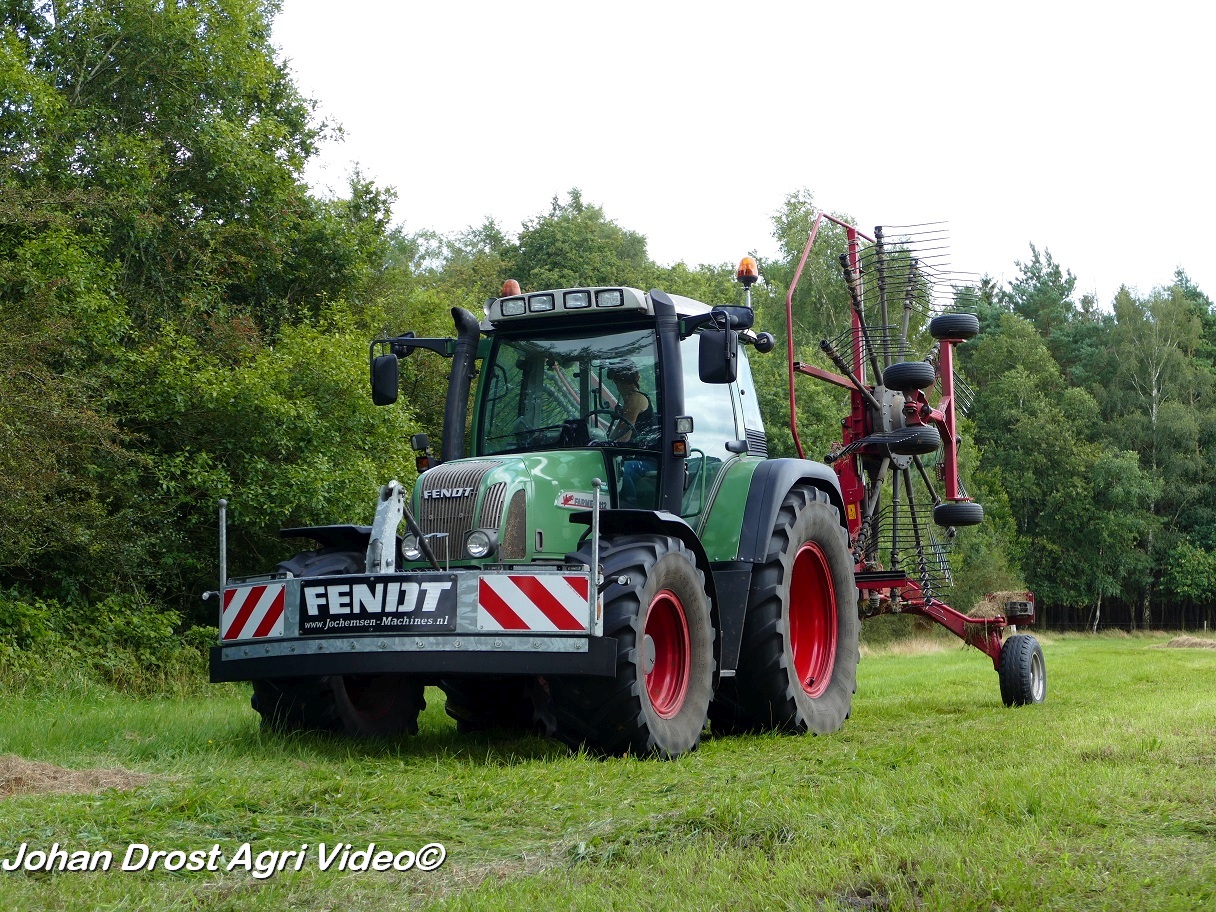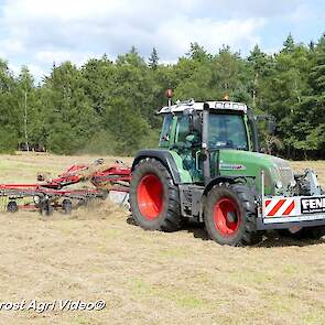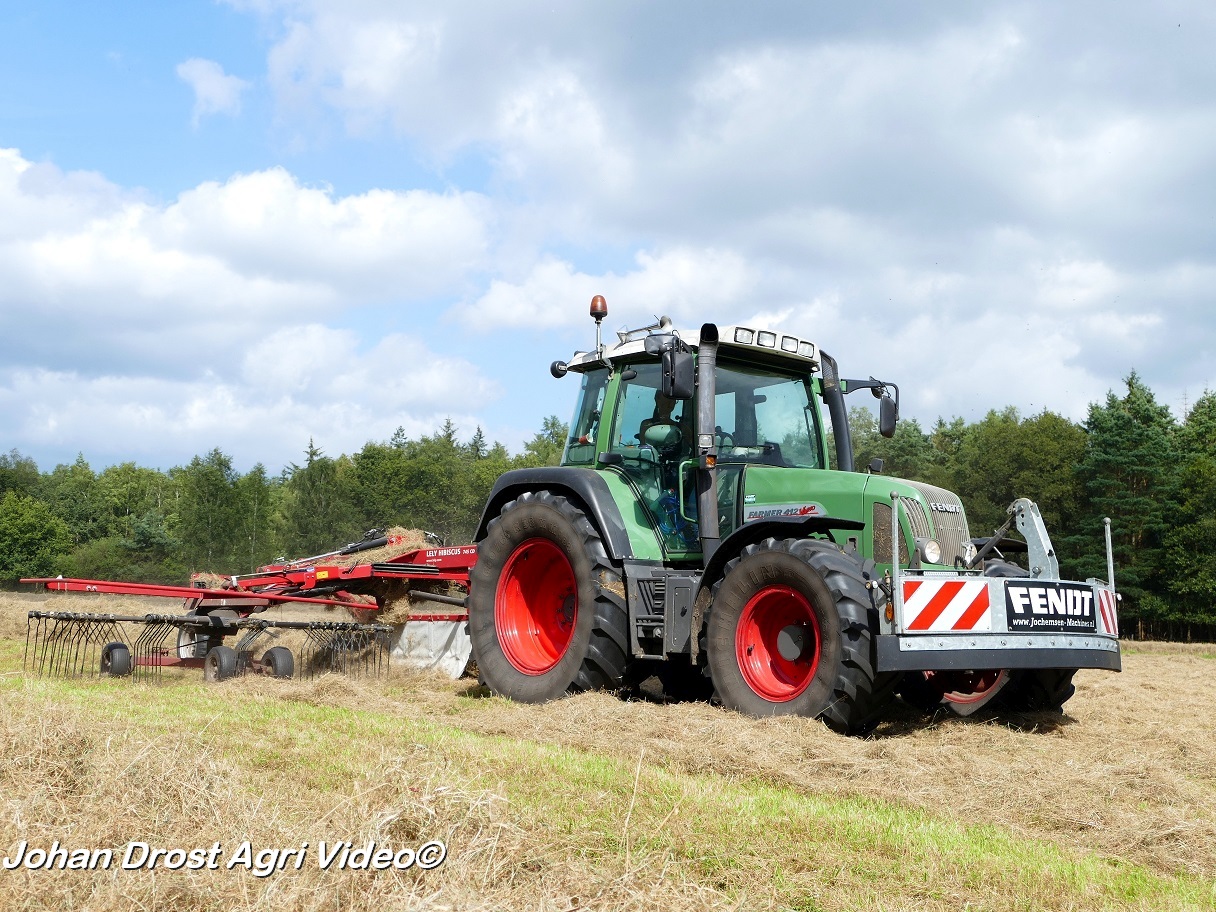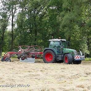 Melkveehouderij Overeem (Boerderij Meerhoeve) uit Staverden (GD) aan het gras harken met een Fendt Farmer 412 Vario en Lely Hibiscus 745 CD Vario.