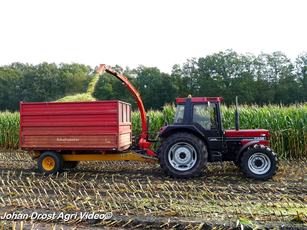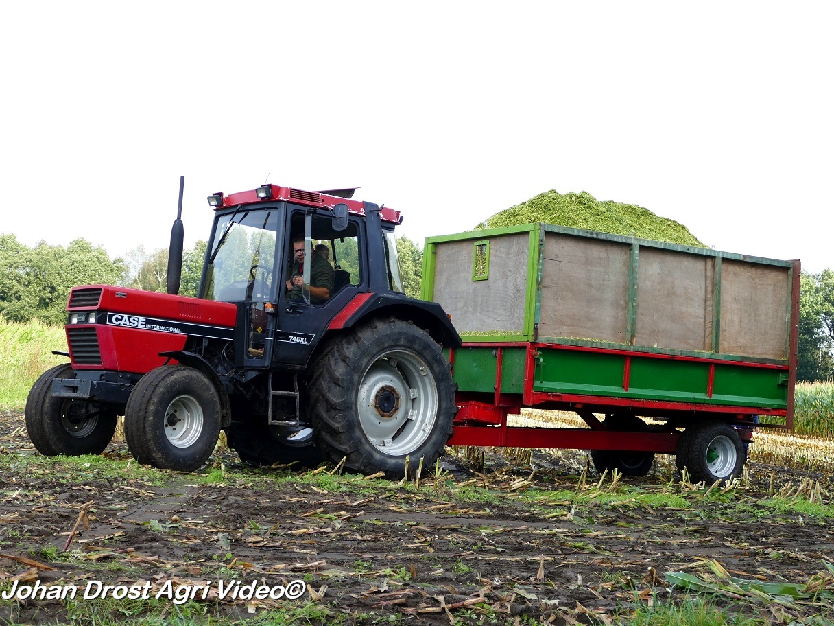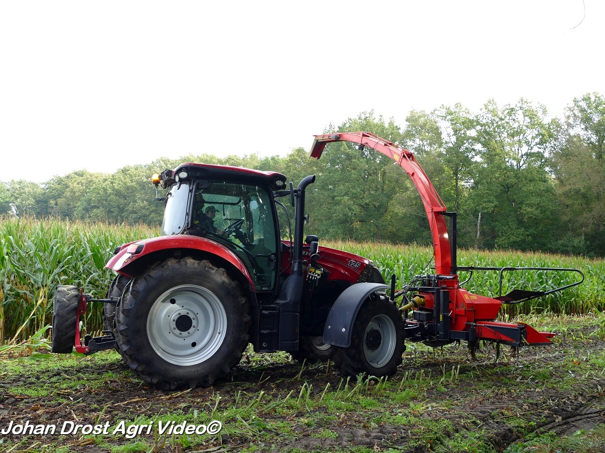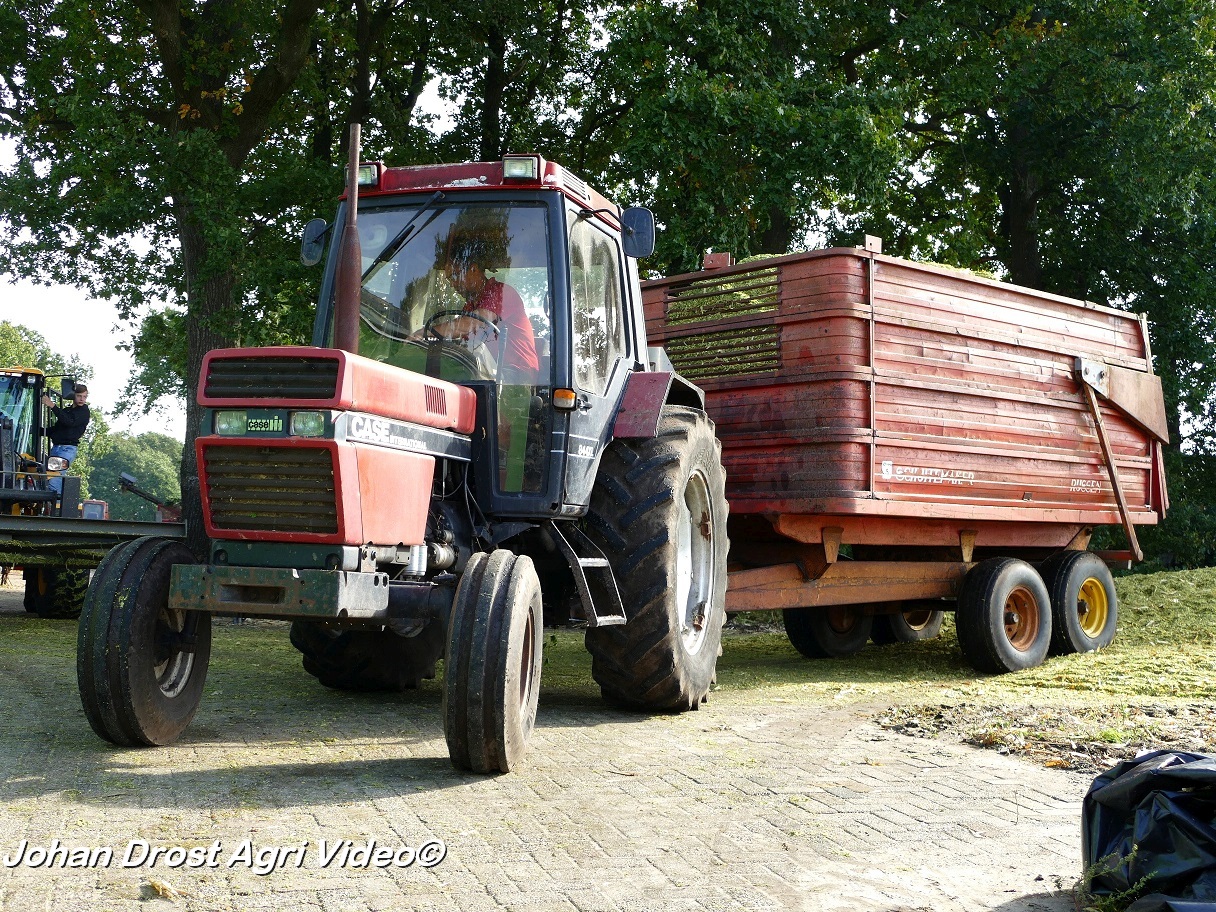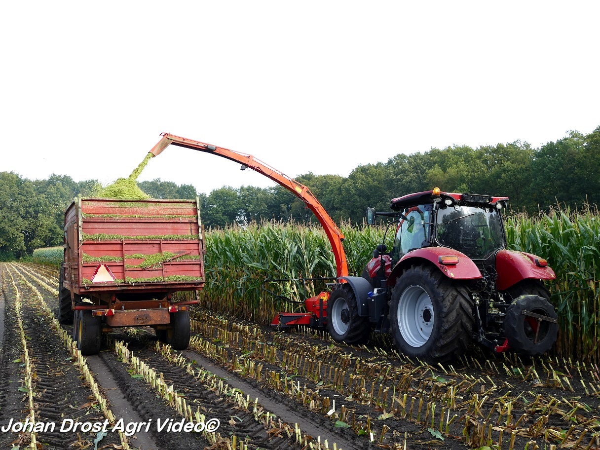 Melkveebedrijf Busweiler uit Nunspeet (GD) aan het maïs hakselen met een Case IH Maxxum 125 met een Kuhn MC 180 S Quattro, een Case International 844Xl, een Case International 845Xl met Schuitemaker-kieper en een Case International 745Xl. Op de kuil een Case International 1455XL en een Volvo L30G van A.V.S. Machineverhuur uit Doornspijk (GD).