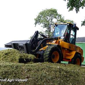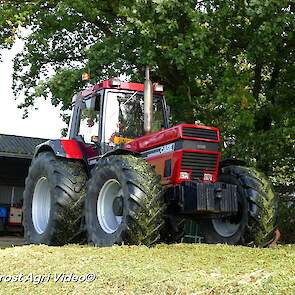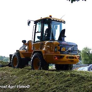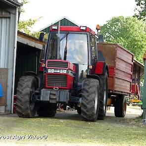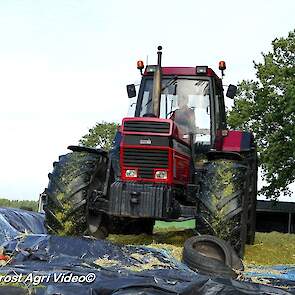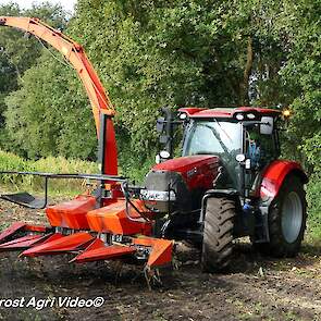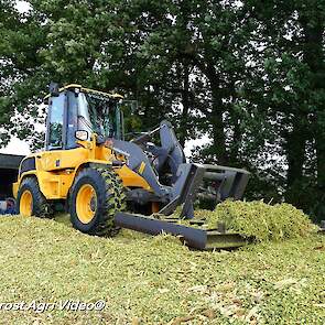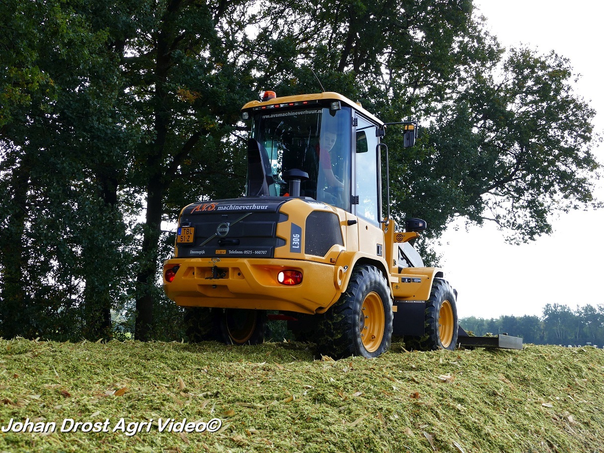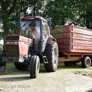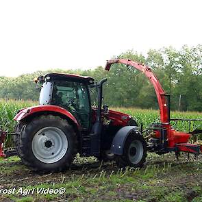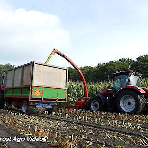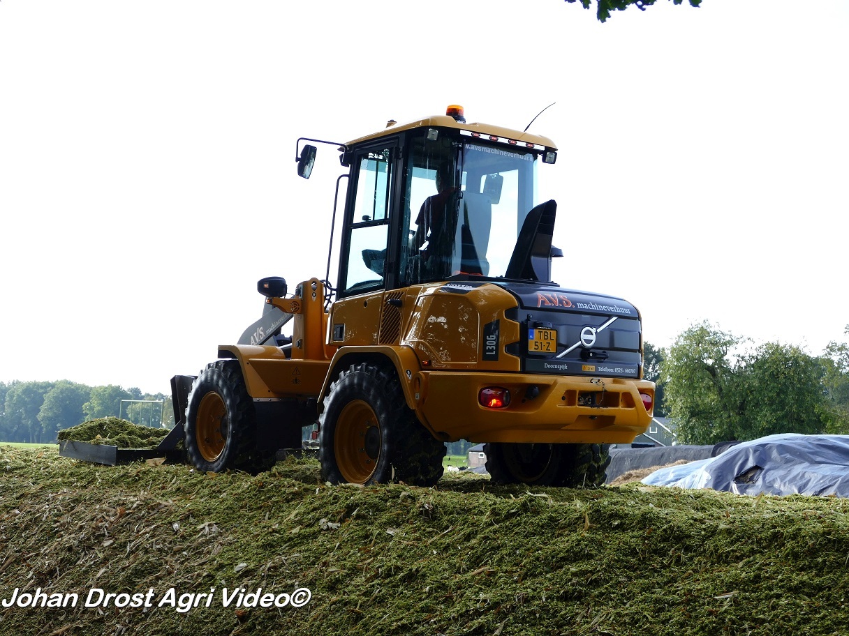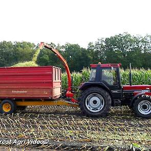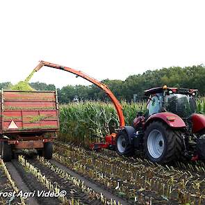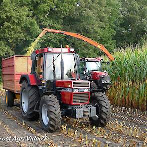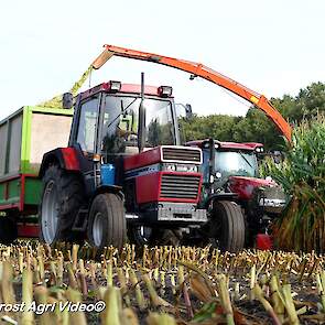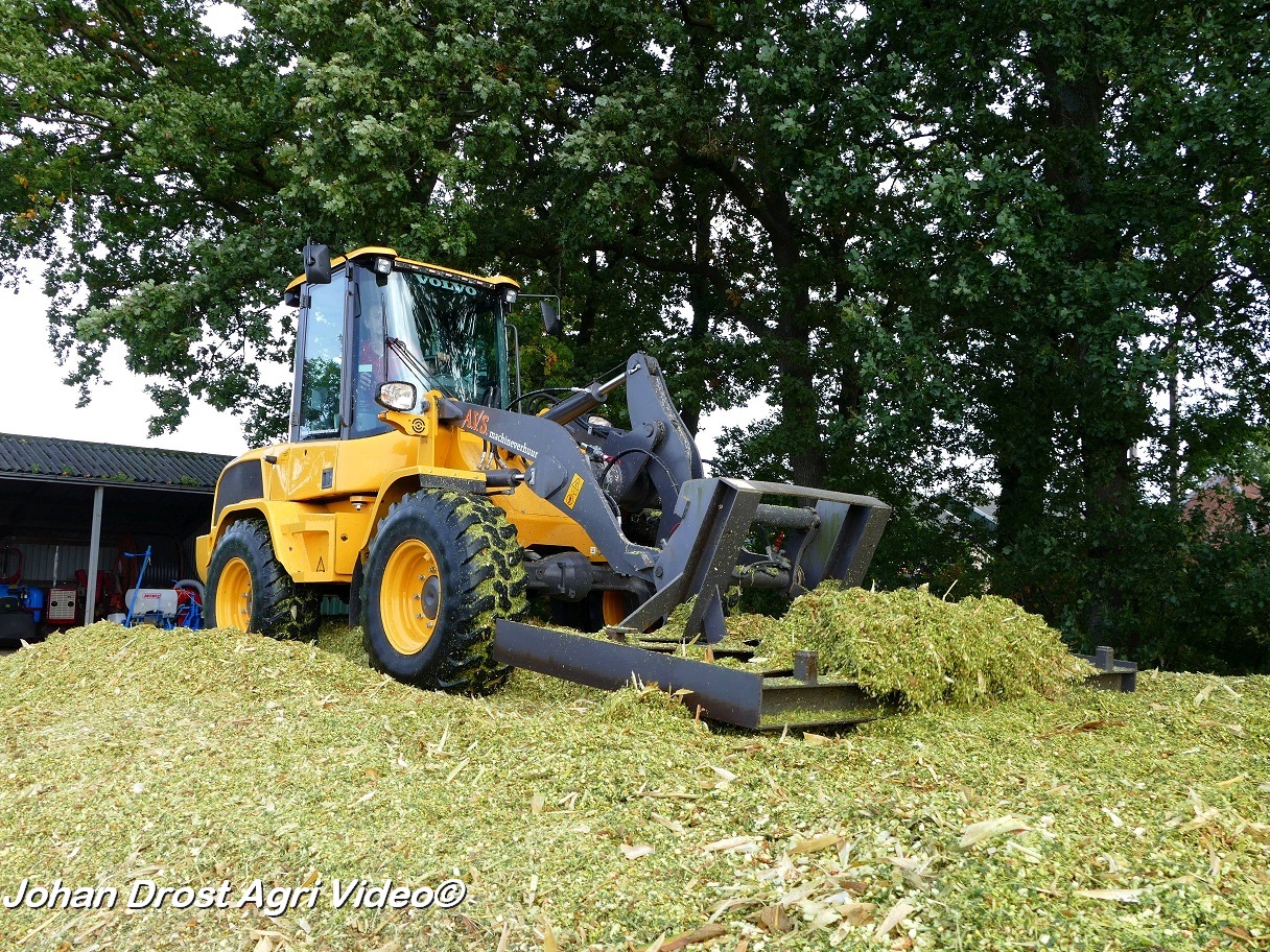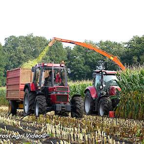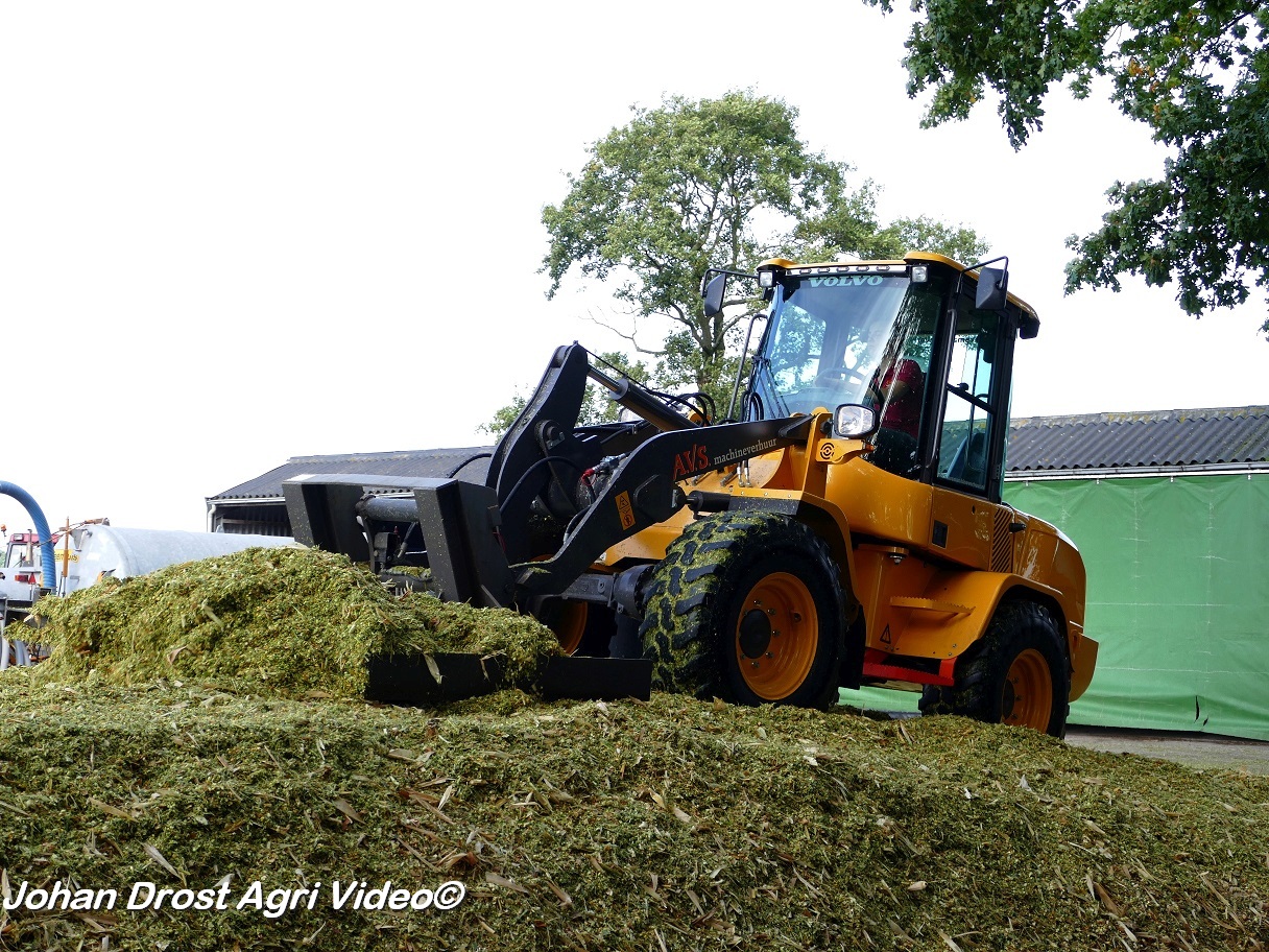 Melkveebedrijf Busweiler uit Nunspeet (GD) aan het maïs hakselen met een Case IH Maxxum 125 met een Kuhn MC 180 S Quattro, een Case International 844Xl, een Case International 845Xl met Schuitemaker-kieper en een Case International 745Xl. Op de kuil een Case International 1455XL en een Volvo L30G van A.V.S. Machineverhuur uit Doornspijk (GD).