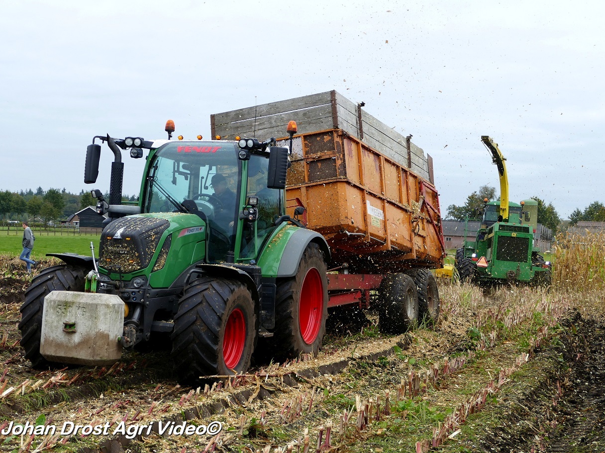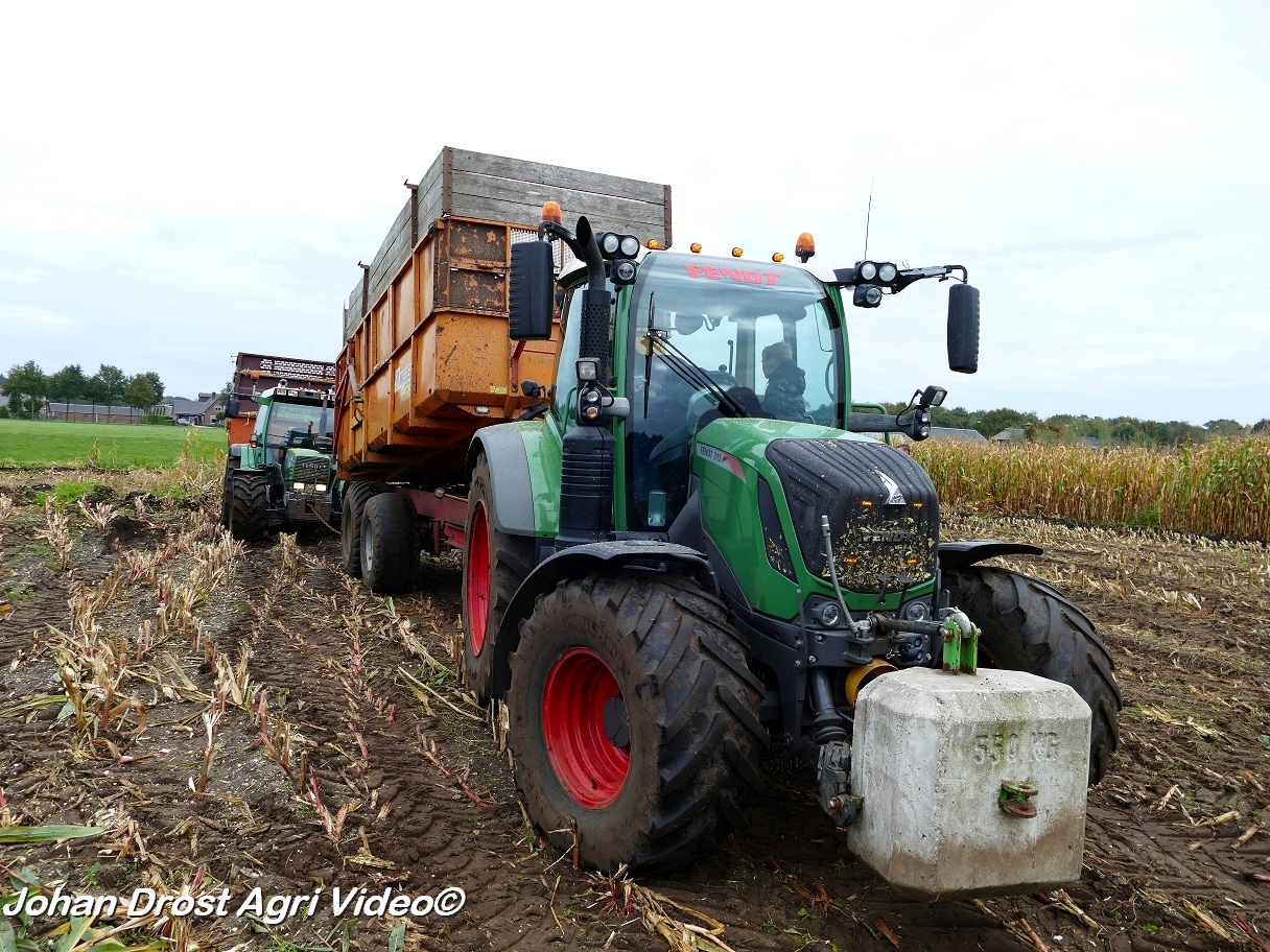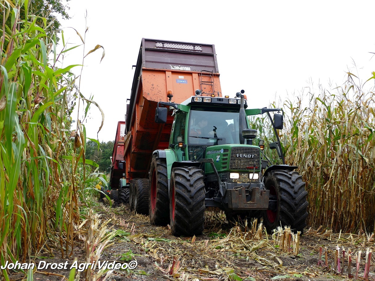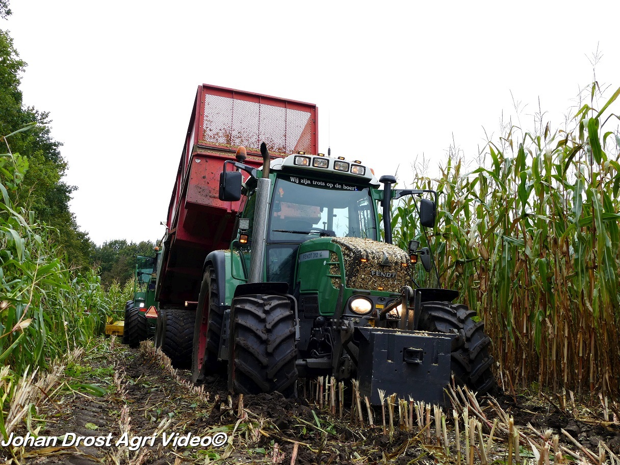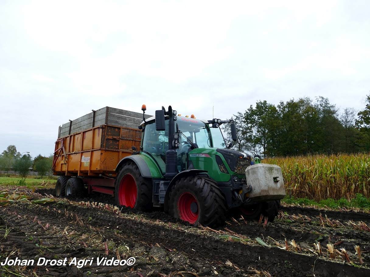 Fendt 313 Vario met Miedema in het maïstransport