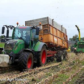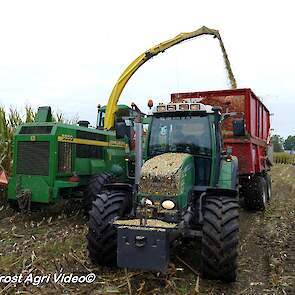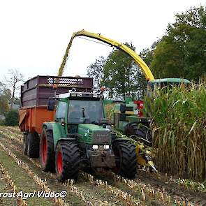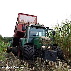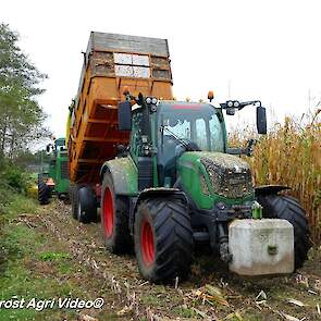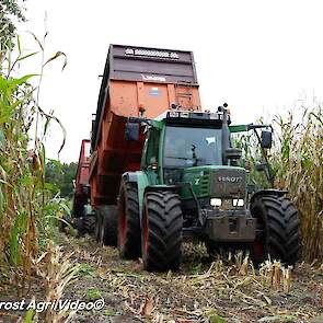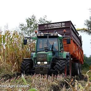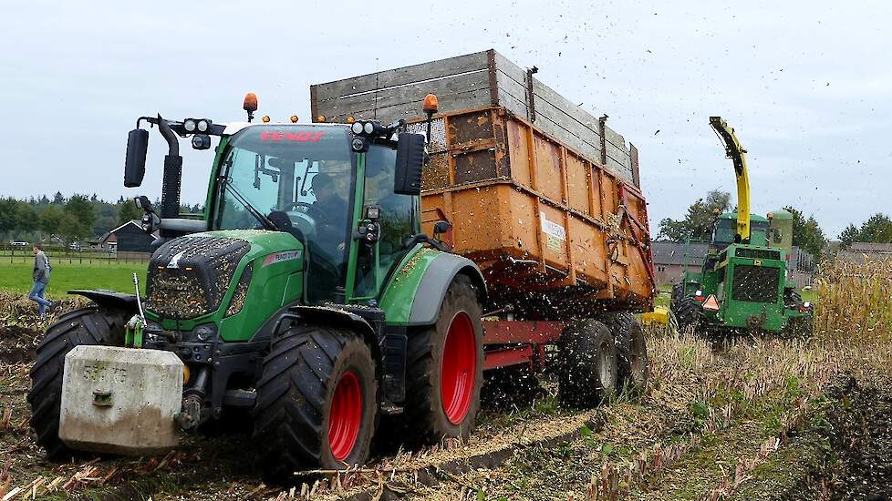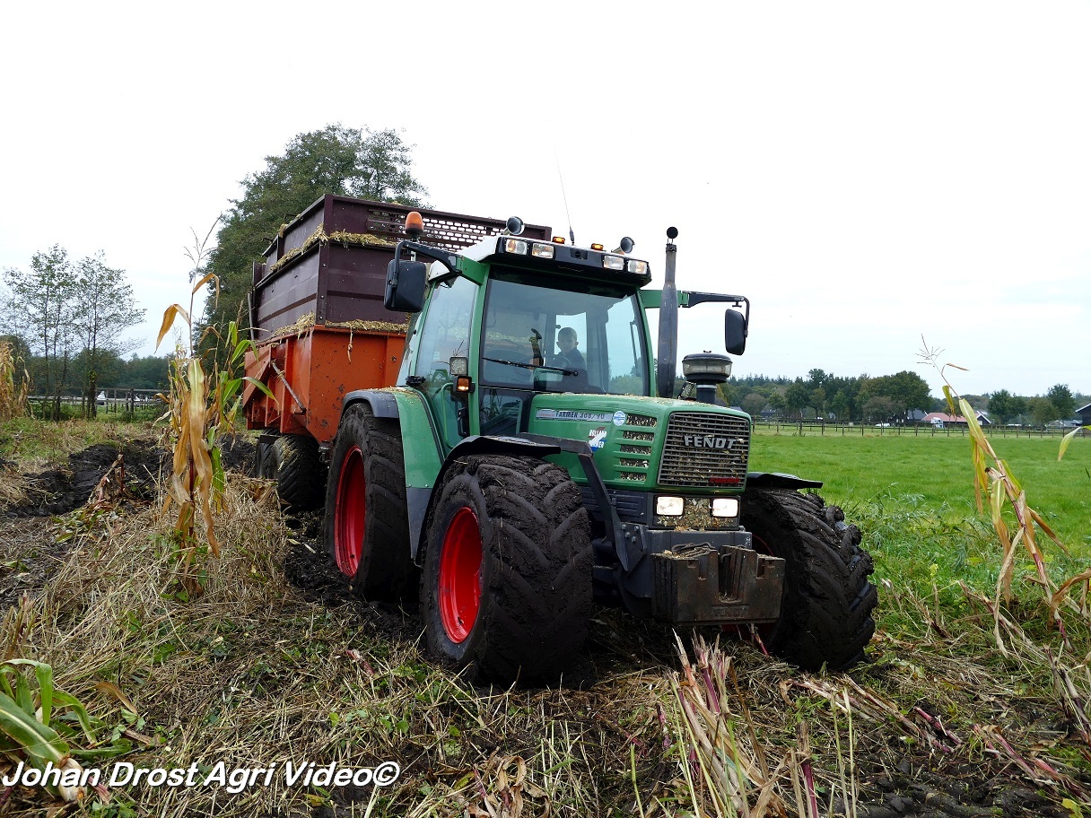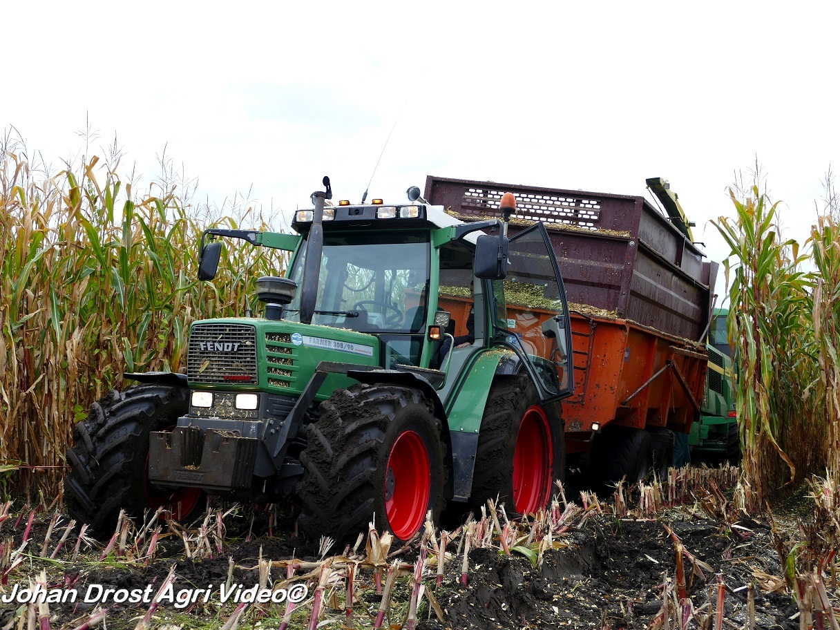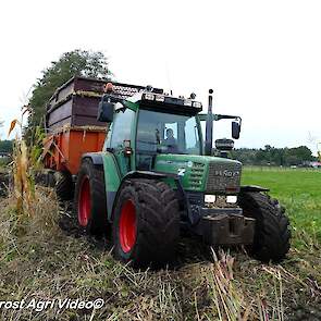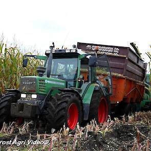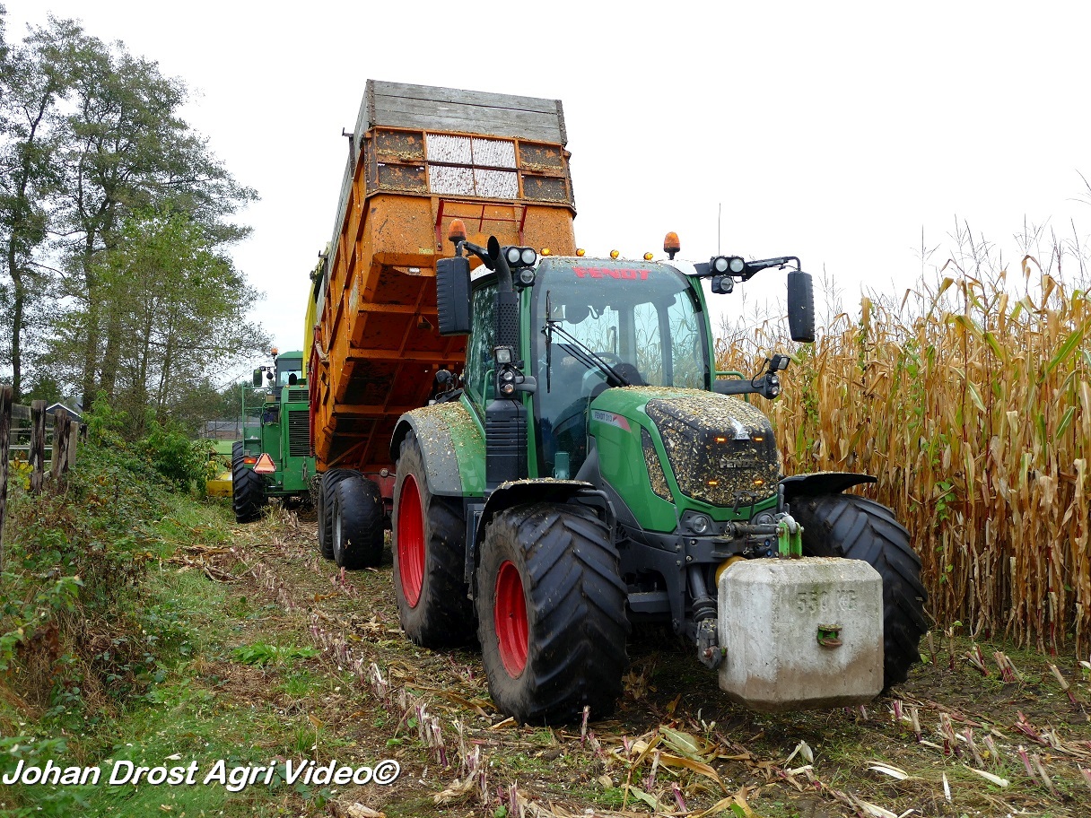 Fendt 313 Vario met Miedema in het maïstransport