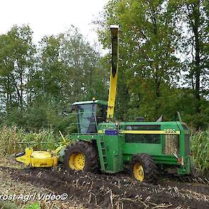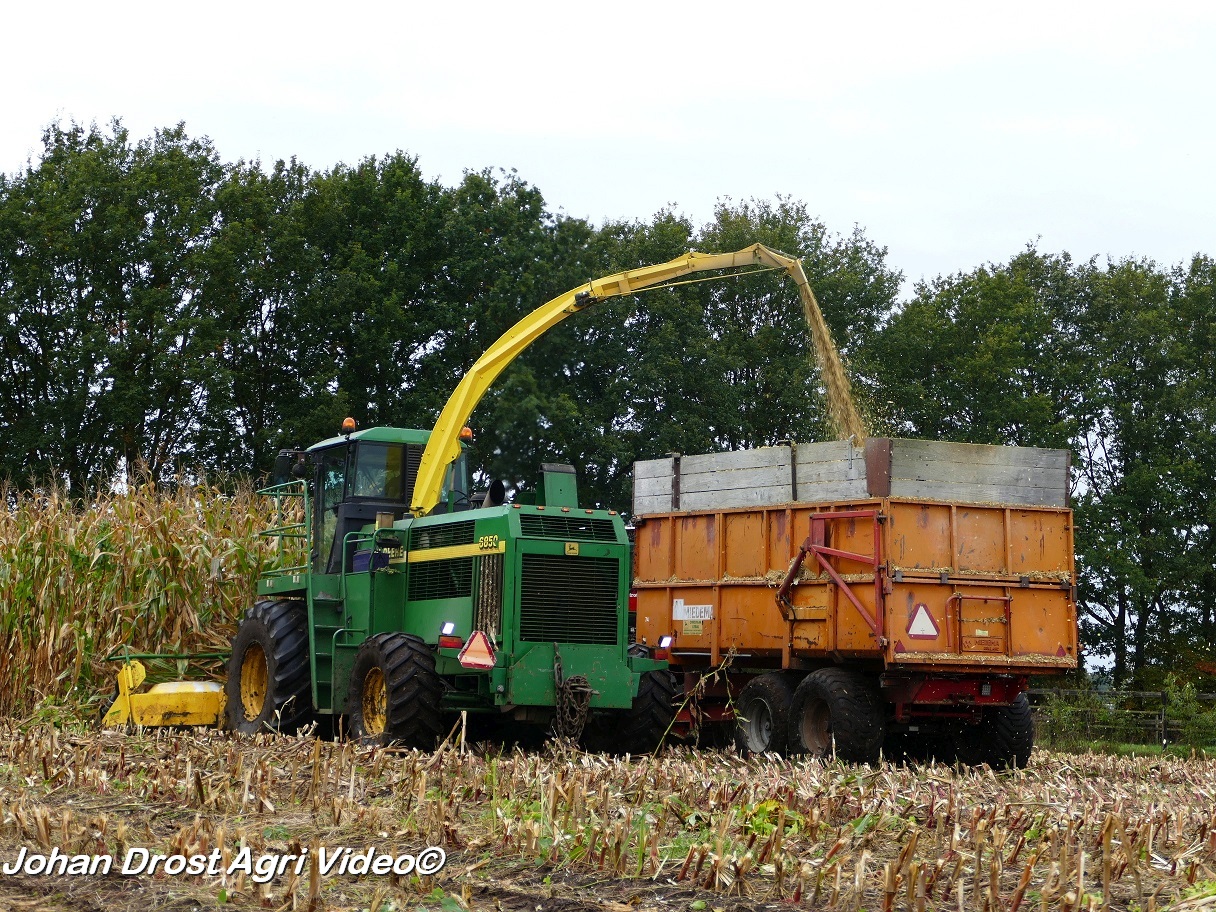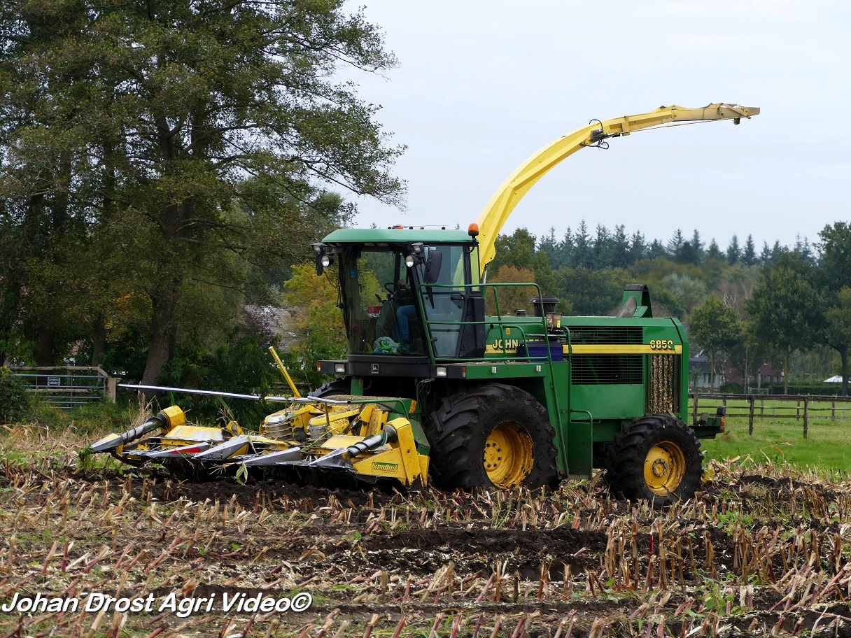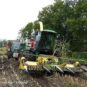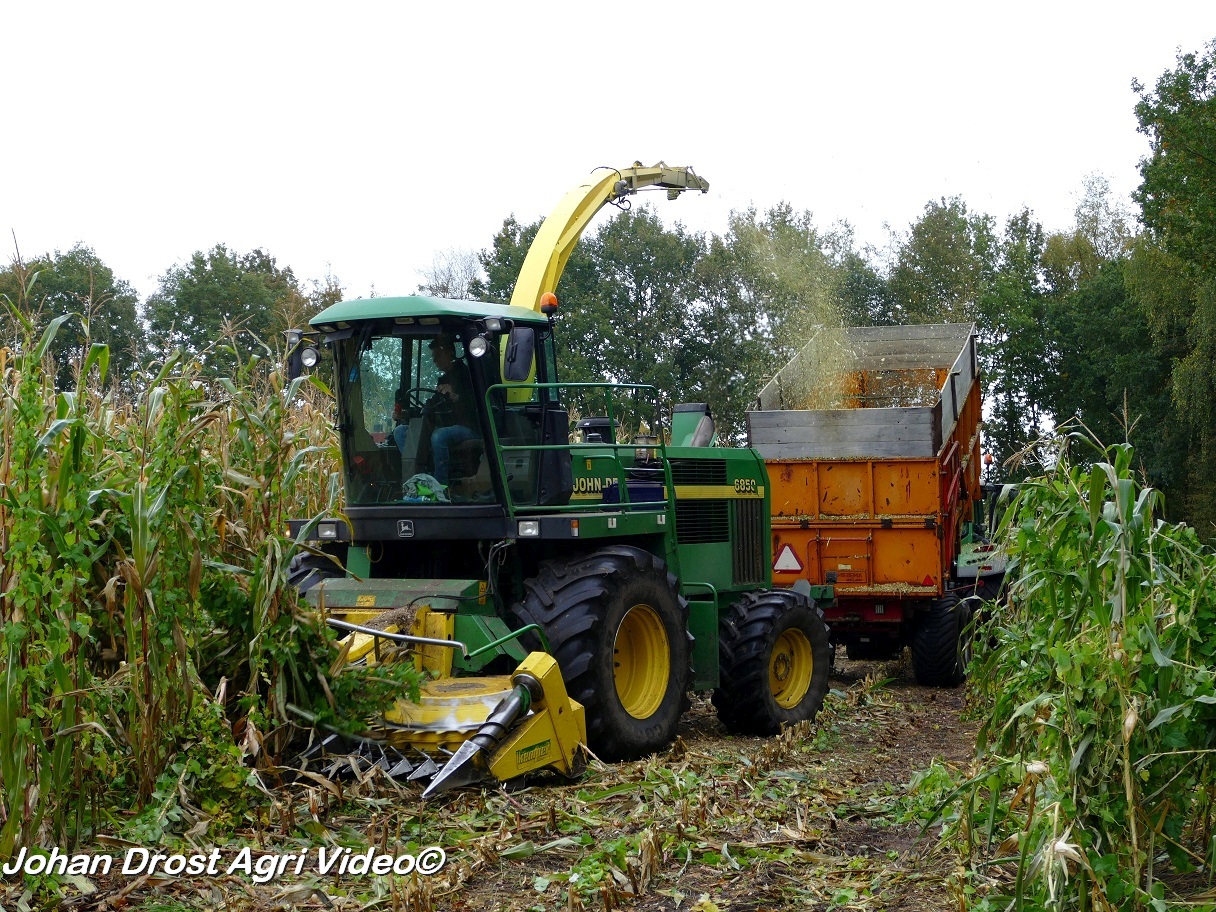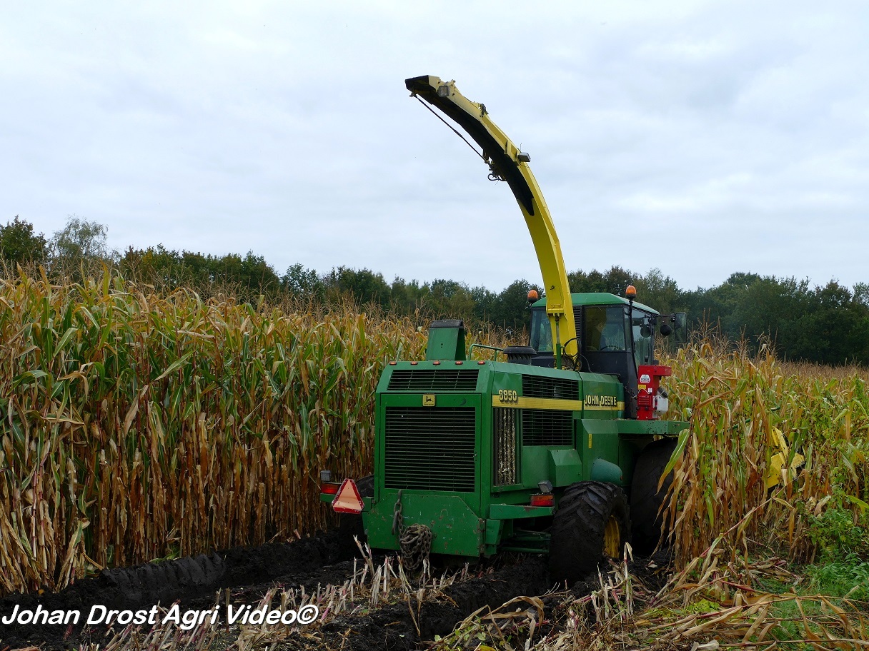 Bloemendal Dienstverlening uit Elspeet (GD) aan het modderen tijdens het maïs hakselen met een John Deere 6850, Fendt 313 Vario met Miedema, Fendt 312 Vario TMS met Beco en Fendt Farmer 308/90 met Vaia.