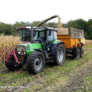 Melkveebedrijf Wajer uit Hulshorst (GD) aan het maïs hakselen met een Claas Jaguar 690 SL, een Deutz-Fahr AgroStar DX 6.11, een Deutz-Fahr DX 4.50 en een Deutz-Fahr DX 4.30.