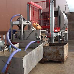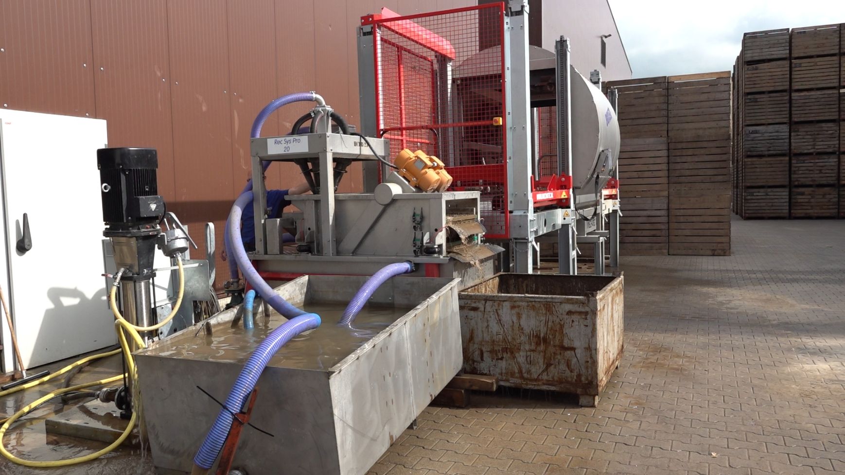 Deze proef voert Brun uit in overleg met de eigenaren van de kisten. In combinatie met het RecSysPro vuil water reinigingssysteem spaart Brun zo maar 125-150 m3 water op een dag. Brun: "Het aan- en afvoeren van de kisten is hier het meeste werk, het systeem is verder helemaal automatisch, lekker makkelijk."