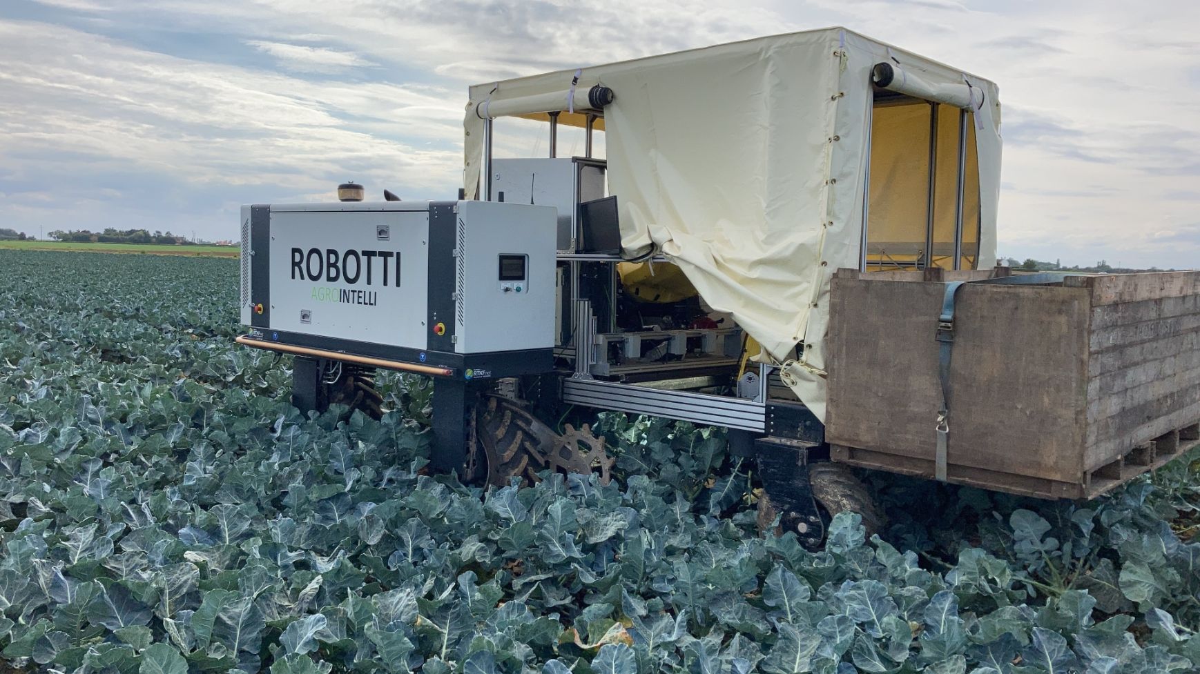 Robotfabrikant AgroIntelli heeft de RoboVeg oogstmachine voor broccoli ontwikkeld. Deze werkt met behulp van 2D camera’s en 3D sensoren. Een over zes assen bestuurbare arm oogst de broccoli. Hij kan ongeveer 2.400 stammen per uur oogsten, iets waar bij de handmatige oogst toch al gauw acht mensen voor nodig zijn.