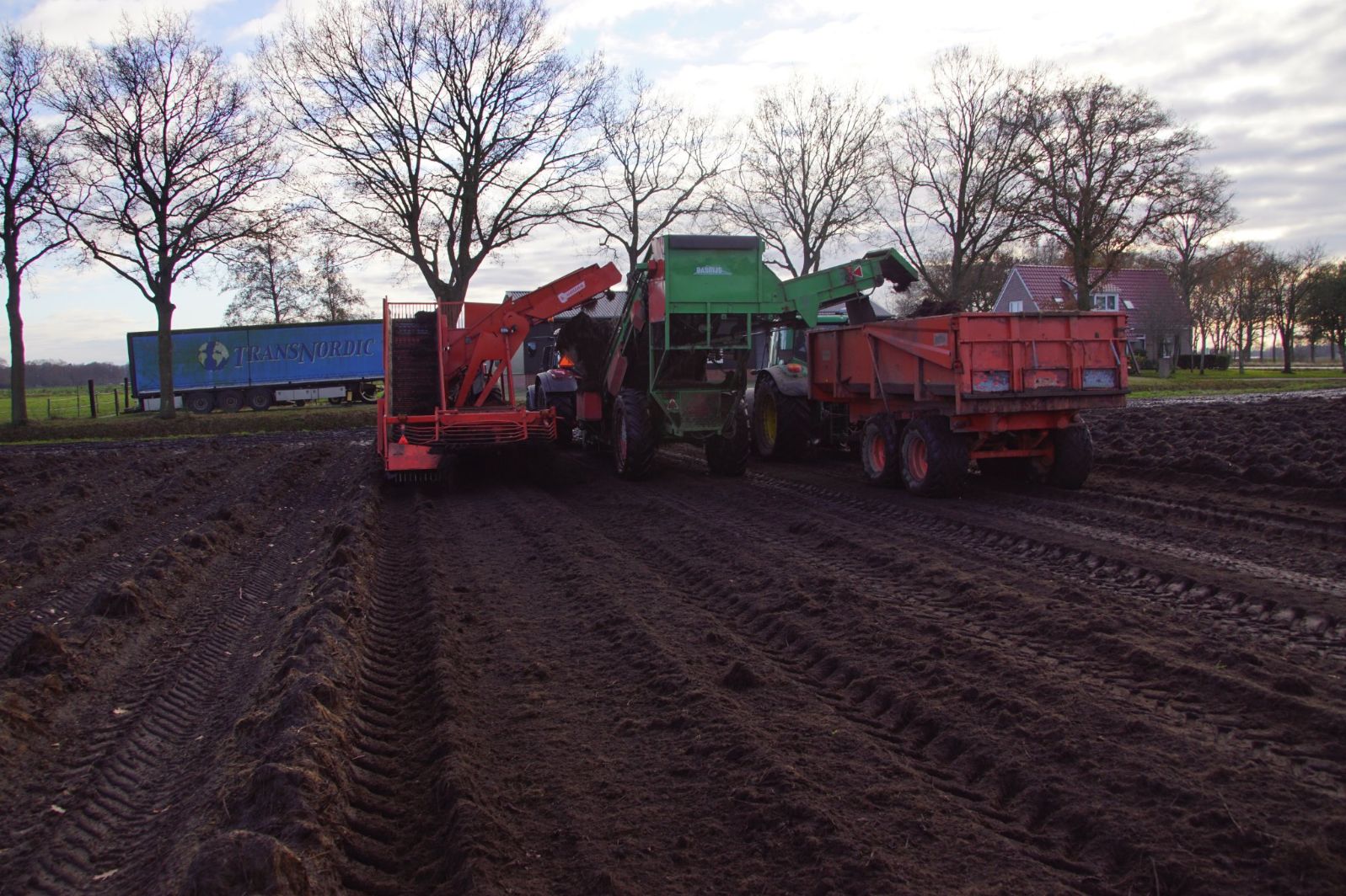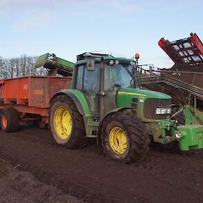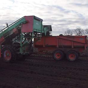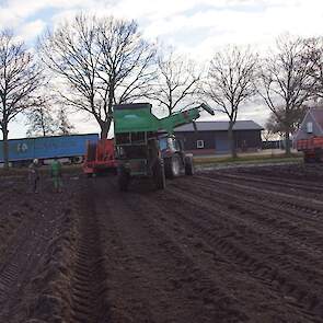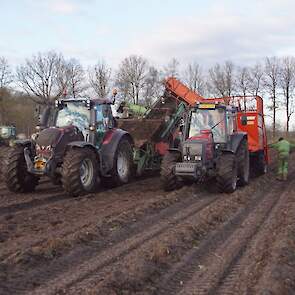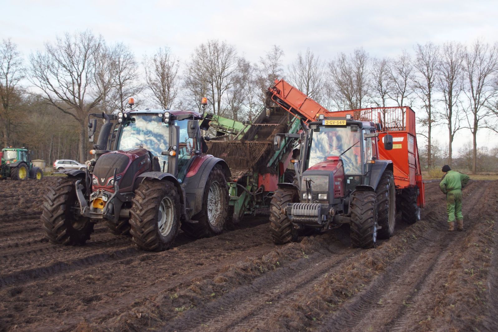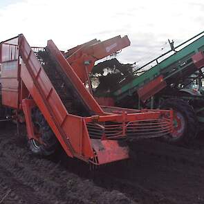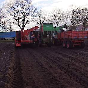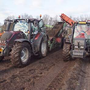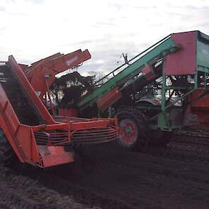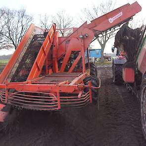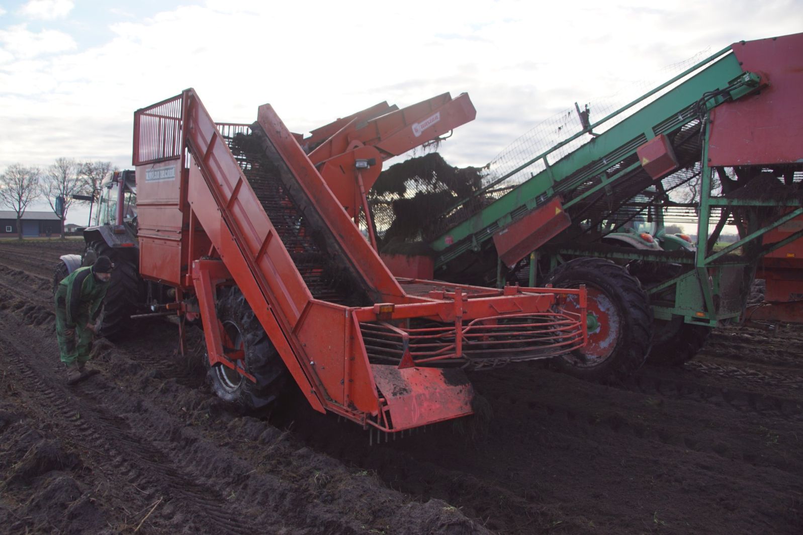 Echinacea-planten opladen door middel van een opraper, die ze daarna nog een keer extra reinigt in een lader waarna ze op de kipper gaan.