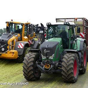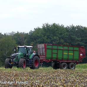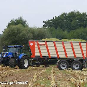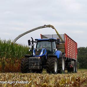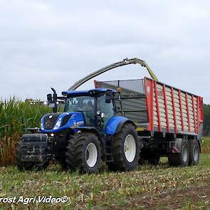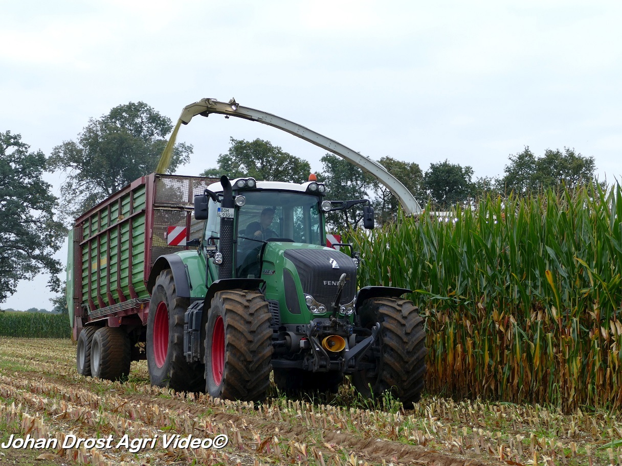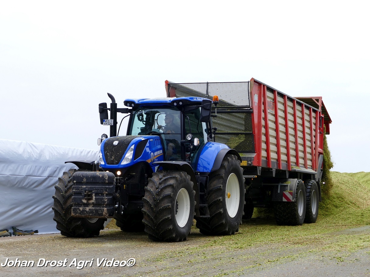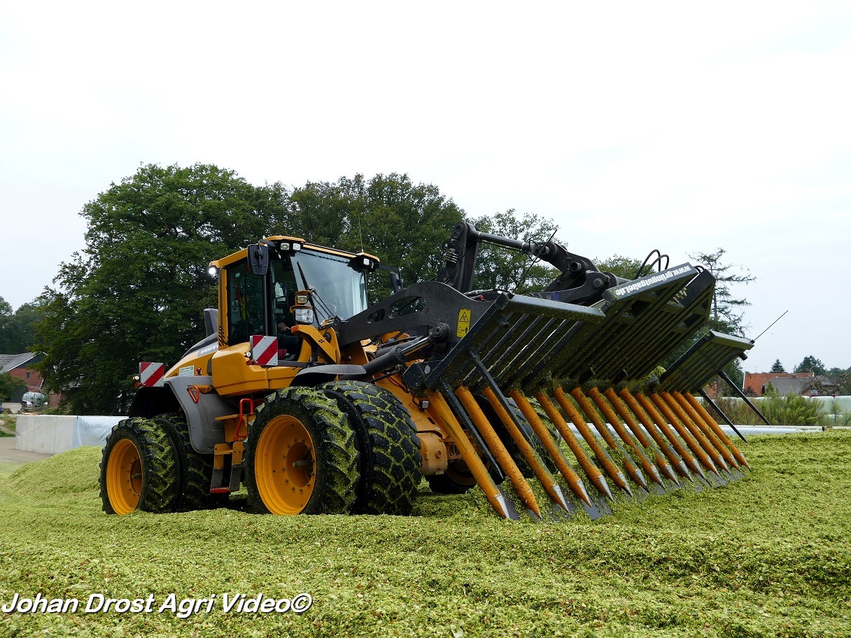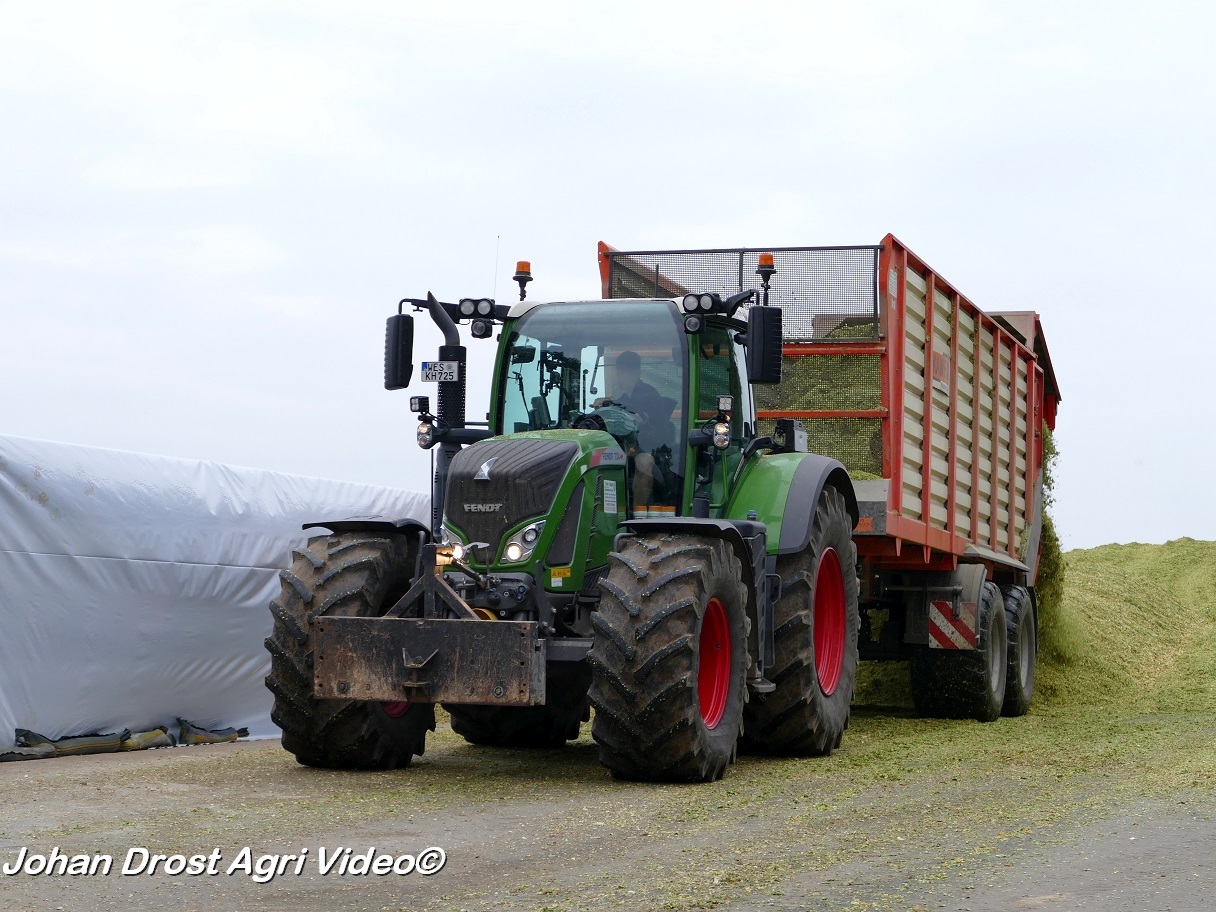 LU Klein Hitpaß uit Hamminkeln (DE) aan het maïs hakselen met een Claas Jaguar 960 (10-rijer), een New Holland T7.230 met Kaweco Radium 250, een Fendt 724 Vario met Kaweco Radium 50 en een Fendt 930 Vario met Strautmann Mega Trailer II DO. Op de kuil een Volvo L90H.