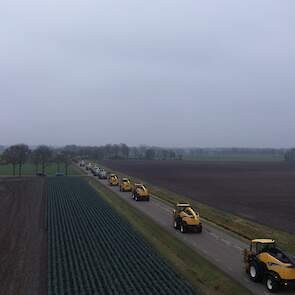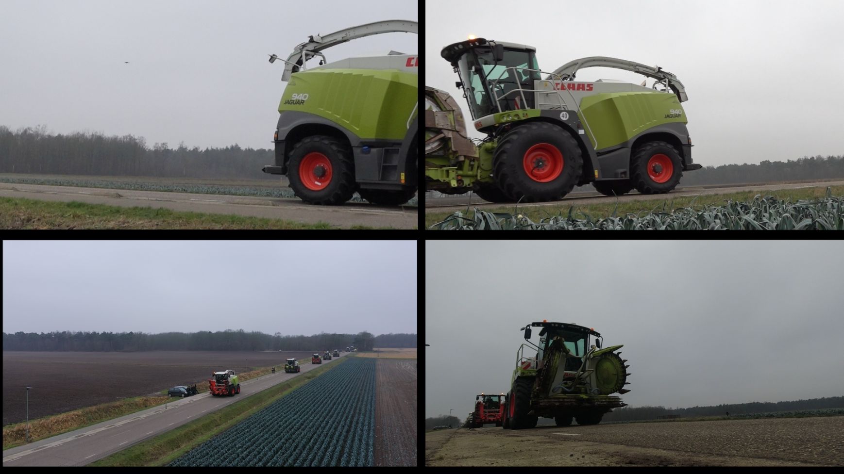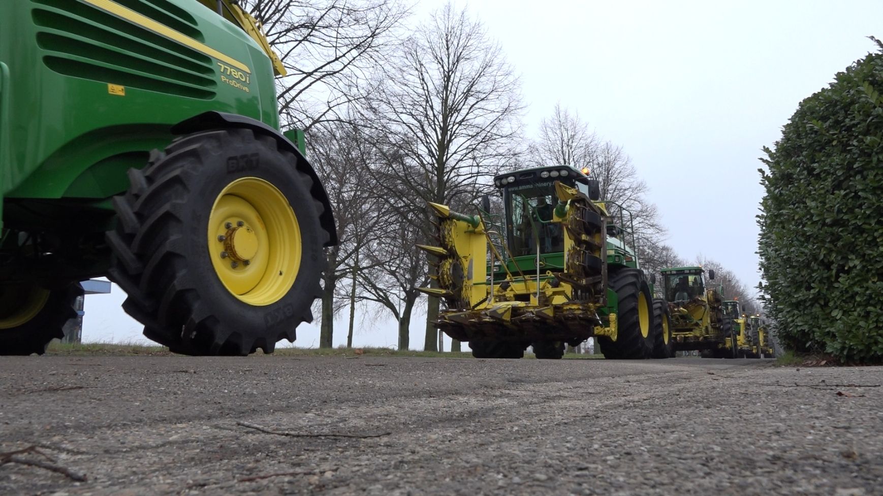 Video: met 47 maïshakselaars tegelijk de openbare weg op